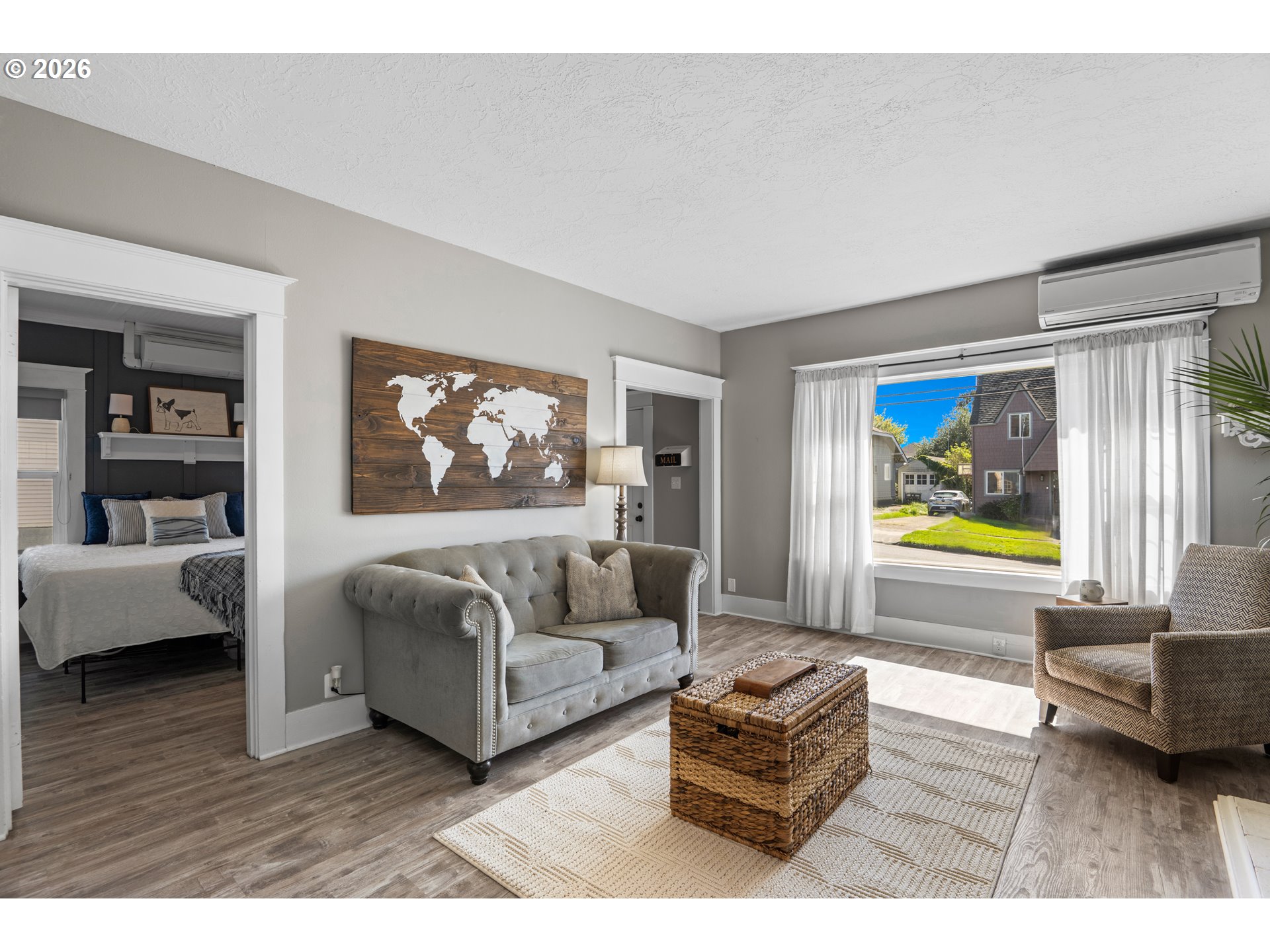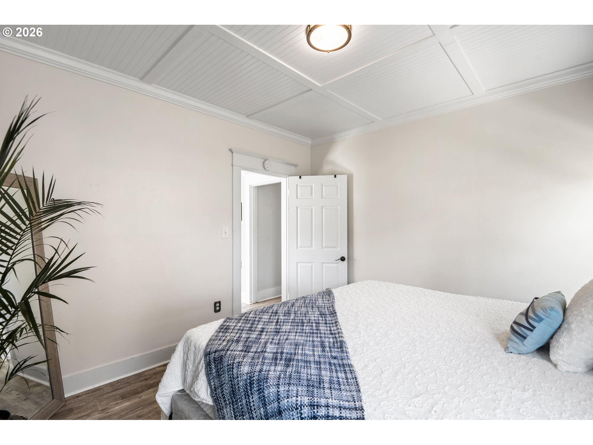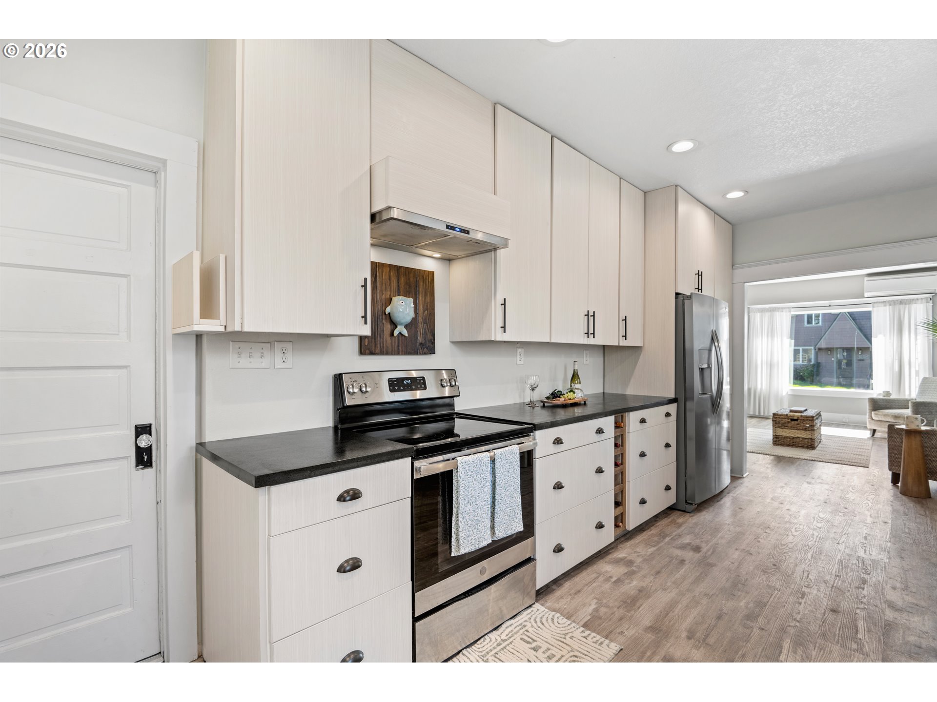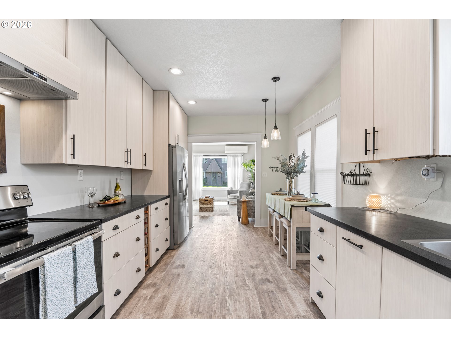 Beautifully updated 2-bedroom cottage offers a perfect blend of comfort and modern style. The home features a fully remodeled kitchen with new cabinetry and Corian counters. New waterproof luxury vinyl plank flooring throughout for durability and easy maintenance. The primary bedroom has been tastefully enhanced with crown molding and classic beadboard detailing, adding architectural character and a polished, upscale feel. The main bathroom includes a relaxing soaking tub, perfect for unwinding after a long day. The washer and dryer were relocated to the main floor for added ease. Outdoors, a lush bamboo-lined backyard creates an exceptional sense of privacy, transforming the space into a tranquil garden retreat, perfect for quiet mornings or intimate gatherings.