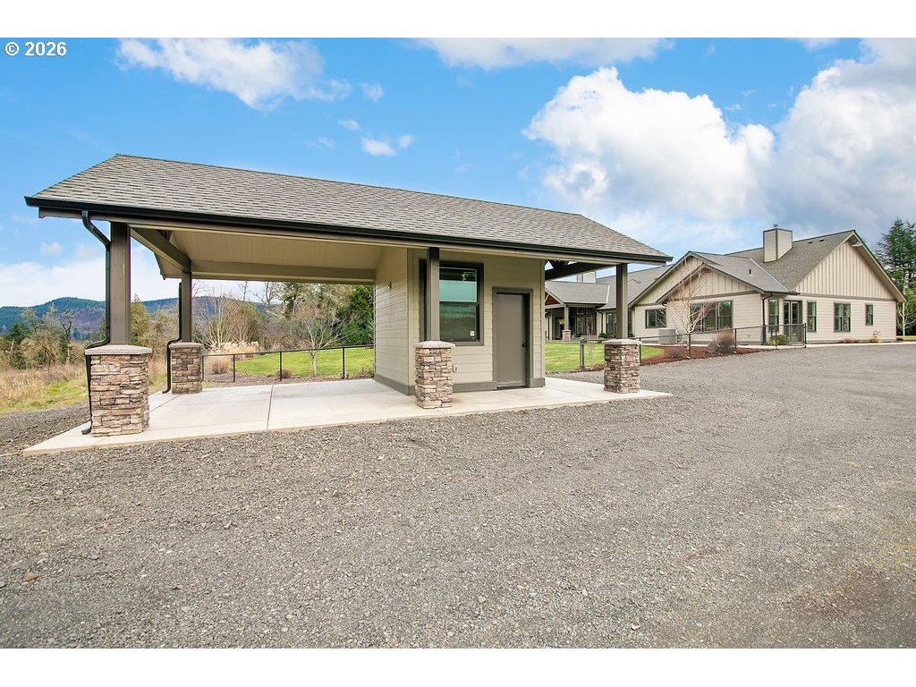 NEWER CUSTOM BUILT Home & INCREDIBLE 8000+ Sqft Building -- Great for Business Opportunity or Multi-Generational Living or ENTERTAINING Year Round for Many Events -- 10 Acres (Can be Subdivided) -- PRIMARY RESIDENCE is 3726 Sqft -- 3 Bedrooms -- 4 Bathrooms -- Vaulted Living Room w/ Fireplace -- Kitchen w/ Stainless Appliances, Quartz Countertops, Island, & 2nd Eating Area -- LARGE Formal Dining Room -- Butler Pantry Plumbed & Ready to Accommodate SubZero Side by Side Refrigerator -- Family Room w/ Fireplace -- Office / Den -- BEAUTIFUL Vaulted Primary Suite w/ Full Bathroom & Large Walk-in Closet -- 2nd & 3rd Bedrooms Each w/ Private Bathroom -- Laundry Room -- Heat Pump & AC -- High Ceilings Throughout -- Hardi Plank Siding -- Attached Double Oversized Garage -- Gated Entry -- Fenced Yard -- Landscaped -- Spacious Covered Patio -- Sprinkler System -- OUTBUILDING has a Fully Covered Patio Entrance in addition to 2 Separate Living Quarters (ADU's) PLUS Ductless Heat Pumps Throughout PLUS Space for Large Gatherings / Weddings / Retreats / Reunions or CAR ENTHUSIAST Dream PLUS Office Space PLUS Storage Space -- Past Uses of the Building have been Weddings, Company Parties, and Formal Gatherings -- This Property Has So Much to Offer and the Possibilities are Many for Creative Uses -- Plenty of Room for Additional Features -- Tons of Parking -- Less than 1 Hour to Vancouver / Portland Area -- Short Drive to Year Round Recreation in the Beautiful Northwest