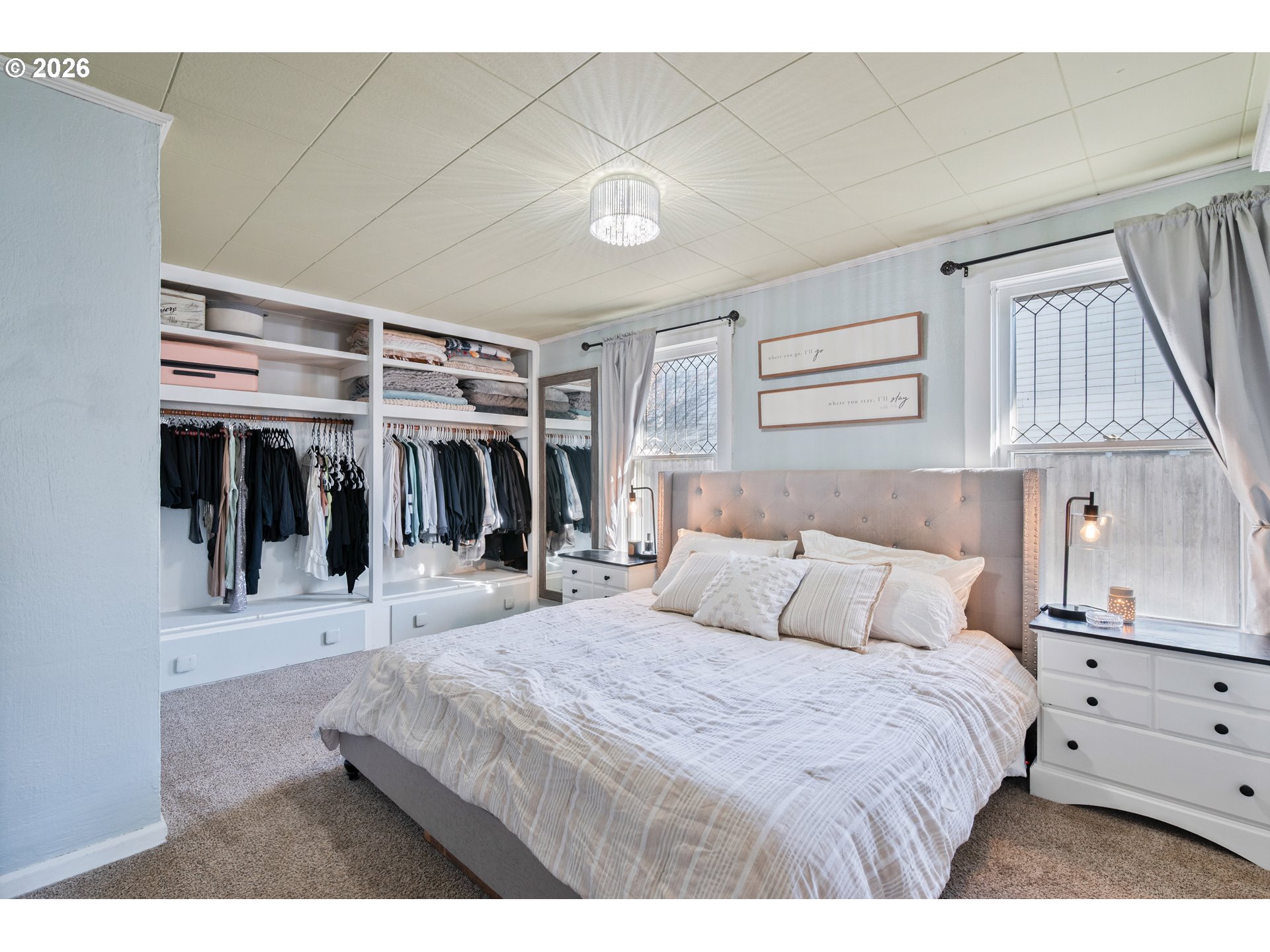 Built in 1910, this well-established home reflects the character and craftmanship of the era while offering a spacious and flexible layout with 6 bedrooms, 2 bathrooms, and over 2,800 sq ft of living space with a flexible floor plan. The main level features a large living room with a gas fireplace, dining area, and hardwood floors beneath carpet in the living and dining rooms. Multiple bedrooms are located on the main level, including a primary suite with three oversized closets, a large linen closet, and a primary bath with tile floors and tile tub/shower surround with ample storage. The lower level includes an additional bathroom, utility room with utility sink, and extensive storage. Refrigerator, LG dryer, Night owl security system and freezer are included. Electrical panel updated in 2022. Oversized two-car garage provides room for parking and potential workshop space. Conveniently located near shopping, dining, parks, and other community amenities, within approximately 3 miles of medical facilities and approximately 0.5 miles to I-5, offering easy access to major routes.Offers: Seller intends to review offers upon re