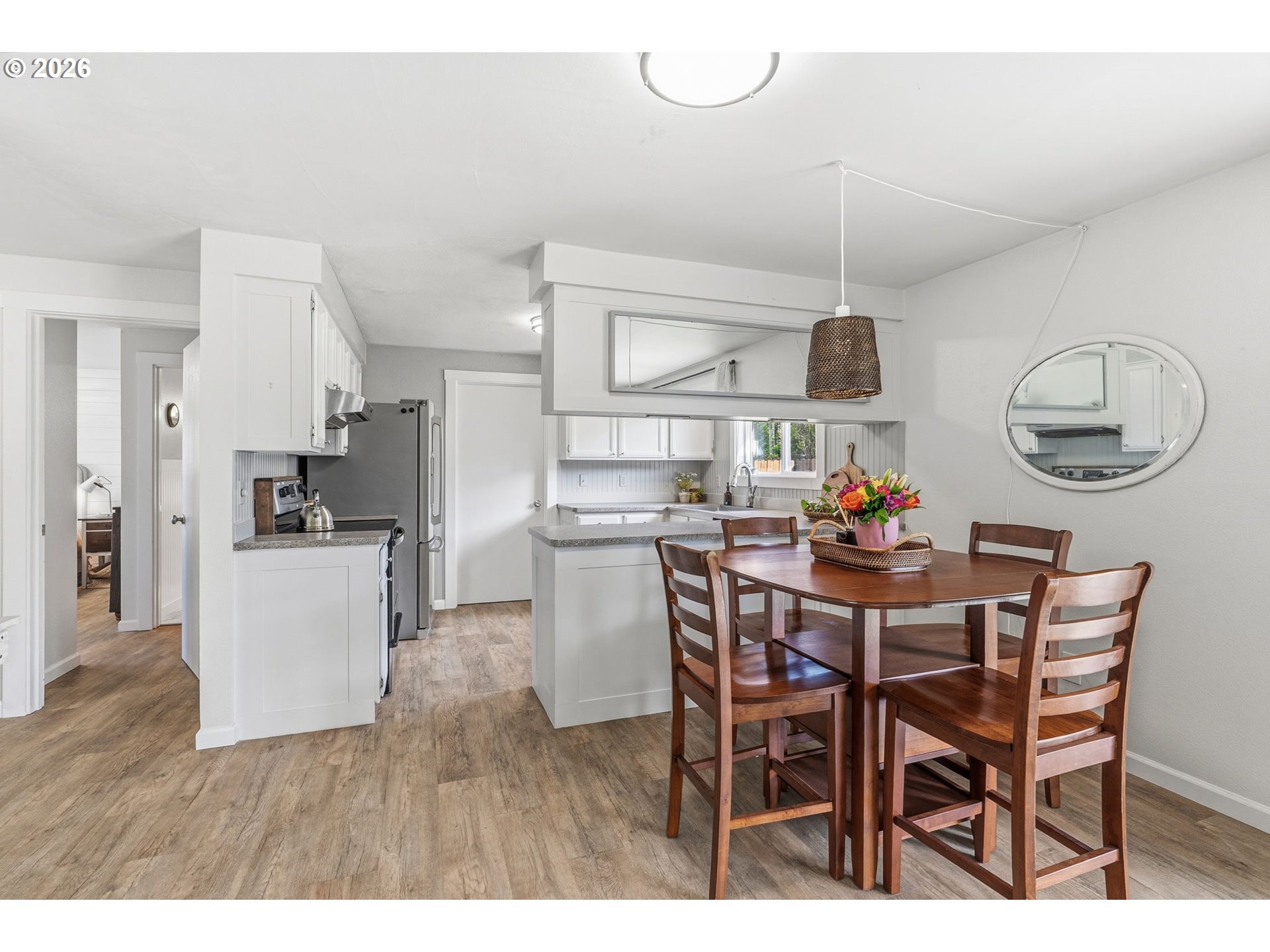 Welcome to this beautifully maintained 3-bedroom, 1.75-bath home offering 1,542 square feet of comfortable, open-concept living in a desirable Woodland location. Tucked away on a quiet cul-de-sac, this property sits on a large, private lot—perfect for those seeking both space and serenity.Inside, you’ll find a bright and inviting layout with seamless flow between the living, dining, and kitchen areas. A cozy wood-burning fireplace adds warmth and charm, while the efficient heat pump ensures year-round comfort. The spacious primary bedroom features its own en suite bath for added privacy.Step outside through sliding glass doors to your own backyard retreat. The expansive, fully usable yard includes a greenhouse, dedicated garden space, a pergola for relaxing or entertaining, and a firepit for cozy evenings under the stars. With plenty of parking and room to spread out, this property offers both functionality and flexibility.Conveniently located close to I-5, this home combines peaceful neighborhood living with easy access to commuting routes. A rare opportunity to enjoy space, privacy, and comfort all in one.