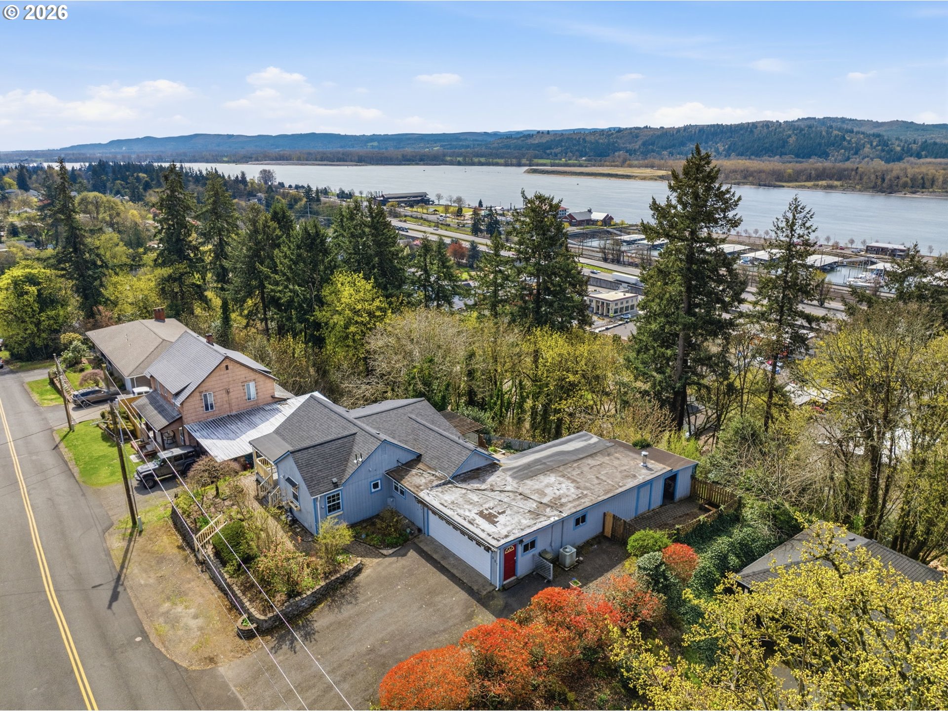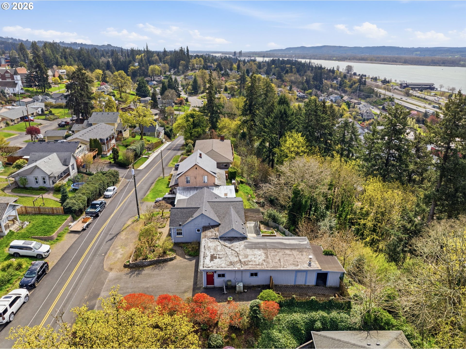 Welcome to this adorable Kalama cottage that is ready for your personal touch! With spacious living areas filled with natural light, this home is both cozy and cheery. Two bedrooms and one bath with many comforting updates like a forced air furnace, heat pump, vinyl windows, and a newer roof. Bathroom has been fitted with a full-size shower plus separate step in bath. Hard surface flooring flows throughout the home. Composite decking on covered front and back porches. Charming paver paths that wind through flower beds loaded with established flowers, trees and shrubs surrounding the home. Enjoy the views of the Columbia River and vibrant downtown as you work the raised garden beds out back. Extra large attached garage has workshop space and additional storage behind it. Lots of paved parking in the driveway plus streetside parking out front. Located just blocks from downtown, schools, parks and more. With a little work, this cutie can shine again. Come and make it yours!