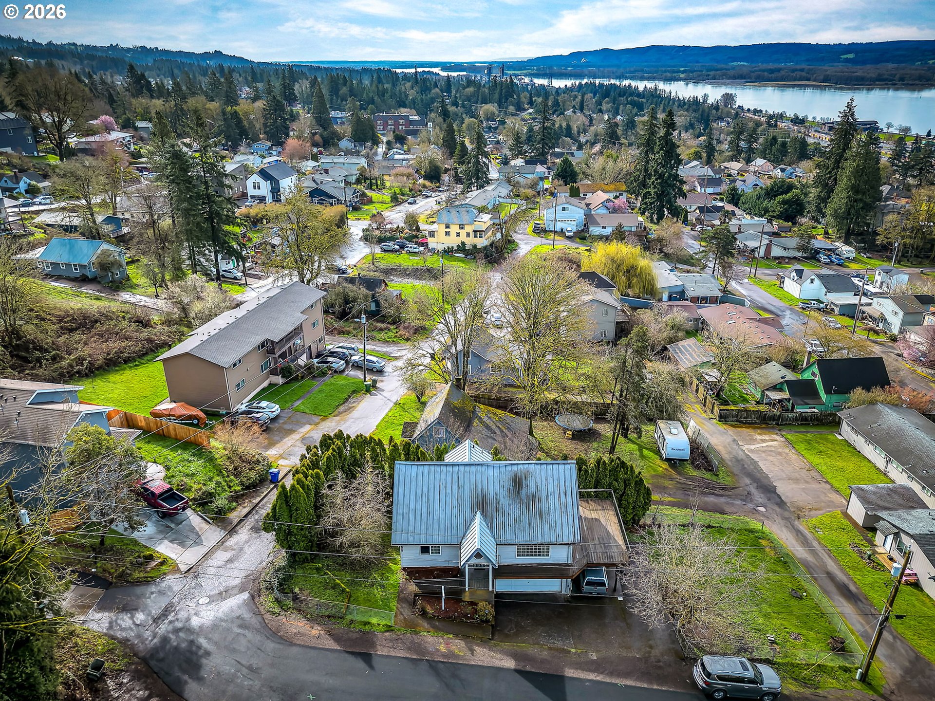 OPEN HOUSE, SATURDAY 4/11 from Noon to 3 pm. OPPORTUNITY WITH A VIEW! This 2,168 sq ft home features a flexible multi-level layout with 3 bedrooms plus a bonus room and multiple living areas. The main level features hardwood floors, a living room with fireplace, spacious kitchen with island, dining area, and a primary suite with walk-in closet and private bath, plus a half bath.Step out onto the deck off the kitchen and enjoy beautiful Columbia River views—perfect for relaxing or entertaining. The property also includes a good-sized corner lot and excellent parking with an oversized 2-car garage, carport, and dedicated space for an RV or boat.Cosmetic fixer offering a great opportunity to build equity and make it your own. Priced to reflect condition—motivated seller, act quickly!