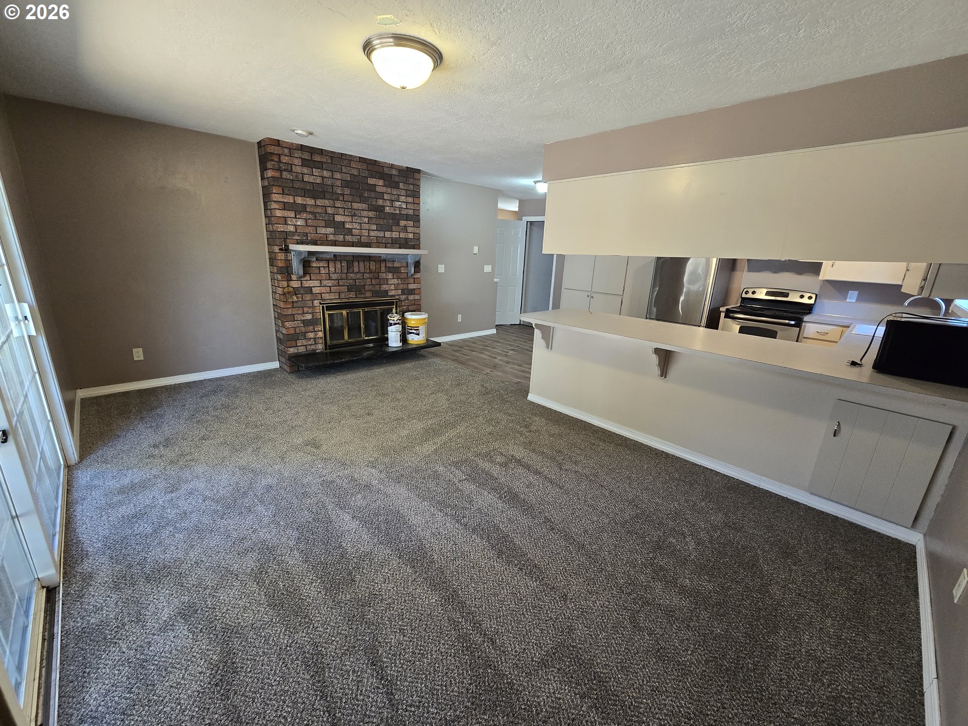 Charming 3-bedroom, 2-bath home offering 1,380 square feet of comfortable living space! This inviting property features a spacious living room with beautiful bay windows, built-in cabinetry, and a classic brick wood-burning fireplace-perfect for cozy evenings at home. The kitchen includes a convenient peninsula with eat-in bar top seating and a pantry for extra storage and organization. The dining area and primary bedroom both offer sliding door access to a large back deck, creating a seamless indoor-outdoor flow that's ideal for entertaining, relaxing, or enjoying the backyard. The dining room could also be used as a family room and features a cozy wood burning fireplace. Additional highlights include a 2-car garage, a built-in vacuum system and thoughtful storage throughout. A wonderful blend of comfort and functionality - ready to welcome you home!