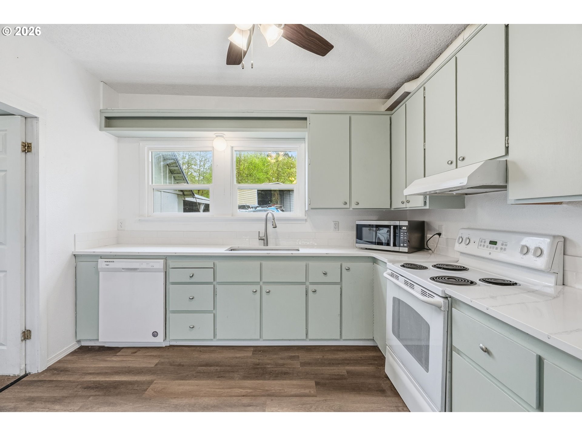 CeilingFan, Laundry, Quartz, VinylFloor, Wainscoting, WasherDryer
