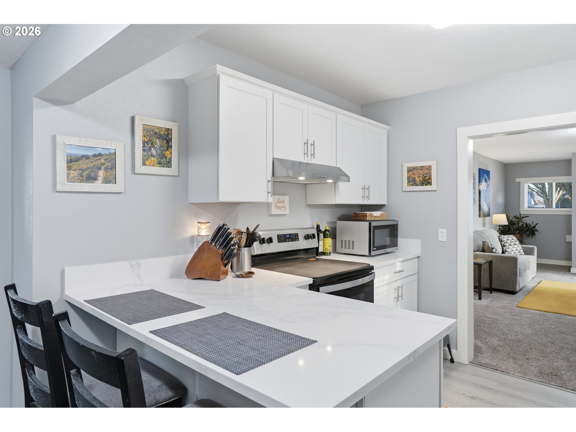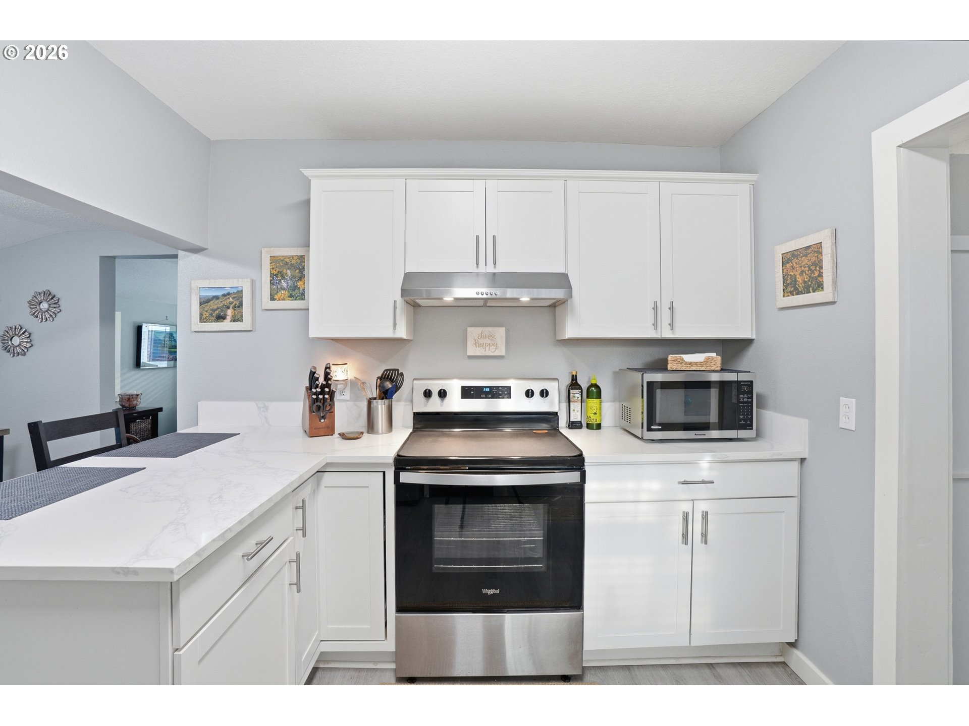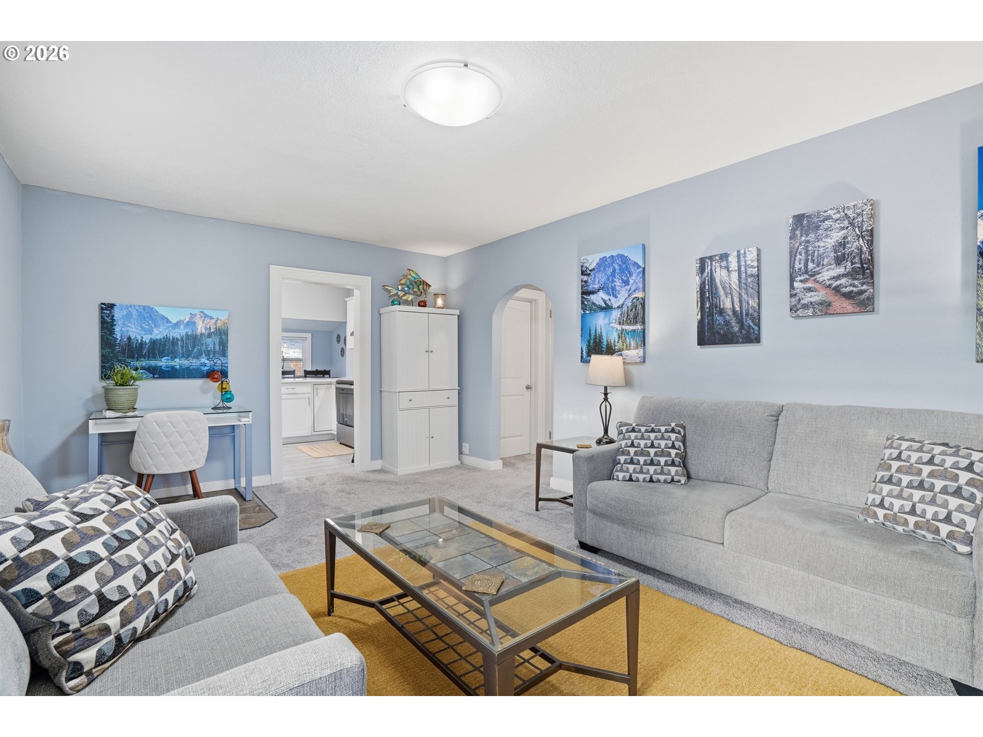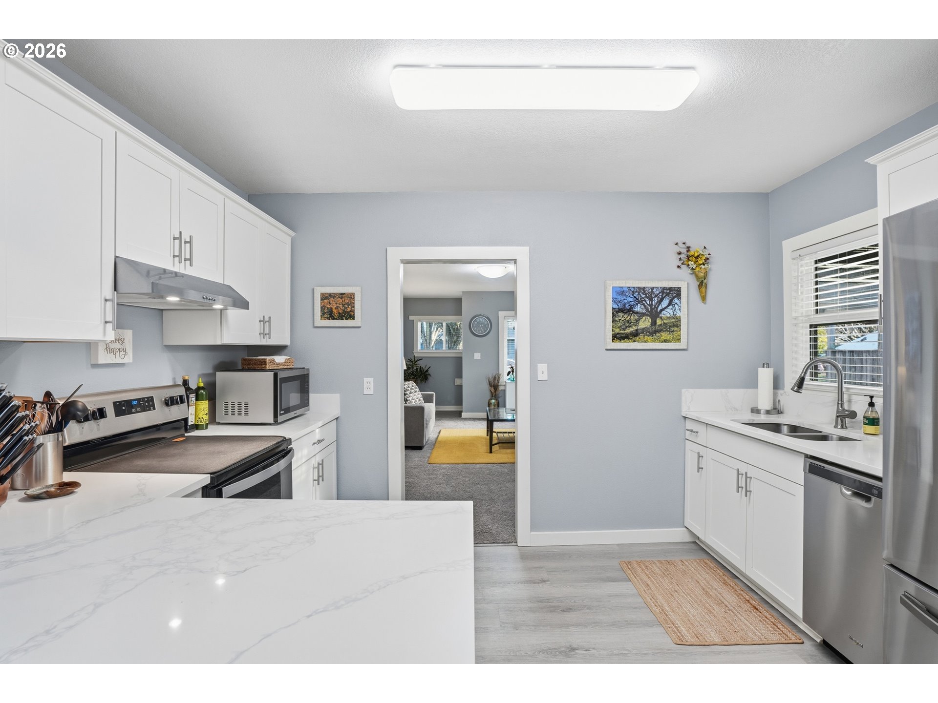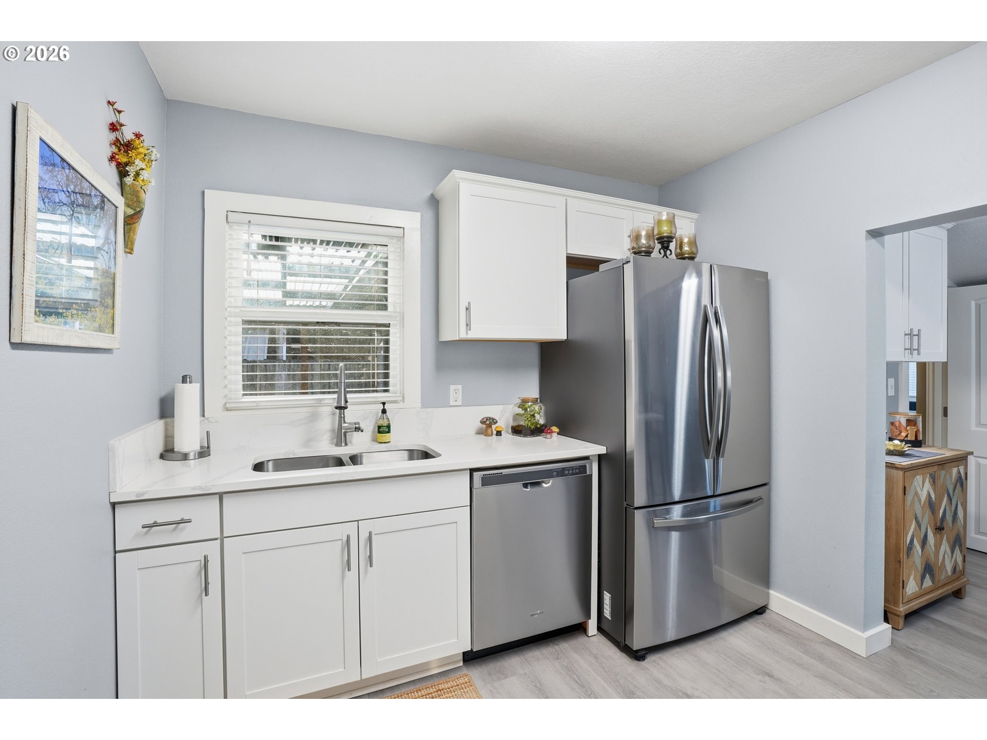 Featuring historic charm paired with modern comfort, this beautifully updated home offers a rare combination of character, functionality and an exceptional location just two blocks away from Lake Sacajawea. Recent improvements include roof, custom blinds throughout, quartz counter tops, Daikin ductless heat pump, Milgard windows, Square D electrical panel, cabinetry, lighting, plumbing, flooring, doors, hardware, insulation, vanity, tub, toilets, bath tile, sheetrock/texture/paint and appliances. This flexible floorplan provides nearly two living spaces, with private primary bedroom featuring a connected half bath, adjacent laundry, and direct access to fully fenced backyard, creating a peaceful secluded retreat. Mature trees frame 18th Ave., creating a stunning tunnel-like canopy during the summer and fall months, enhancing the quiet neighborhood setting. Additional highlights include a covered carport, alarm system, newer Tuff shed and convenient highway access. Located near Kessler Elementary, Cascade Middle School, and Mark Morris High School (Buyer to verify), and close to Archie Anderson Park, 7th Ave. Park, the Cowlitz River and Lake Sacajawea. This thoughtfully maintained home is truly one of a kind and move-in ready.