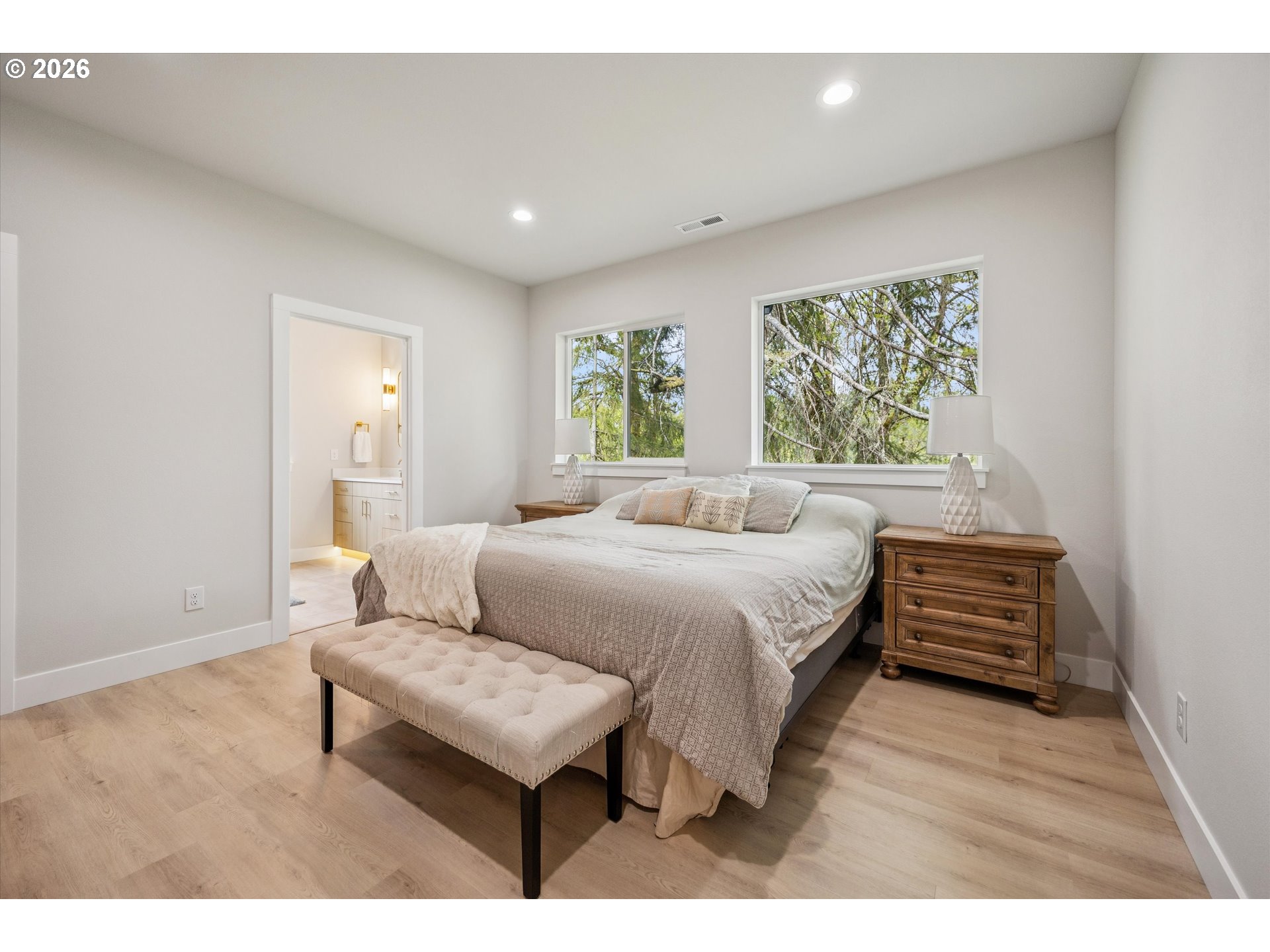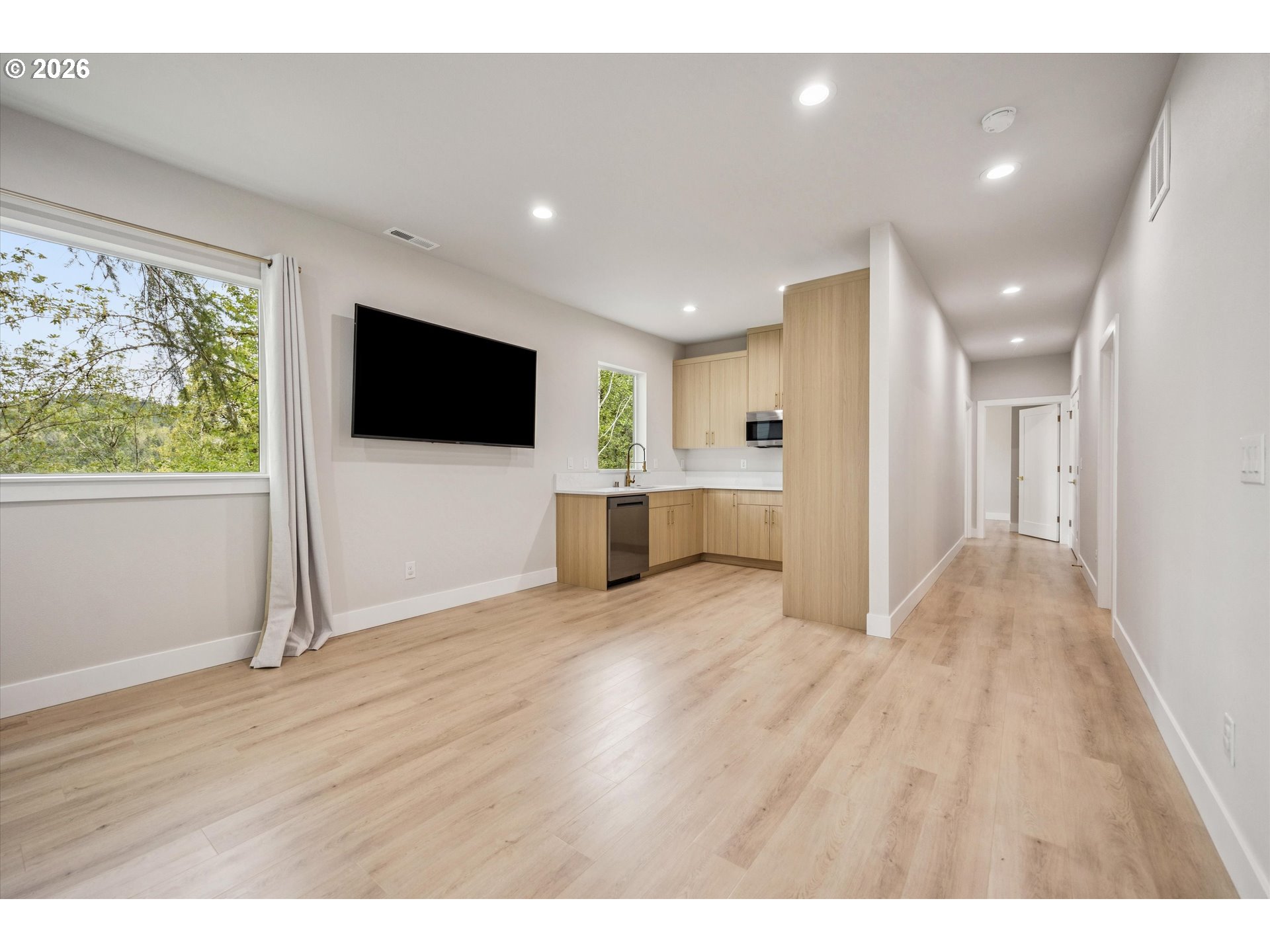 Experience the perfect blend of modern design and peaceful surroundings in this stunning new construction home, ideally situated on a private .55-acre lot in a quiet, established neighborhood. The thoughtfully designed main level offers 4 bedrooms (or 3 plus a den/office), 2 bathrooms, and a bright, open-concept living space filled with natural light. The spacious primary suite features a beautifully tiled walk-in shower, generous walk-in closet, and serene ambiance. The chef-inspired kitchen showcases quartz countertops, SS appliances, a large island, and stylish, high-quality finishes throughout. The lower level provides exceptional flexibility with an ADU-style or in-law suite, complete with 2 bedrooms, 1 bathroom, a full kitchen, washer/dryer hookups, and an expansive living and dining area with its own private entrance—ideal for multigenerational living or guest accommodations! Enjoy year-round outdoor living with two covered decks overlooking tranquil greenbelt views—perfect for entertaining, relaxing, or adding a hot tub. An oversized 3-car garage offers abundant storage and workspace. This rare opportunity combines the benefits of new construction with the charm of a well-established setting, creating a home that truly has it all.
