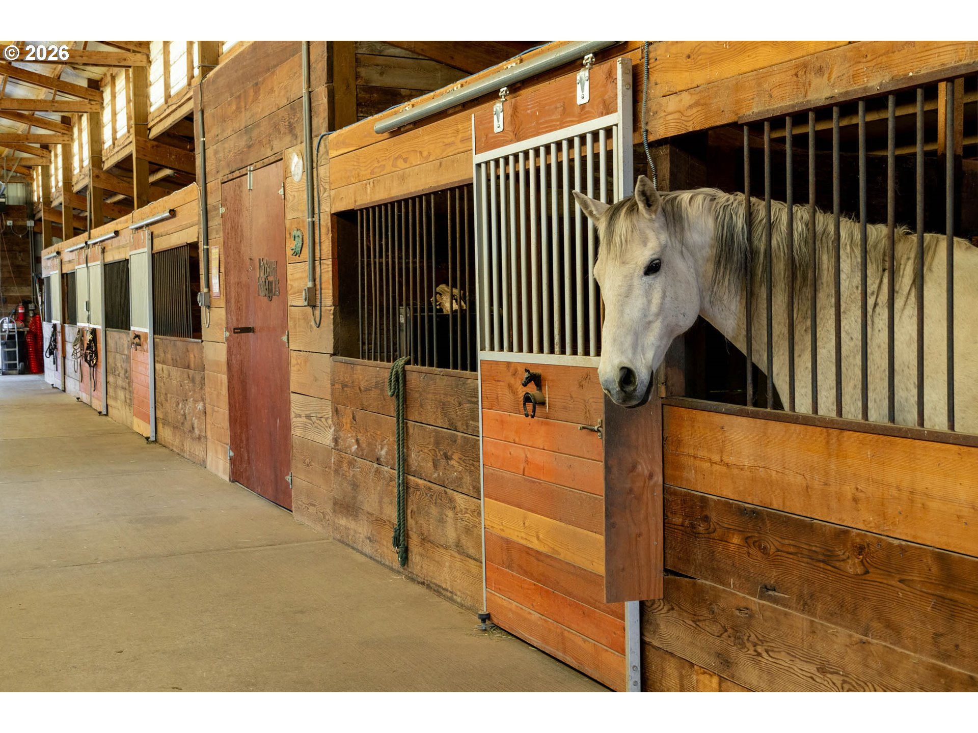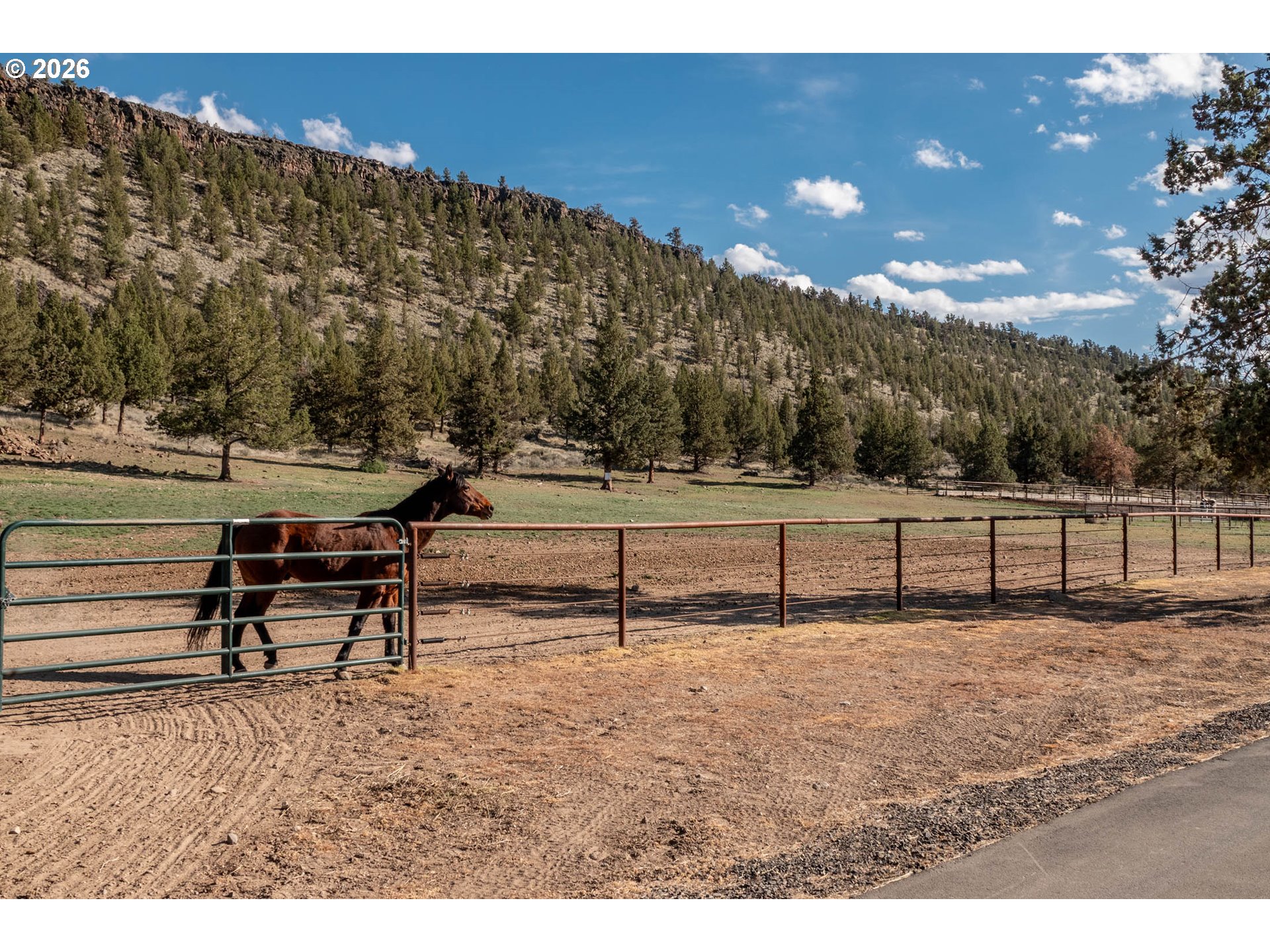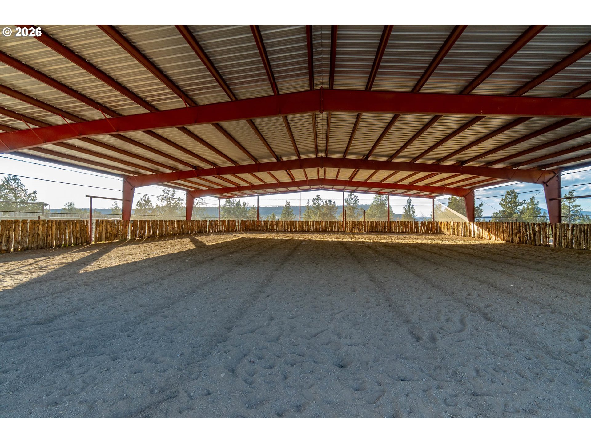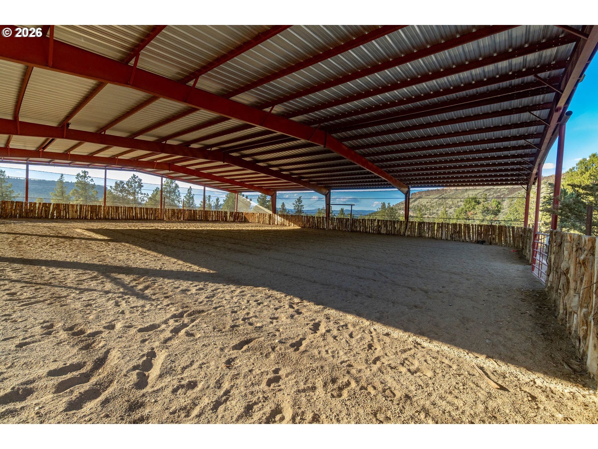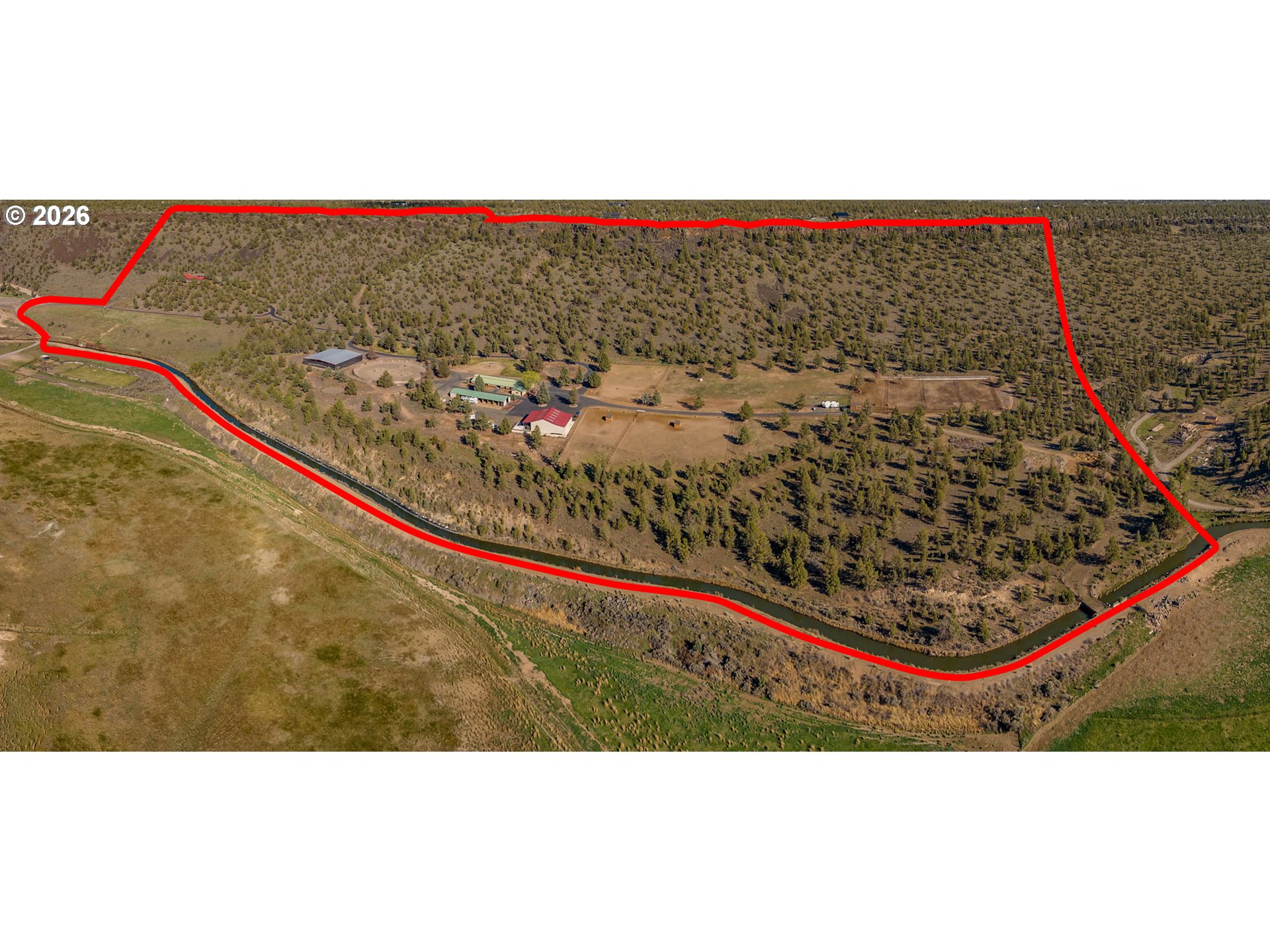 Crooked River Rim Horse Ranch offers 97.94± elevated acres overlooking the Crooked River Valley, positioned just 10 mins from Prineville. This horse property combines substantial infrastructure with convenient access. The 2,265± sq ft one-level home (2003) provides practical year-round living. An attached 832±sq ft garage includes a heated/cooled loft for workspace or guests. Horse infrastructure includes: main barn with 13 stalls, tack areas, feed room, and integrated living quarters. A 12,000± sq ft covered arena. A 175' round pen and an additional small round pen complete the setup. Welded pipe corrals and feedlot with 250± feet of bunk space support livestock handling. Water security is solid: 6.1± acres of irrigation rights through Ochoco Irrigation District, two domestic wells, and freeze-protected troughs ensure reliable year-round operation. A 4,320± sq ft hay storage and shop building includes an enclosed heated workspace. Built for a serious horse person to enjoy.