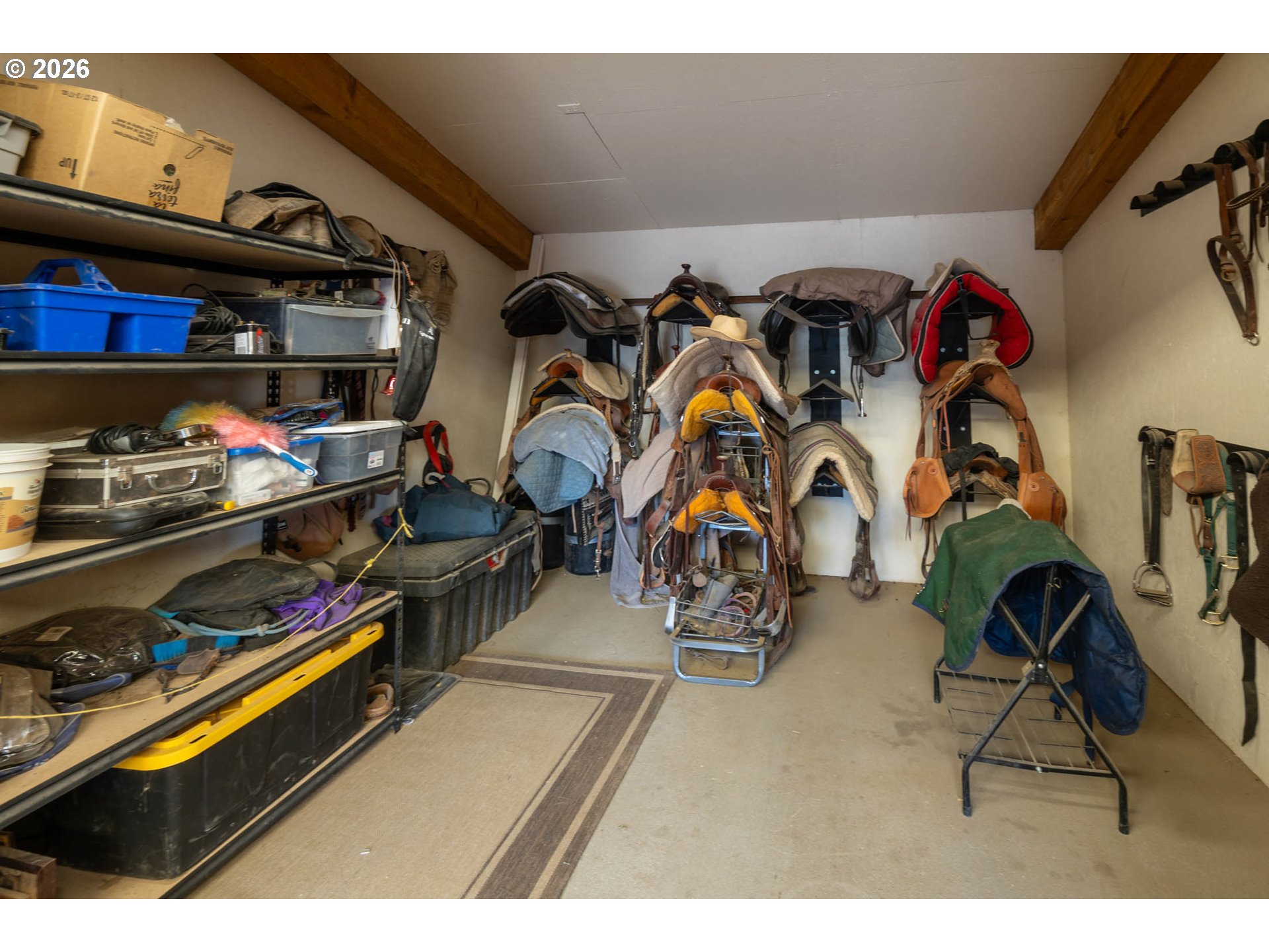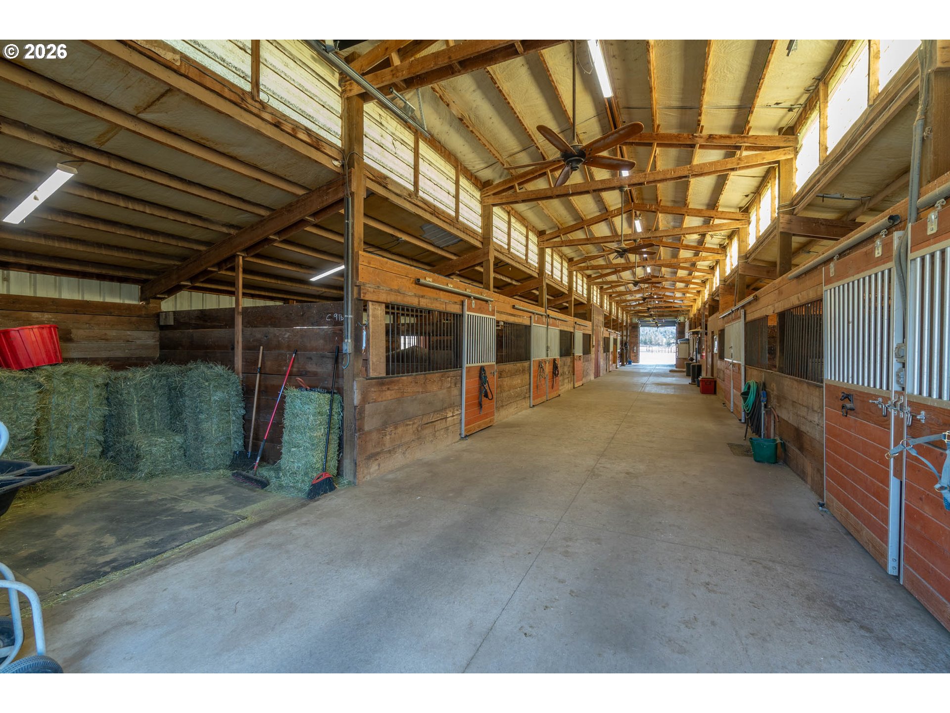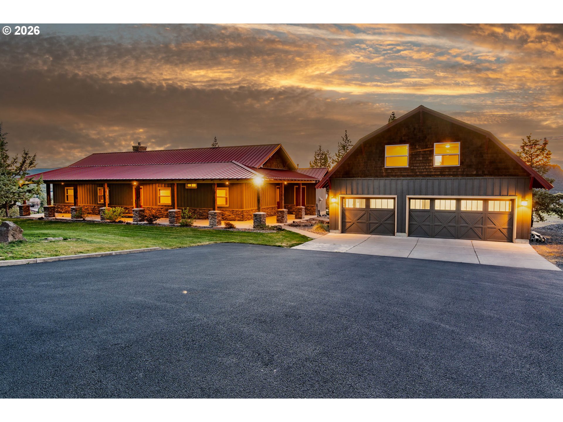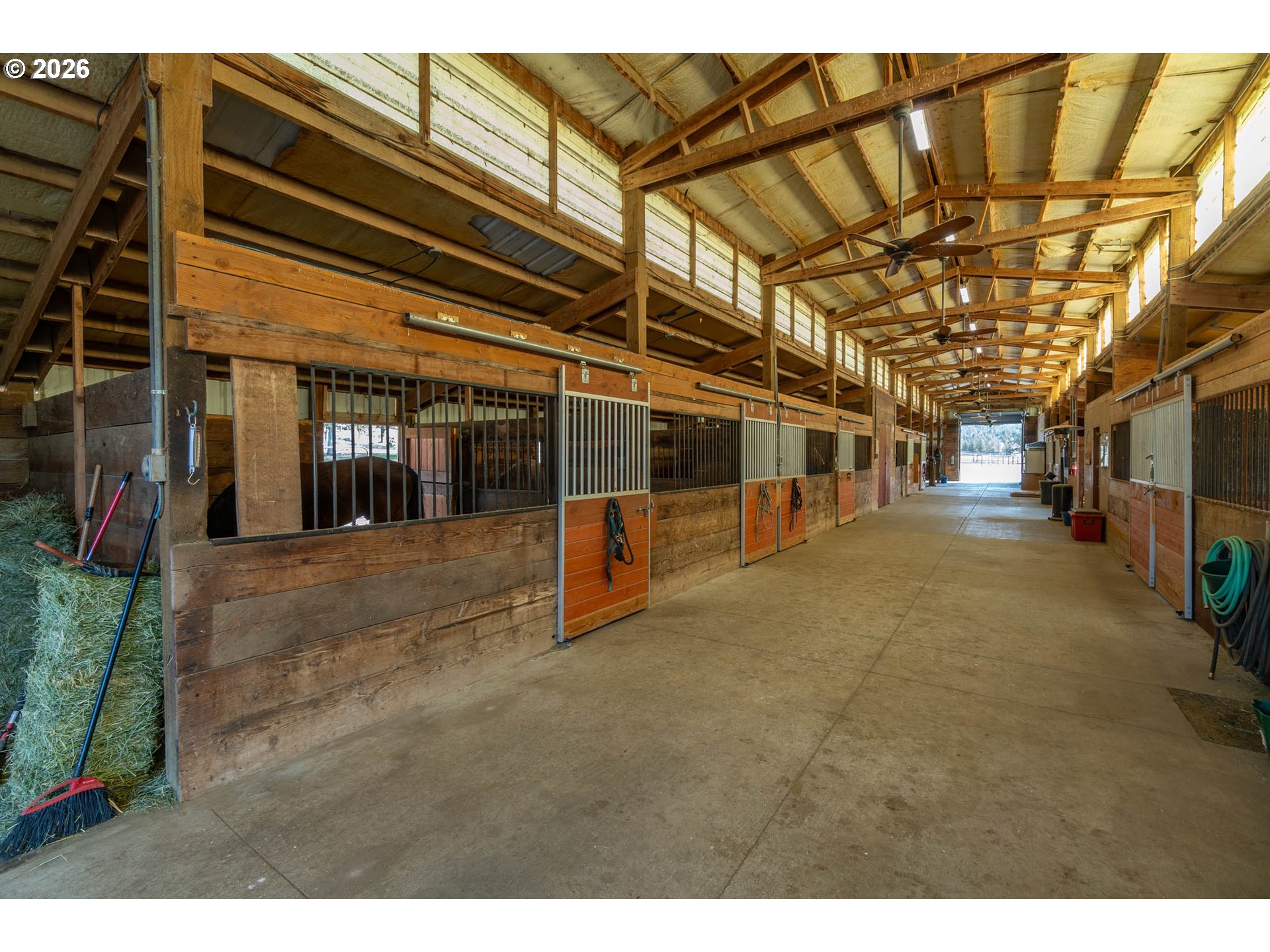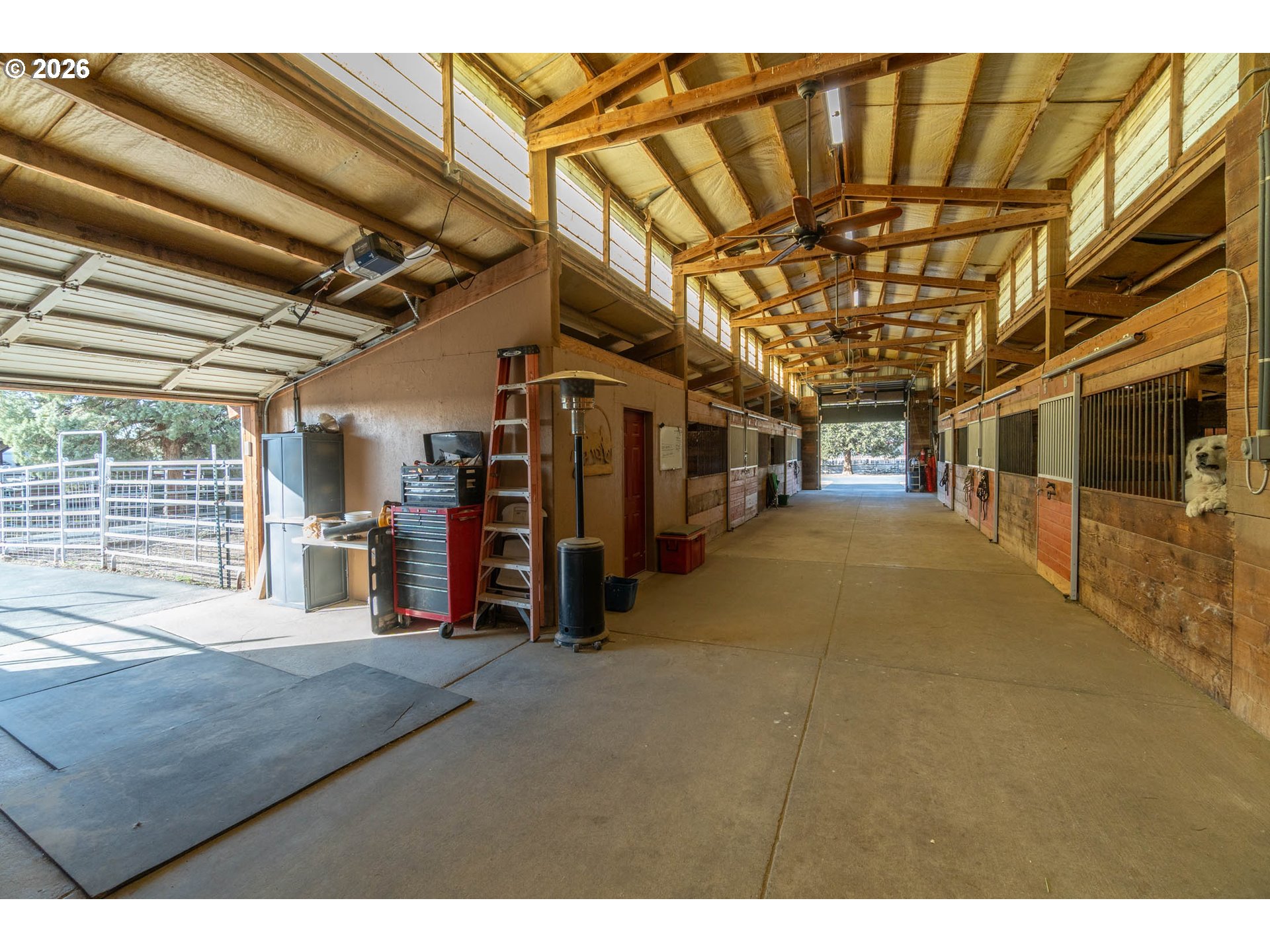 Crooked River Rim Horse Ranch offers 97.94± elevated acres overlooking the Crooked River Valley, positioned just 10 mins from Prineville. This horse property combines substantial infrastructure with convenient access. The 2,265± sq ft one-level home (2003) provides practical year-round living. An attached 832±sq ft garage includes a heated/cooled loft for workspace or guests. Horse infrastructure includes: main barn with 13 stalls, tack areas, feed room, and integrated living quarters. A 12,000± sq ft covered arena. A 175' round pen and an additional small round pen complete the setup. Welded pipe corrals and feedlot with 250± feet of bunk space support livestock handling. Water security is solid: 6.1± acres of irrigation rights through Ochoco Irrigation District, two domestic wells, and freeze-protected troughs ensure reliable year-round operation. A 4,320± sq ft hay storage and shop building includes an enclosed heated workspace. Built for a serious horse person to enjoy.