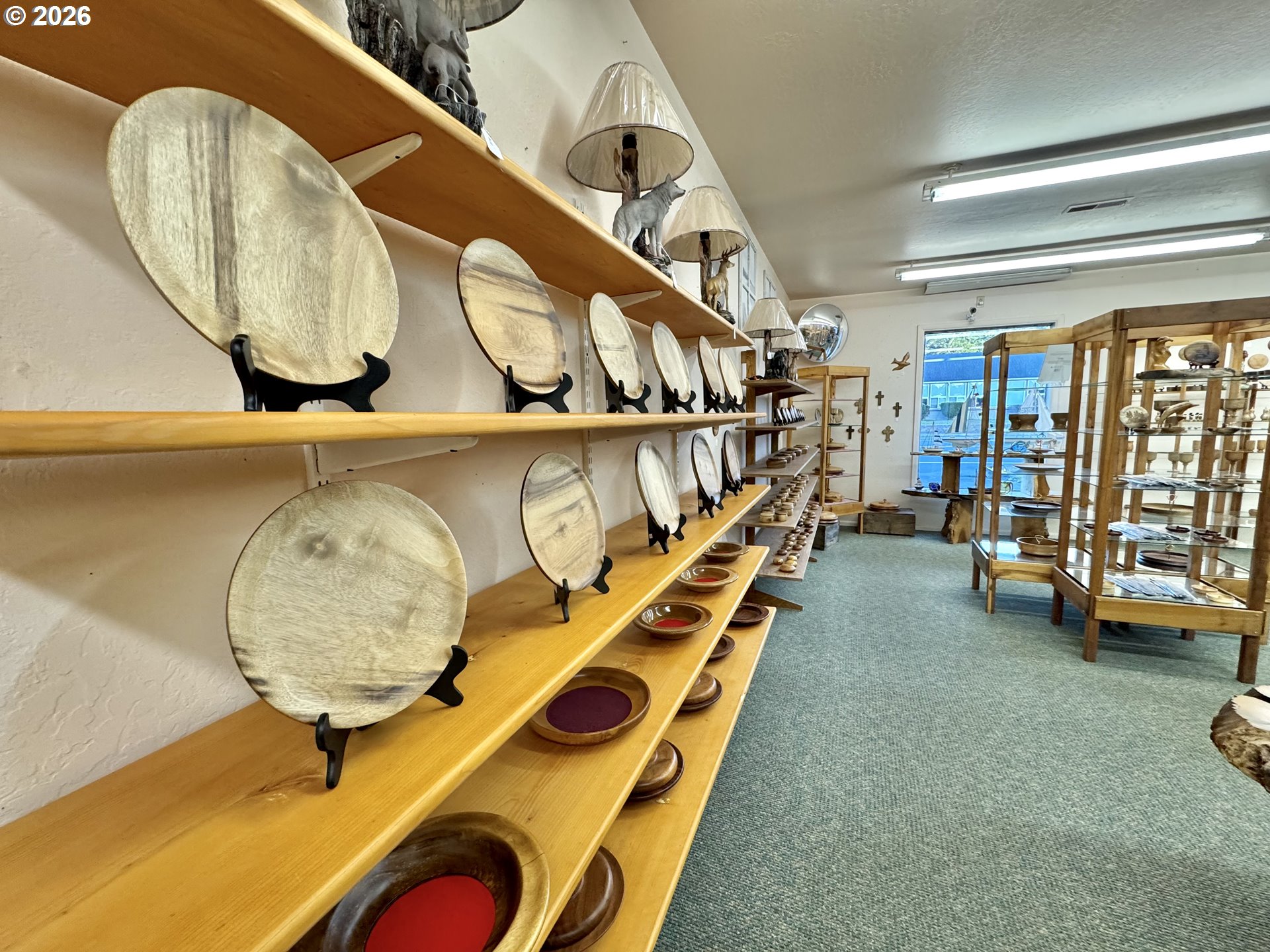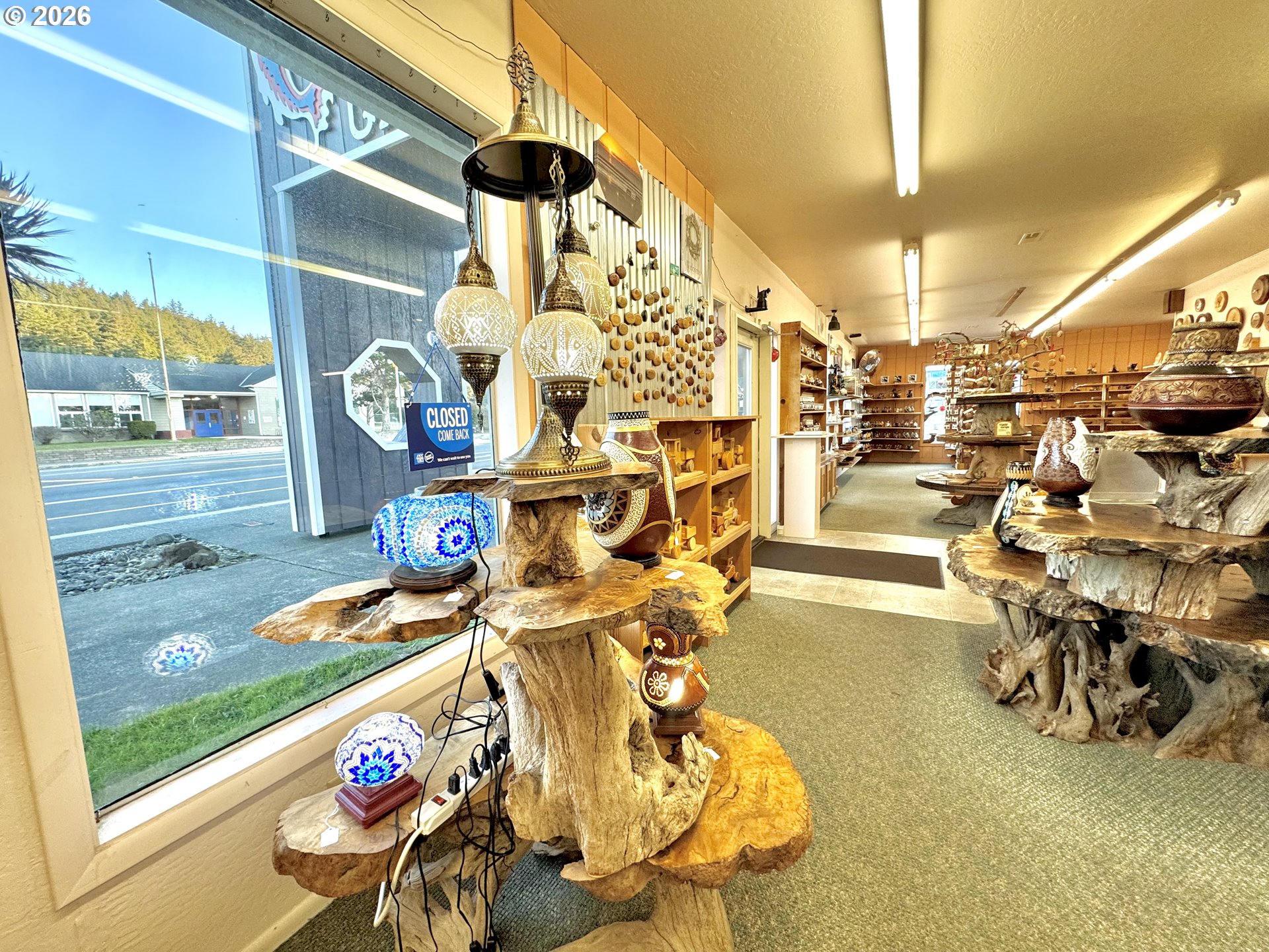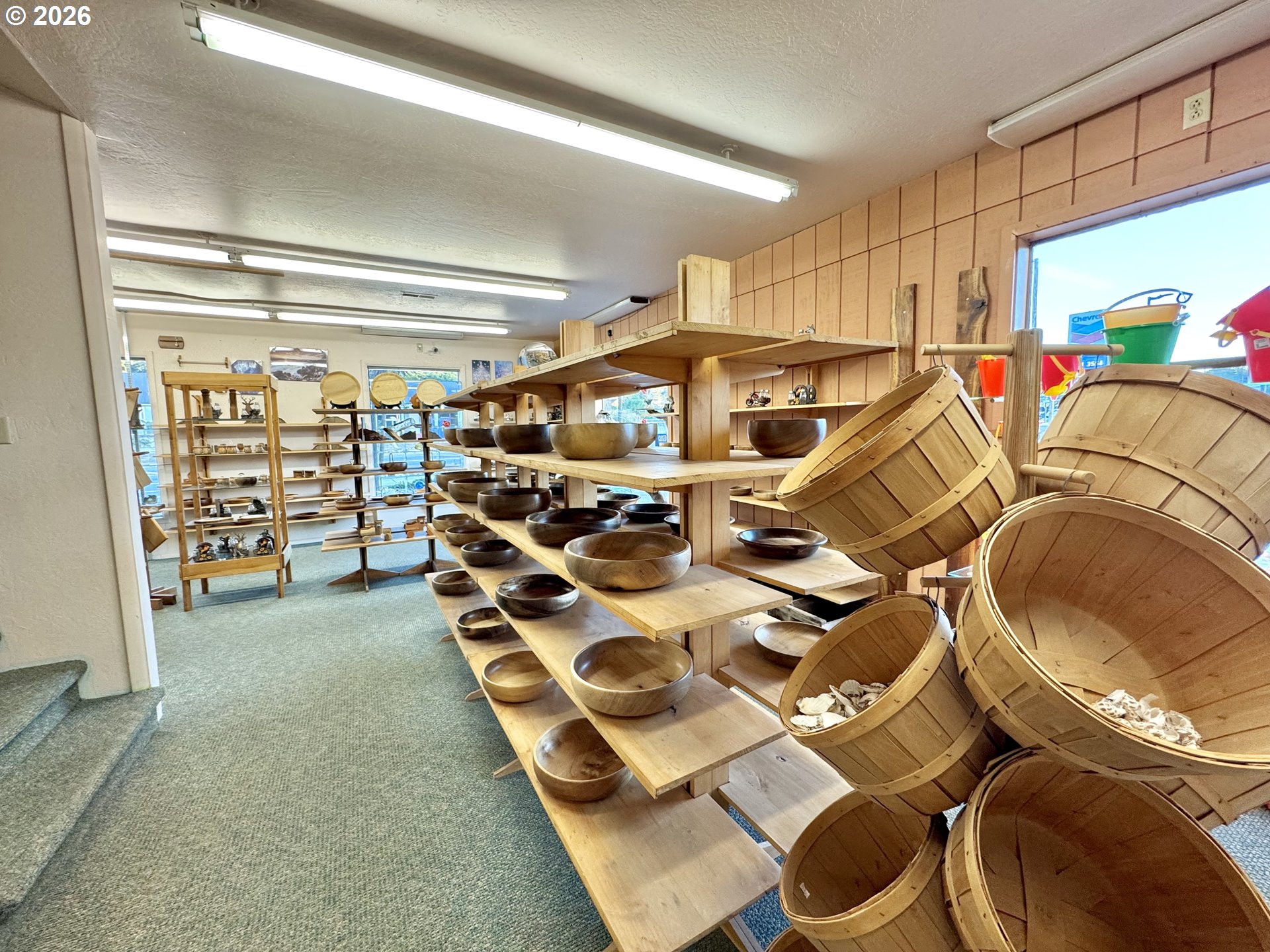 Located in the heart of Port Orford with exceptional Highway 101 visibility, this iconic commercial property, known for decades as the Wooden Nickel Myrtlewood Factory, offers a rare blend of income potential, craftsmanship, and coastal character.Set on approximately 100 feet of himyrtlewoodtage and 250 feet of total road frontage with a convenient drive-through, the property includes an expansive commercial building (approx. 2,670 sqft) with an upstairs residence (approx. 1,800 sqft) and a woodshop/warehouse (approx. 2,680 sqft) currently configured as a full myrtlewood woodshop. Six paved parking spaces are in place, with additional room for RV, boat, or oversized vehicle parking. The property is partially fenced and designed for flexibility.The upstairs residence features a spacious kitchen, massive living/family room, walk-in pantry, mudroom, three bedrooms, laundry area, and a full bathroom—ideal for owner-occupancy, live/work use, or future income options.The main level includes an enormous showroom, office, processing room, break room, half bath, and ample storage. Out back, the massive woodshop is outfitted as a complete myrtlewood manufacturing facility, including a wood kiln, spray room, and multiple storage areas.This property has been a myrtlewood manufacturing and gift destination for over 55 years, drawing a loyal following of returning visitors from across the country, families who return year after year, friendships formed over generations, and products crafted here that have been used as wedding gifts, heirlooms, and meaningful keepsakes. At one time, it was the largest myrtlewood manufacturer on the Southern Oregon Coast, shipping up and down the West Coast and nationwide.With deep roots, proven history, and unmatched visibility in a spectacular coastal town, this is a one-of-a-kind opportunity for entrepreneurs, creatives, and visionaries to carry forward a legacy or create something entirely new.