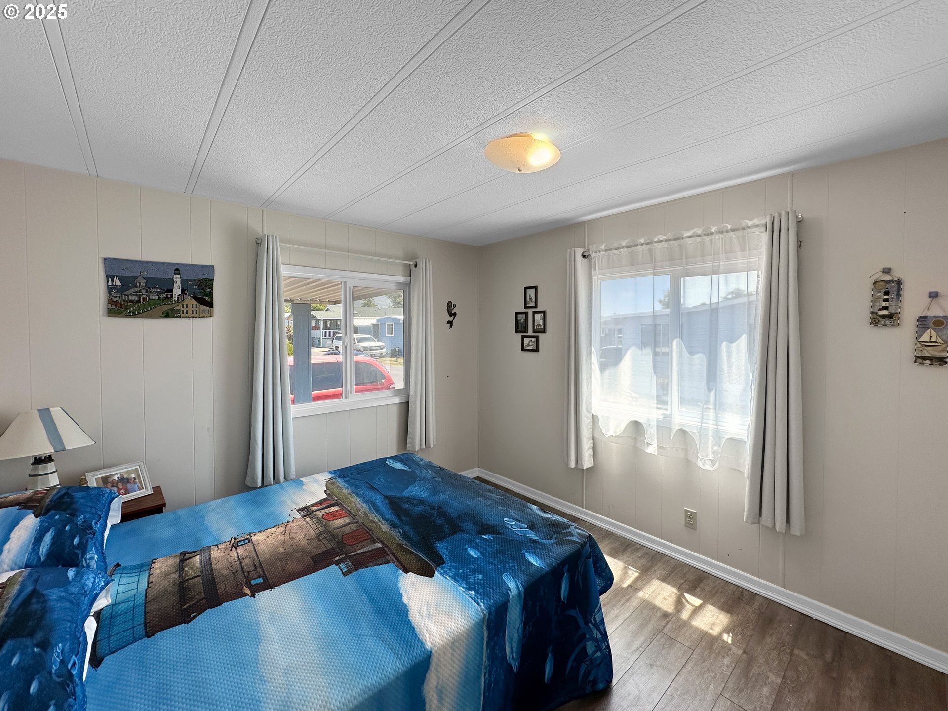 Charming, very well maintained 1,404 sq.ft. 3 Bed, 2 Bath home in the desirable Sunset View 55+ Mobile Home Park. Just 3 minutes from the beach. Lots of recent updates/improvements including Updated Bathrooms, LVP Flooring (removed all carpeting), New Heat Pump, New Dishwasher, Blinds, Gutters, 3 Screen/Storm Doors, and more. Includes a utility/sunroom and storage shed/workshop. Primary bedroom with walk-in closet and updated bath with walk-in shower. Heat pump is integrated with the forced air system and will heat and cool the home, keeping your comfortable year-round. Low park rent of $620/month includes Water and Sewer. Owners only use for a vacation home part of the year. Buyer must be approved by park management prior to close of escrow. Short walk/drive to Sport Haven Beach and Harbor Restaurants.