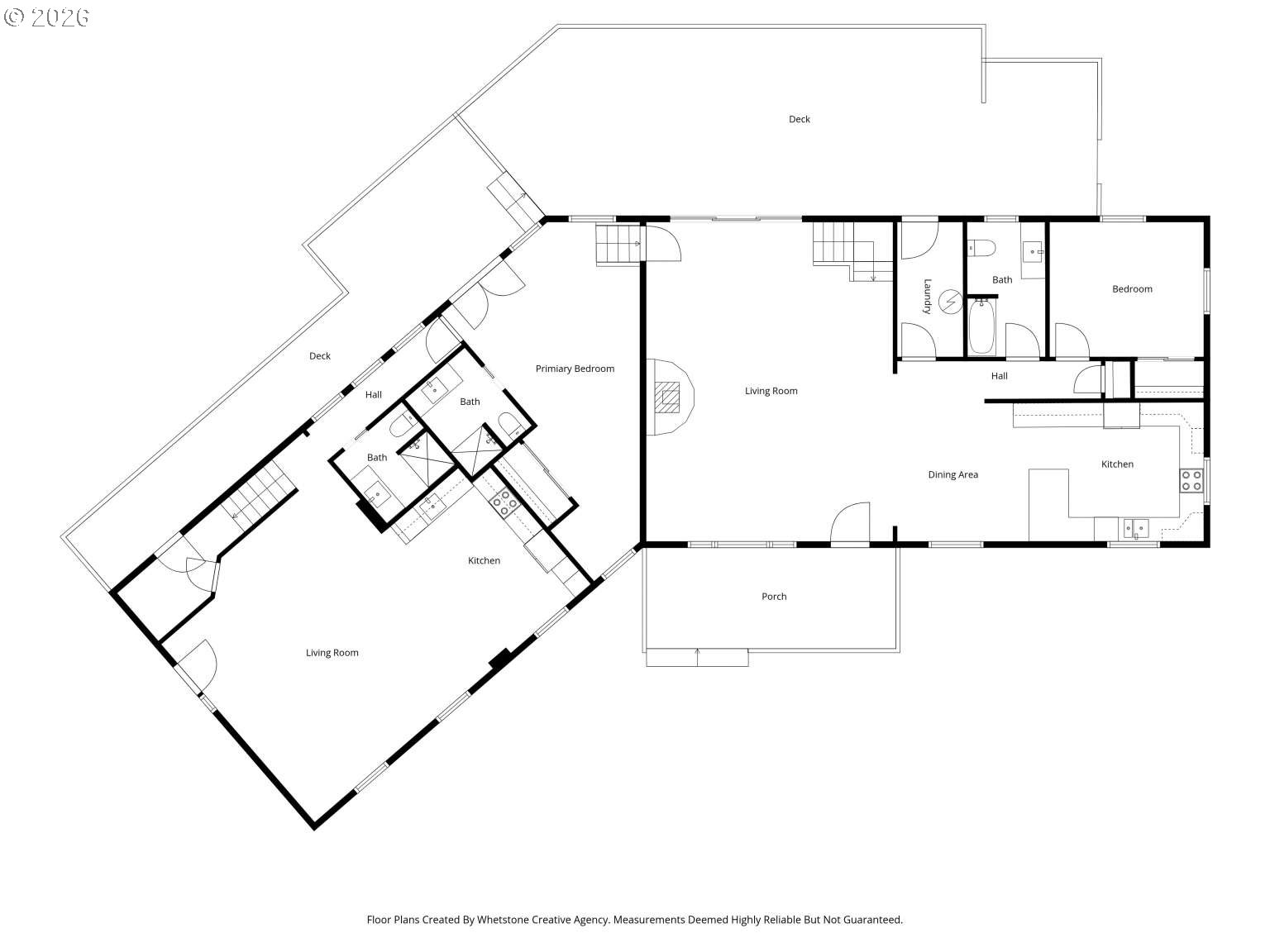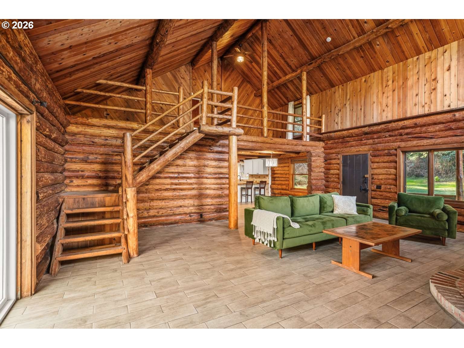 A rare and versatile lodge-style property set on over five acres with established trails and creek access, offering privacy and a peaceful, wooded setting near Brookings. The main structure features two wings—a primary wing and a secondary wing—designed to support flexible living arrangements within one property. The primary wing includes a welcoming gathering room with a propane stove and expansive windows that frame tranquil forest and nature views, creating a warm and inviting space for everyday living. Throughout the property, windows look out onto trees and natural surroundings, offering a strong connection to nature from nearly every room. The primary wing includes two bedrooms, two bathrooms, a loft, a full kitchen, dining area, and laundry, including an ensuite bathroom. The secondary wing includes one bedroom, a loft, two bathrooms, a full kitchen, living area, laundry, also featuring an ensuite bathroom, and is fully self-contained with a lock-off configuration, allowing it to function as a separate living unit or be accessed from the main lodge. An additional finished studio-style space includes a bathroom, private entrance, and no stairs, offering flexible use as guest space, workspace, art studio, or hobby area. No bedroom designation. Outdoor features include multiple deck areas, a covered porch, garage, and ample parking. Evenings here are dark and quiet, creating excellent conditions for enjoying clear night skies and star-filled views. Utilities and services include electric service, city water, septic system, broadband internet availability, wall-mounted heating and air-conditioning units, propane fireplaces, and multiple laundry areas. Substantial updates completed between 2024 and 2025 including siding work, exterior painting, log refinishing and replacement, and upgraded decking. A unique opportunity for buyers seeking acreage, privacy, and a lodge-style setting with flexible interior spaces in coastal Southern Oregon.