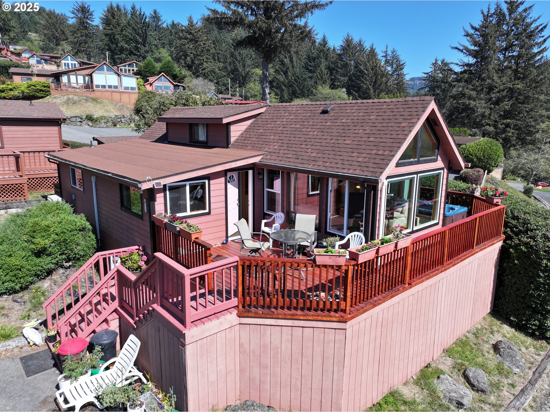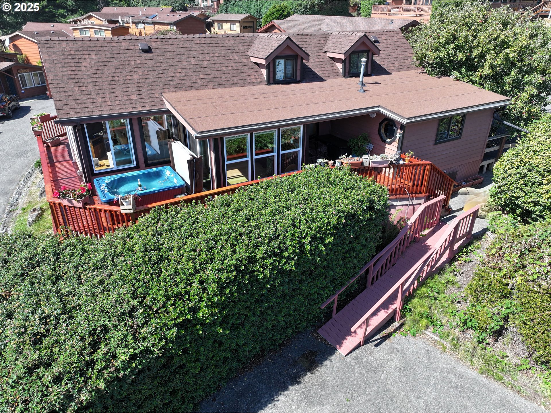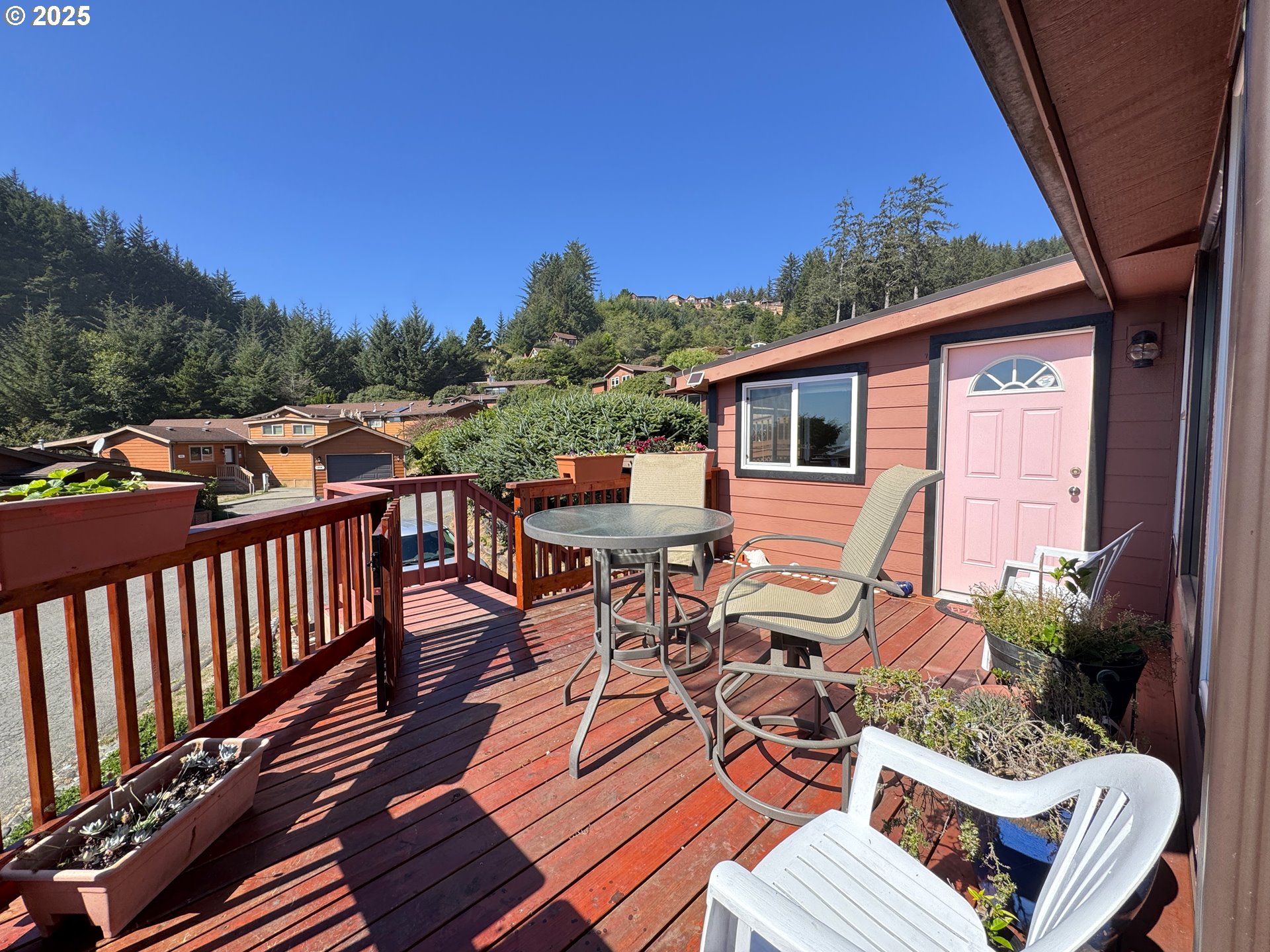 Large Ocean-View Retreat at Whaleshead Beach ResortWelcome to your coastal getaway! This beautifully updated 2-bedroom, 2-bath home at Whaleshead Beach Resort offers breathtaking ocean views and a prime location directly across from the beach and the world-famous Samuel H. Boardman Scenic Corridor. Step inside to a welcoming, light-filled living space with ocean views, vaulted ceilings and a versatile loft area perfect for extra sleeping space. This cabin is bigger than most with 1,148 sq. ft. and includes a large bonus room, with a dog door to the fenced back area, providing convenience for four-legged companions.The spacious primary suite features a versatile bonus area—ideal for a home office, reading nook, or hobby space. Enjoy the wonderful built-in sound system with ceiling speakers, filling the home with rich, immersive audio—perfect for enjoying your favorite music throughout the day.Recent upgrades include a new roof (2024), updated wraparound deck which has also been reinforced under the spa, and new vinyl flooring (2023) in the dining room, ensuring comfort and peace of mind. Outdoors, the expansive 565 sq. ft. deck invites you to gather with friends, relax in the spa, or simply take in the breathtaking ocean views. With accessibility ramps and three parking spaces, this cabin is designed for both comfort and convenience. Whether you are hosting guests, enjoying a quiet getaway, or considering it as a vacation rental, there’s plenty of room for everyone.Don't forget to enjoy miles of sandy beaches, dramatic coastal vistas, and endless outdoor recreation—all just steps from your door. Be sure and check out the 3-D video. Park Fees of $929/month include water, sewer, trash and basic cable.