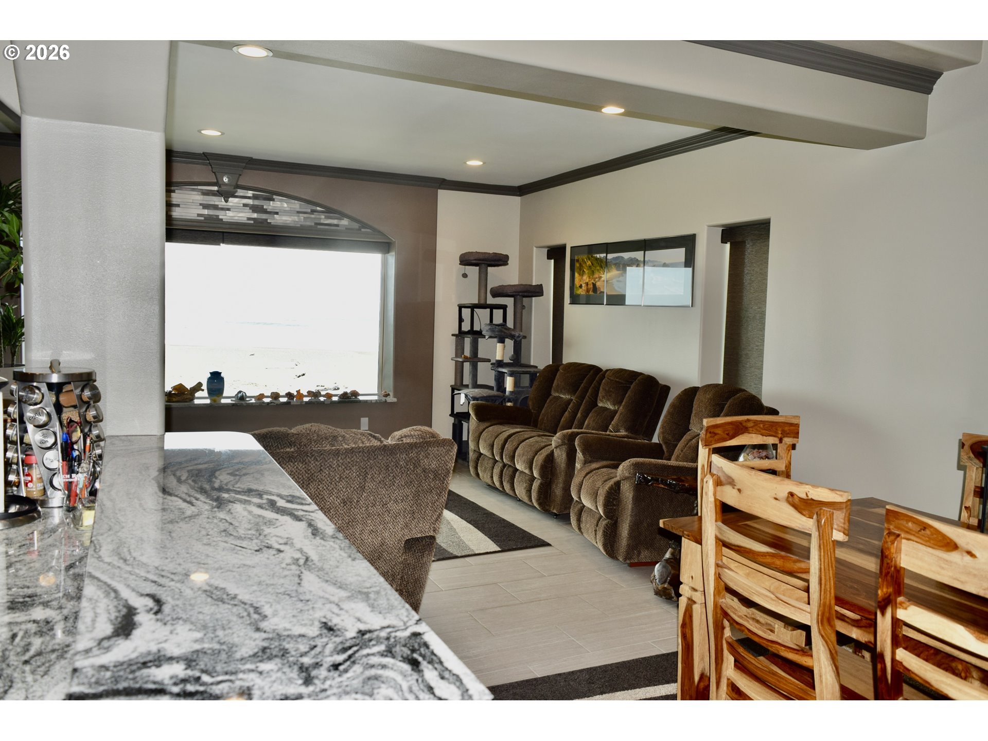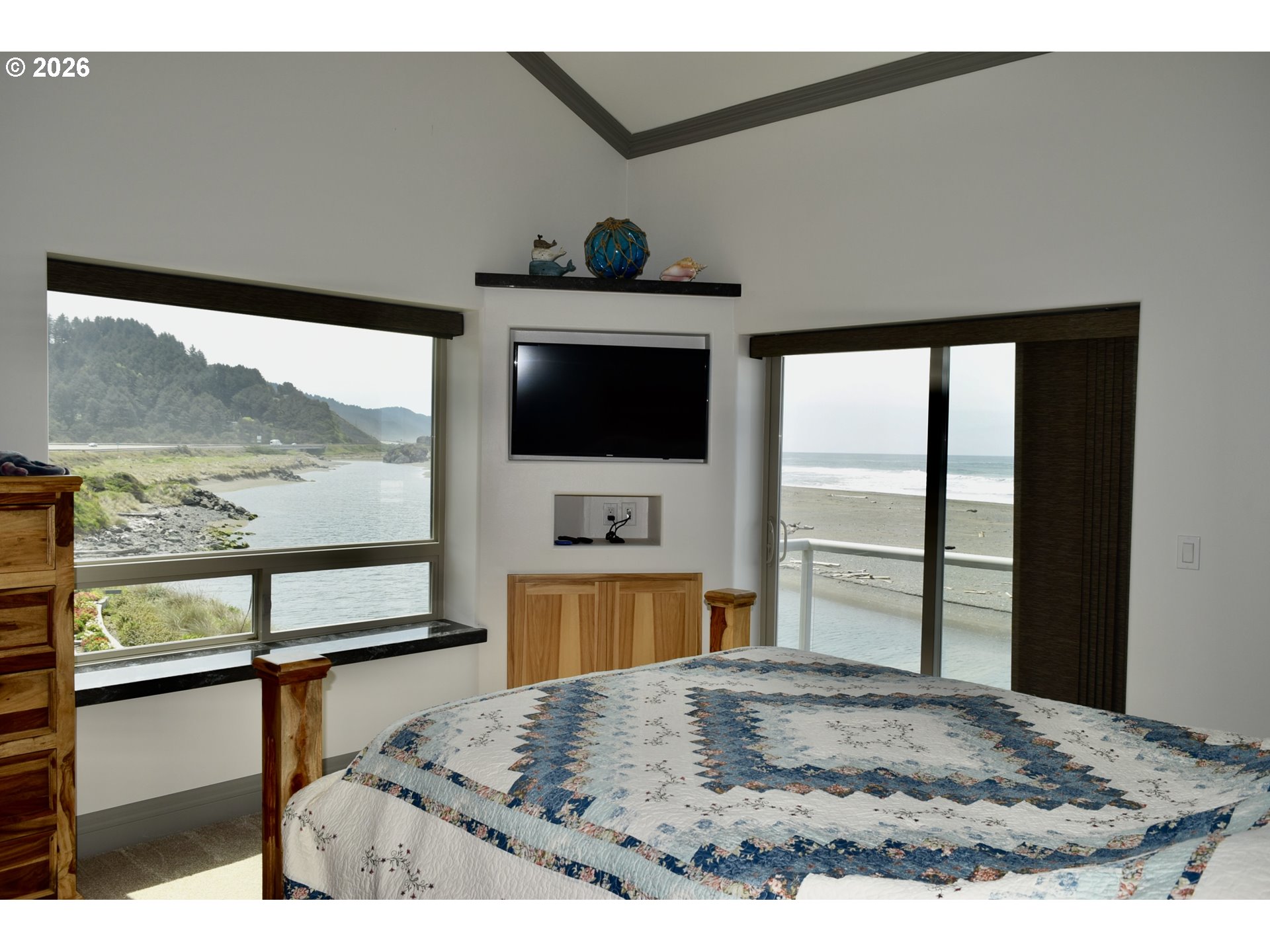 Experience breathtaking coastal living in this beautifully appointed 3-bedroom, 2.5-bath custom oceanfront townhome! Perfectly positioned at the end of the development, this exceptional property offers sweeping panoramic views to the south, north, and west.The seller has thoughtfully enhanced the property by purchasing and combining the adjacent lot, creating extra space and beautifully landscaped grounds for added privacy and enjoyment. Inside, comfort meets elegance with a cozy propane fireplace, efficient heat pump, and a spacious sunroom accessible from both the living room and the primary suite—perfect for relaxing year-round.The luxurious primary suite features a private patio, while both upstairs bedrooms open to their own private decks, allowing you to soak in the ocean breeze and stunning scenery. With zoning that allows for short-term rentals, this property offers excellent income potential or the perfect personal getaway. A rare opportunity to own a one-of-a-kind oceanfront retreat!