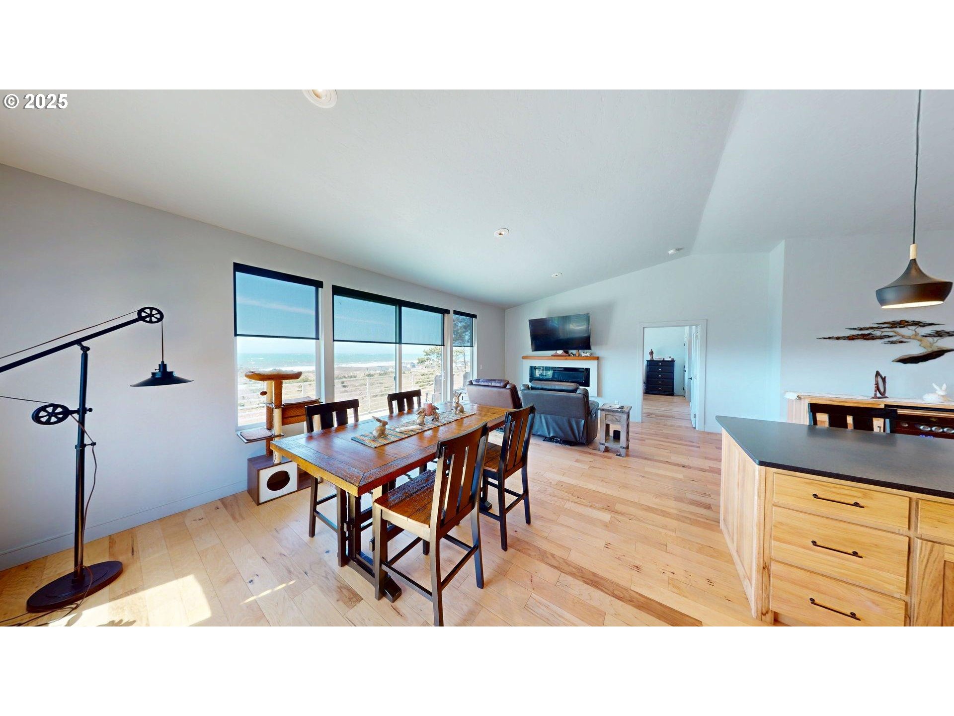 Exceptional Quality, Ocean Views, and Thoughtful Design.This custom-built home is a rare find—beautifully crafted with quality finishes, ocean views, and comfort in mind. Offering 2 bedrooms plus a den/office, and each bedroom featuring its own ensuite, this home seamlessly blends luxury and accessibility. The spacious primary suite is a true retreat with sweeping ocean views, dual closets, and an oversized slider leading to a private deck—perfect for enjoying sunsets or morning coffee. The spa-inspired bath features a jetted tub, low-threshold tiled shower, custom hickory cabinetry, and tiled floors.The second ensuite is equally impressive with Hickory hardwood floors, soaring ceilings, double closet, and direct access to a small backyard patio. Its attached ADA-accessible bathroom includes a roll-in shower, making this home ideal for multi-generational living or guests with mobility needs.Designed for both function and style, the gourmet kitchen is a chef's dream. Granite countertops, a stunning custom backsplash, an eat-at island with sink and dishwasher, and an abundance of custom cabinetry with rollouts and deep pantry space make cooking and entertaining a pleasure. High-end appliances include a gas cooktop, convection microwave, separate oven, premium refrigerator, and wine fridge.Other interior highlights include hardwood flooring throughout, an electric wall-mounted fireplace for cozy ambiance, and an on-demand water heater for energy efficiency.Step outside to enjoy the best of coastal living: a 9-foot ocean view deck, a Swim Spa for year-round relaxation, a grassy, fenced backyard, and beautifully landscaped, low-maintenance front and side yards.This is a home where every detail was thoughtfully considered—comfortable, stylish, and built with enduring quality. Zoning allows short term rental ability for extra income source, if desired.
