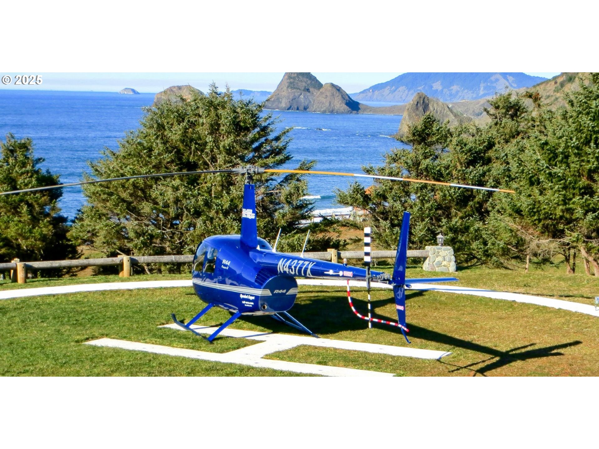 Discover a RARE OCEANFRONT sanctuary along the iconic Oregon Coast. Where land,light, and ocean come together in quiet harmony. Set on more than 28 private acres with direct beachfront access, this extraordinary estate offers a profound sense of peace the moment you arrive. It is a place to breathe deeper, slow down, and reconnect with nature, with stillness, and with yourself. Thoughtfully designed for those who value privacy, presence,and refined living,the custom log home is built from massive imported old-growth Canadian logs, blending timeless craftsmanship with a warm Pacific Northwest interior aesthetic. Soaring 35-foot ceilings and expansive walls of glass invite the outside in, framing endless Pacific Ocean views and bathing the great room in natural light. A grand river rock fireplace anchors the space, while the steady rhythm of the waves creates a calming, grounding atmosphere throughout the home.The open-concept layout flows effortlessly, supporting both gathering and quiet reflection. At the heart of the home, the gourmet kitchen features Quartzite countertops, hand-scraped Acacia wood floors, and elevated finishes designed for both nourishment and connection. Beyond the main residence, the estate unfolds as a true retreat. A private theater, expansive 3,000-square-foot guest suite, two barns, and a shop offer flexibility for living, hosting, or creative pursuits. Tucked into the landscape is a beautifully positioned outdoor sanctuary a peaceful space intentionally set for meditation, reflection, or simply being present with the land. A tranquil pond, helipad, and gated quarter-mile driveway further enhance privacy, security, and ease.Whether envisioned as a full-time residence, luxury coastal escape, or legacy investment, this estate offers something rare- Every detail intentional with a grounded elegance and lifestyle that nourishes the soul. Seller may consider financing for qualified buyers with strong financials and a substantial down payment.