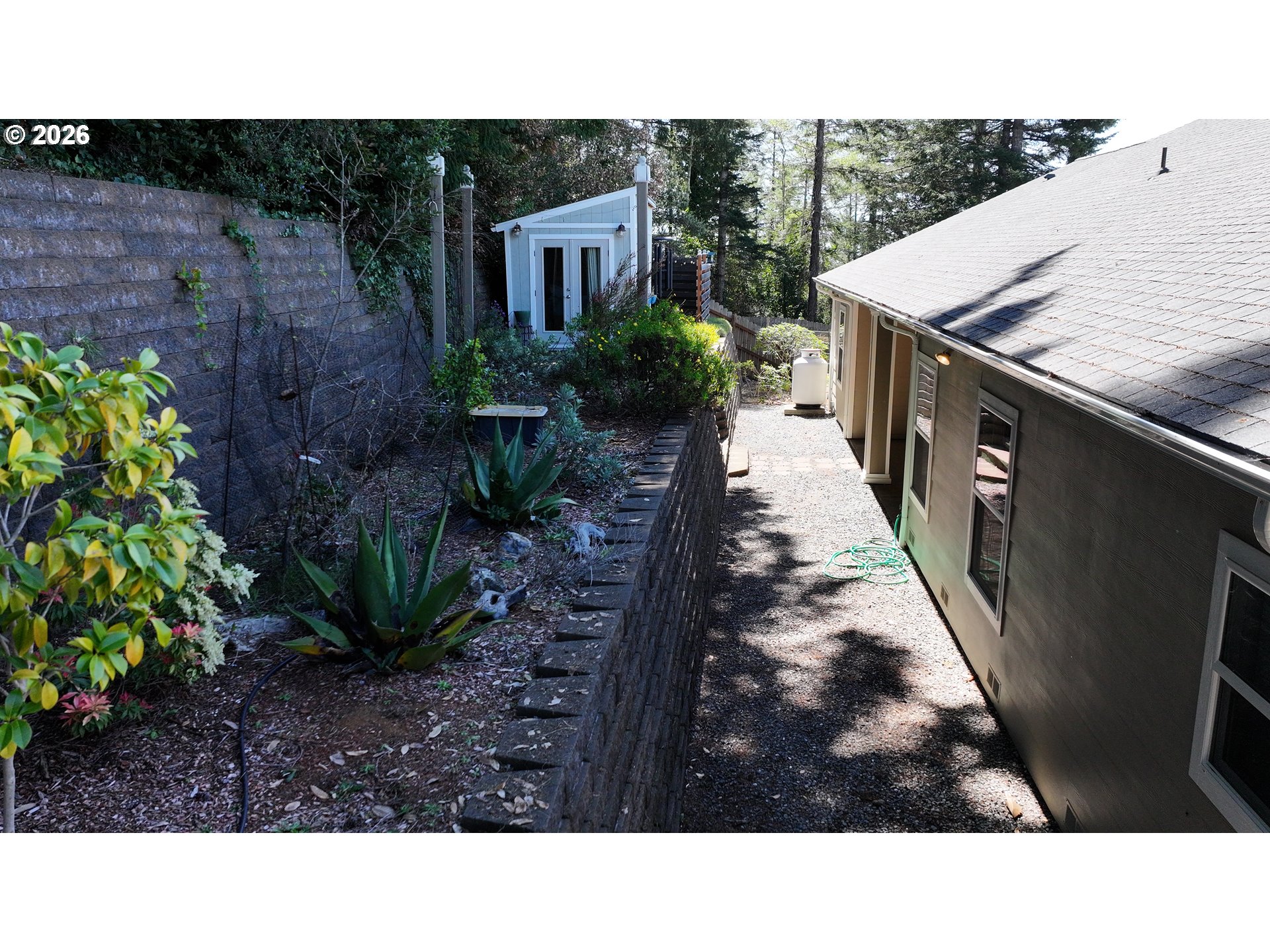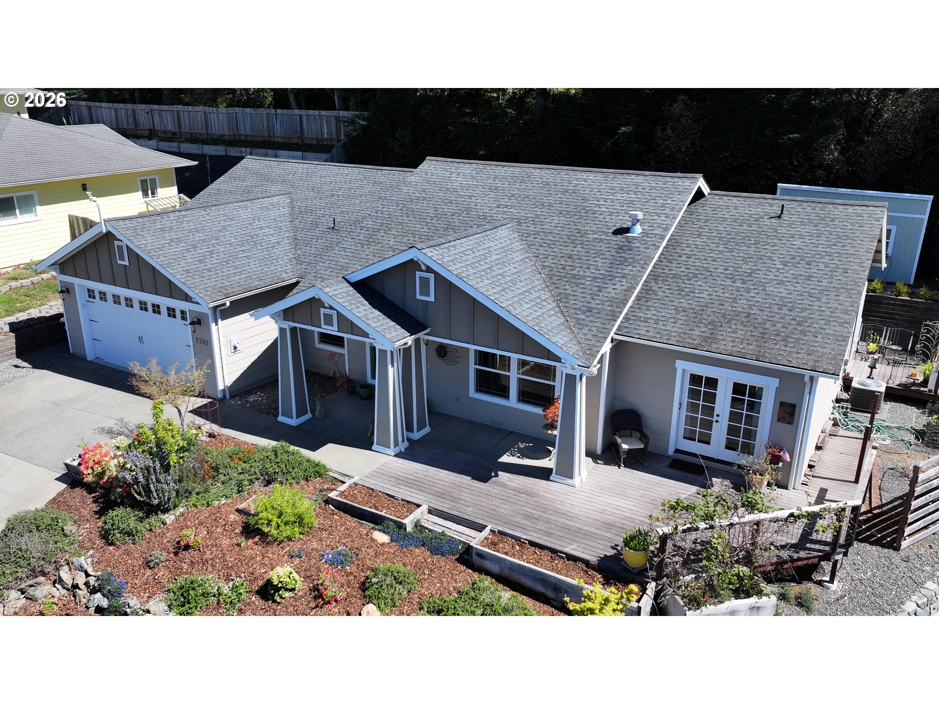 Built in 2015 with custom craftsmanship, this home offers 1,906 square feet of well-designed single-level living. On a spacious .23 acre lot. With a low-maintenance yard and an unbeatable location, this property delivers both comfort and convenience.Step inside to an open-concept layout featuring vaulted ceilings, a cozy fireplace, and quality flooring that flows seamlessly throughout the main living space. The kitchen is dialed in with granite countertops, stainless steel appliances, and rich custom wood cabinetry that gives it that elevated, timeless feel. Just off the dining area, you’ll find a covered patio, creating an easy indoor-outdoor flow for everyday living and entertaining.The split floor plan offers privacy where it matters. The primary suite is spacious and well-appointed, featuring two generous walk-in closets and a spa-style bathroom complete with a soaking tub, walk-in shower, a vanity, and dual sinks. On the opposite side of the home, the guest bedrooms offer flexibility and comfort. One room is currently used as a family room, featuring French doors and upgraded with cabinetry and a sink in place of the closet. This space can easily be converted back to a traditional bedroom if preferred. Another bedroom features sliding doors that open to a private deck surrounded by beautiful landscaping, creating a peaceful outdoor retreat.Out back, you’ll find a private setting with easy-care landscaping and a covered patio, perfect for relaxing or entertaining year-round. There is also a versatile shed that the seller has previously used as an additional bedroom, ideal for hobbies, a studio, or extra storage.Located just minutes from Harris Beach State Park, downtown Brookings, shopping, and local dining, this home puts you right where you want to be. NO HOA!Ask to see the 3D tour and experience the layout for yourself.