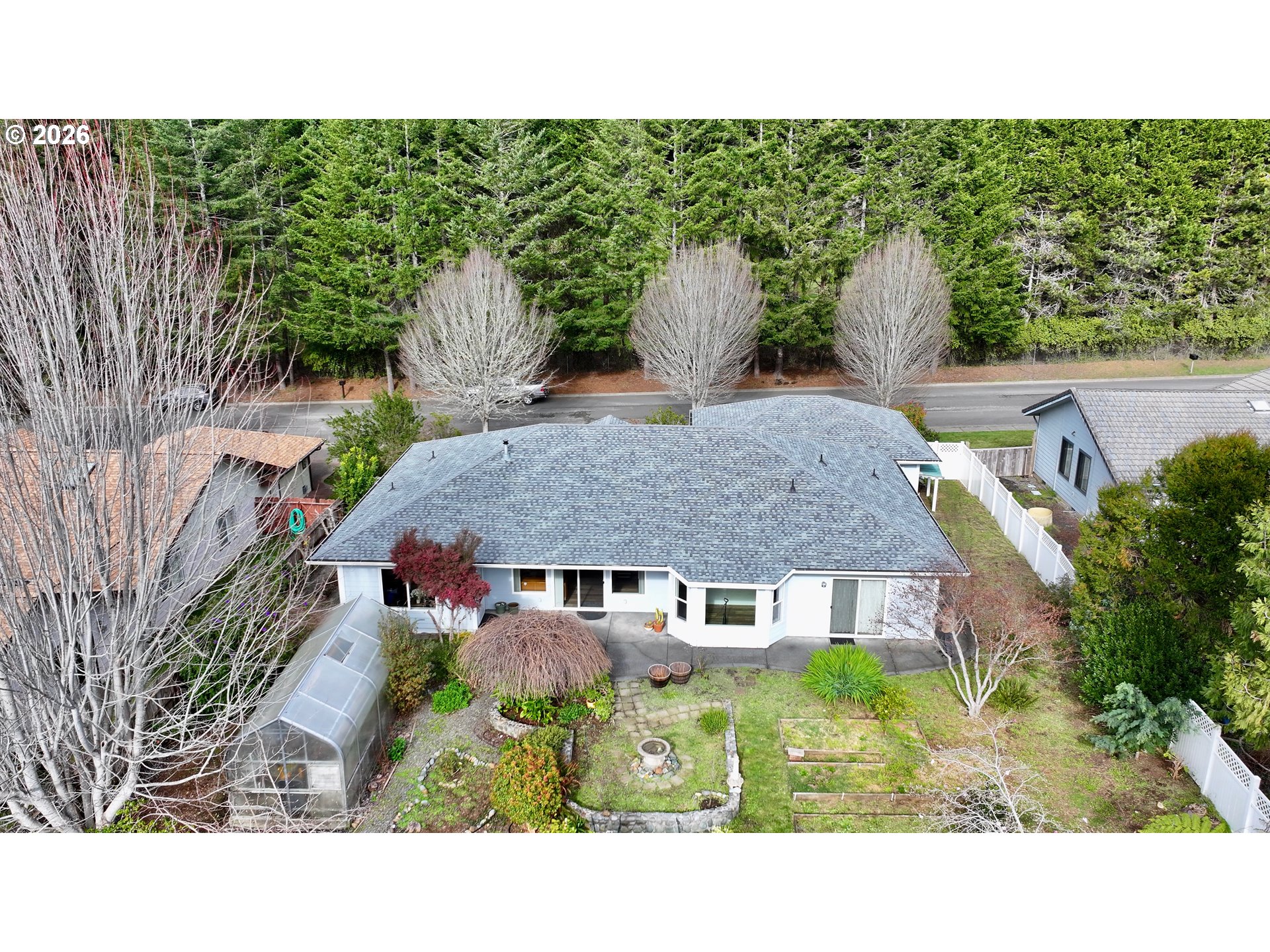 New architectural tile roof installed in March 2022. Rare 4-bedroom, 2-bath single-level home offering 2,310 square feet of well-designed living space with zero stairs and accessible hallways throughout. Not one step to enter the home. Features include a formal dining room, 9-foot ceilings, an open-concept layout with a desirable split floor plan, and elegant arched doorways. Rare oversized three-car garage!The bright, open-concept, well-situated kitchen includes an additional dining area overlooking the expansive garden, ideal for everyday living and entertaining. New luxury flooring flows through the main living areas. The spacious primary suite features a sliding glass door, a spacious walk-in closet, and a private bath with soaking tub, dual sinks, and a walk-in shower.One of the guest bedrooms offers direct access to the private backyard, and with four bedrooms total, there is plenty of space to spread out. The living room features a new pellet stove, adding warmth and character.Enjoy two nice covered porches. Situated on a .27 acre parcel with beautiful landscaping and a functional greenhouse. Three-car garage. Located in a nice, well-kept neighborhood. Just minutes from schools, shopping, entertainment, and local beaches. Do not miss this one! Ask to see the 3D tour.