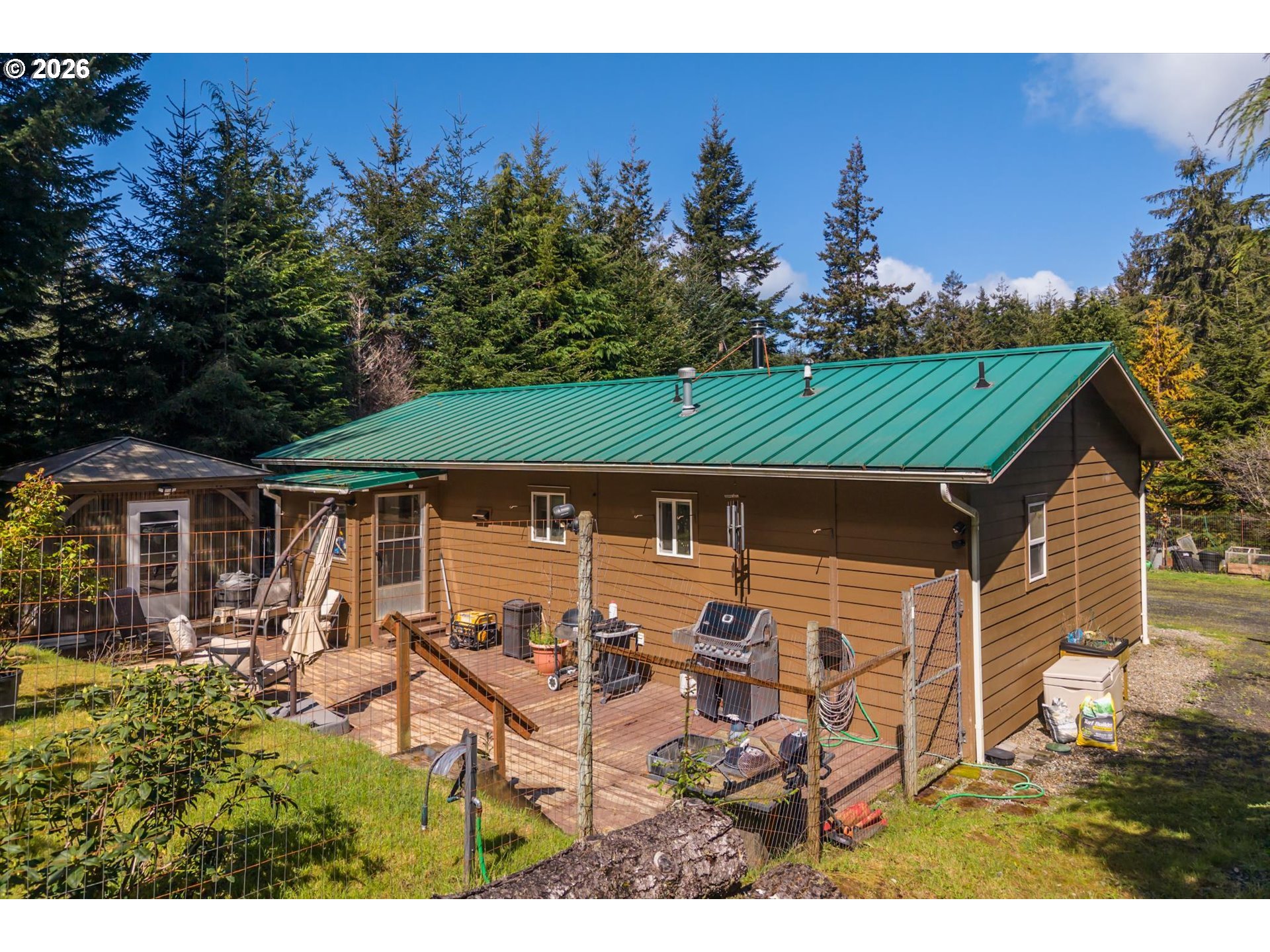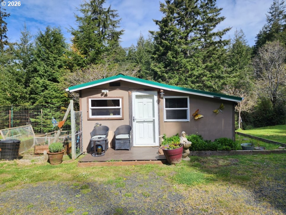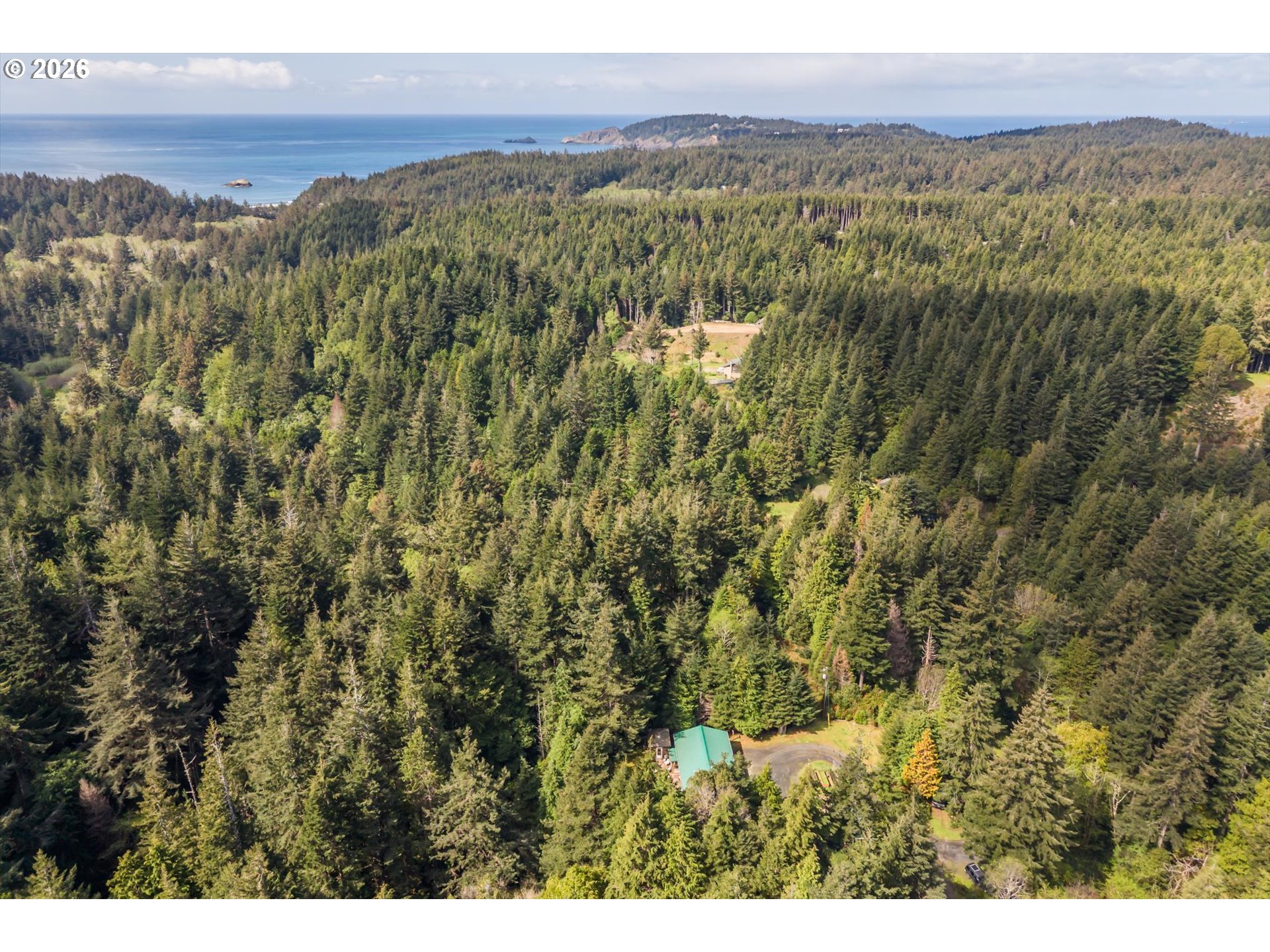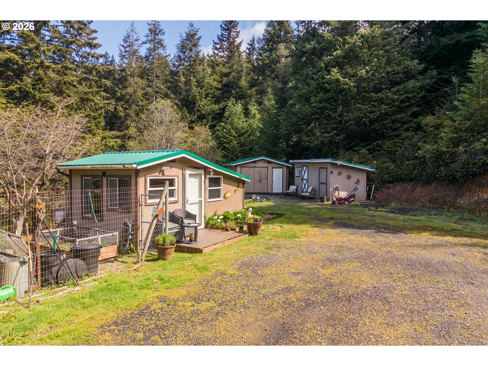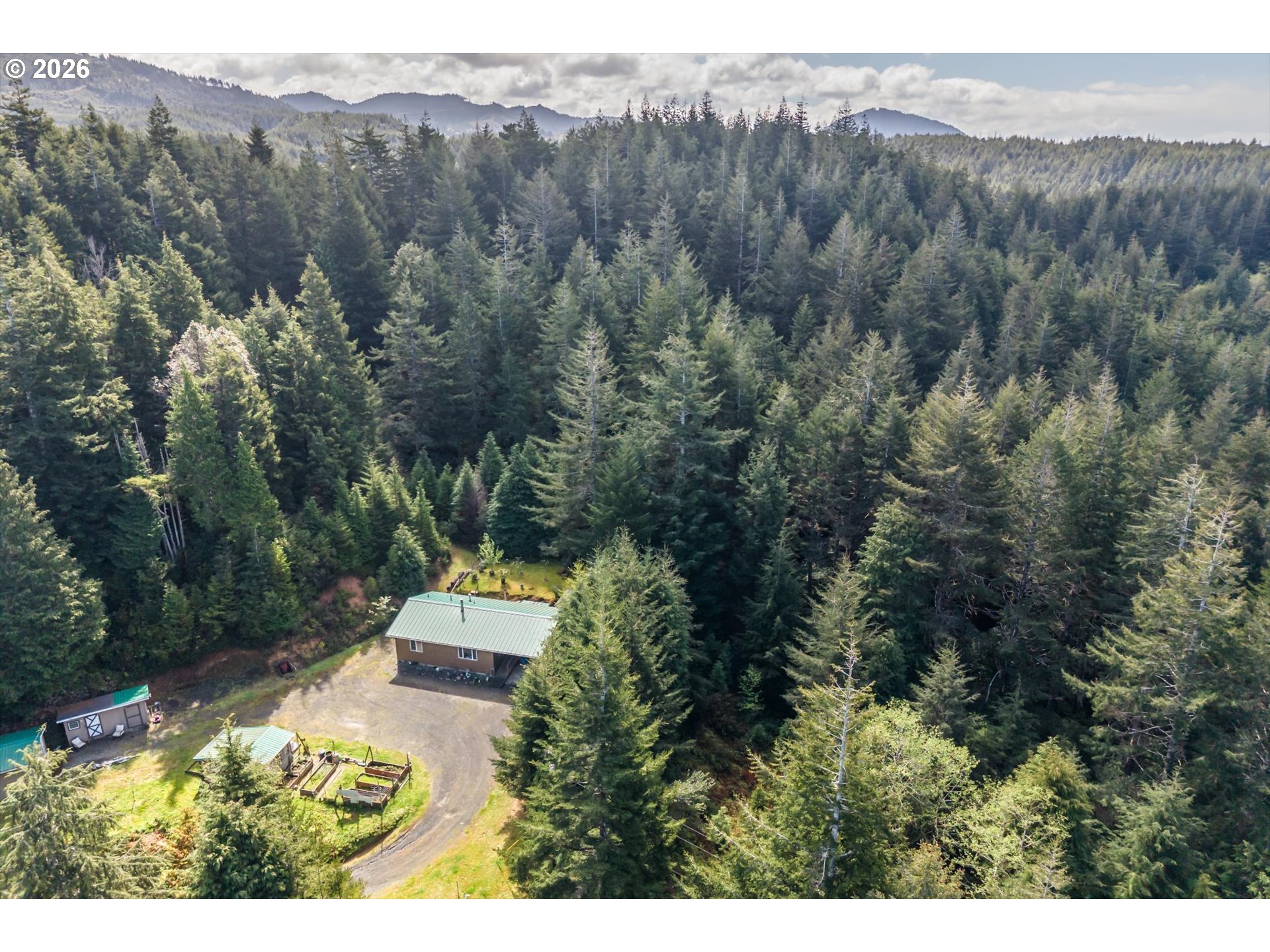 Perched at the top of a Scenic hill and surrounded by Serene forest with prime timber, this custom-built Coastal retreat offers unmatched privacy and tranquility on over 11 acres. Two tax lots with ability to build additional home. A gated driveway leads you to this peaceful sanctuary, where nature and comfort blend seamlessly. The home features granite countertops, a gas range, and a certified wood stove, creating a warm and inviting living space with ample closet storage throughout. Step outside to enjoy the expansive back patio—perfect for relaxing or entertaining in a quiet, natural setting. The property is thoughtfully equipped with a variety of functional and lifestyle amenities, including a private Studio, Workshop, Storage shed, and Wood shed. A charming enclosed Gazebo with a Hot Tub offers a perfect place to unwind, while the fenced garden with raised beds is ideal for those who enjoy growing their own food. Located just a short distance from Hubbards Creek, you’ll have easy access to surfing and beach adventures, making this an ideal Coastal getaway or full-time residence for those seeking privacy, space, and connection to the outdoors.