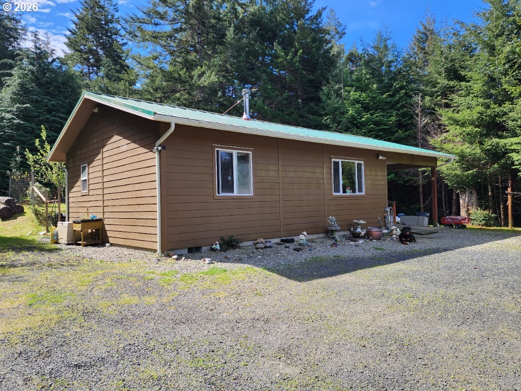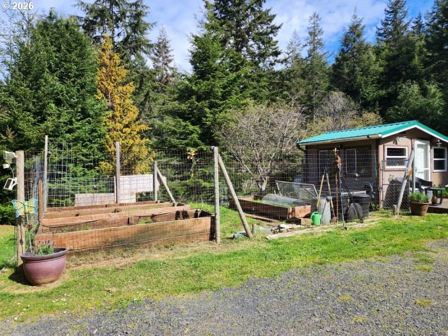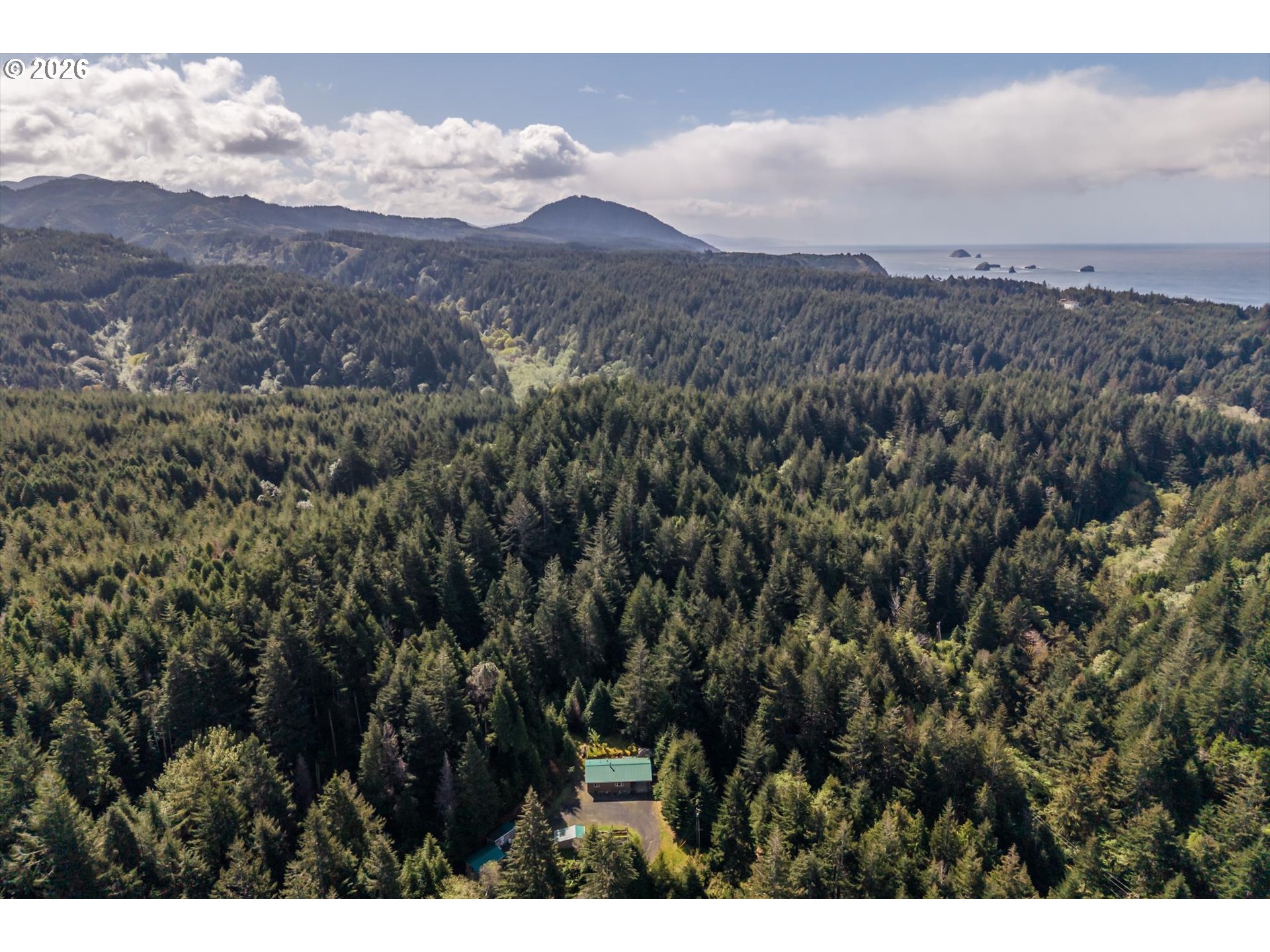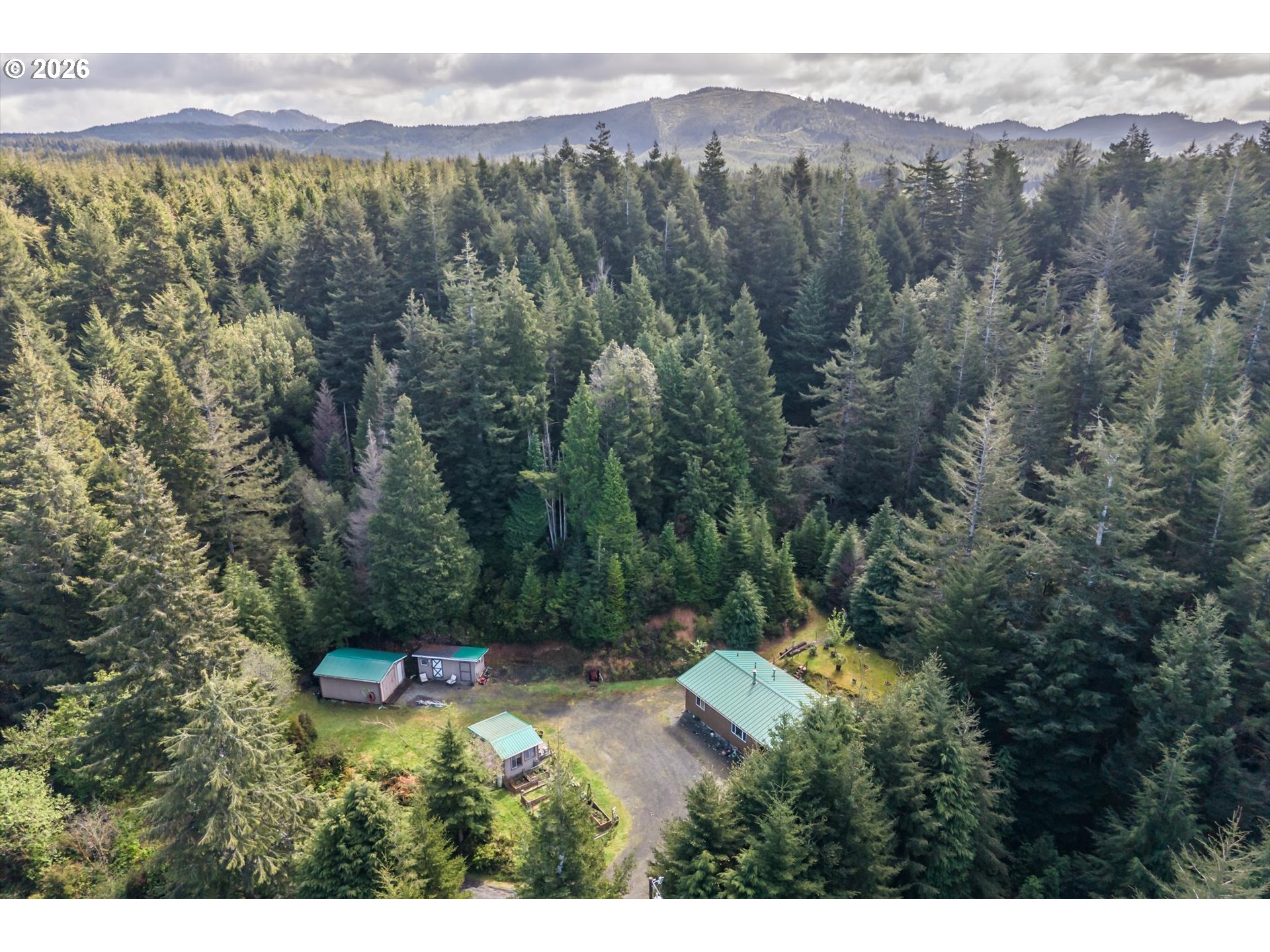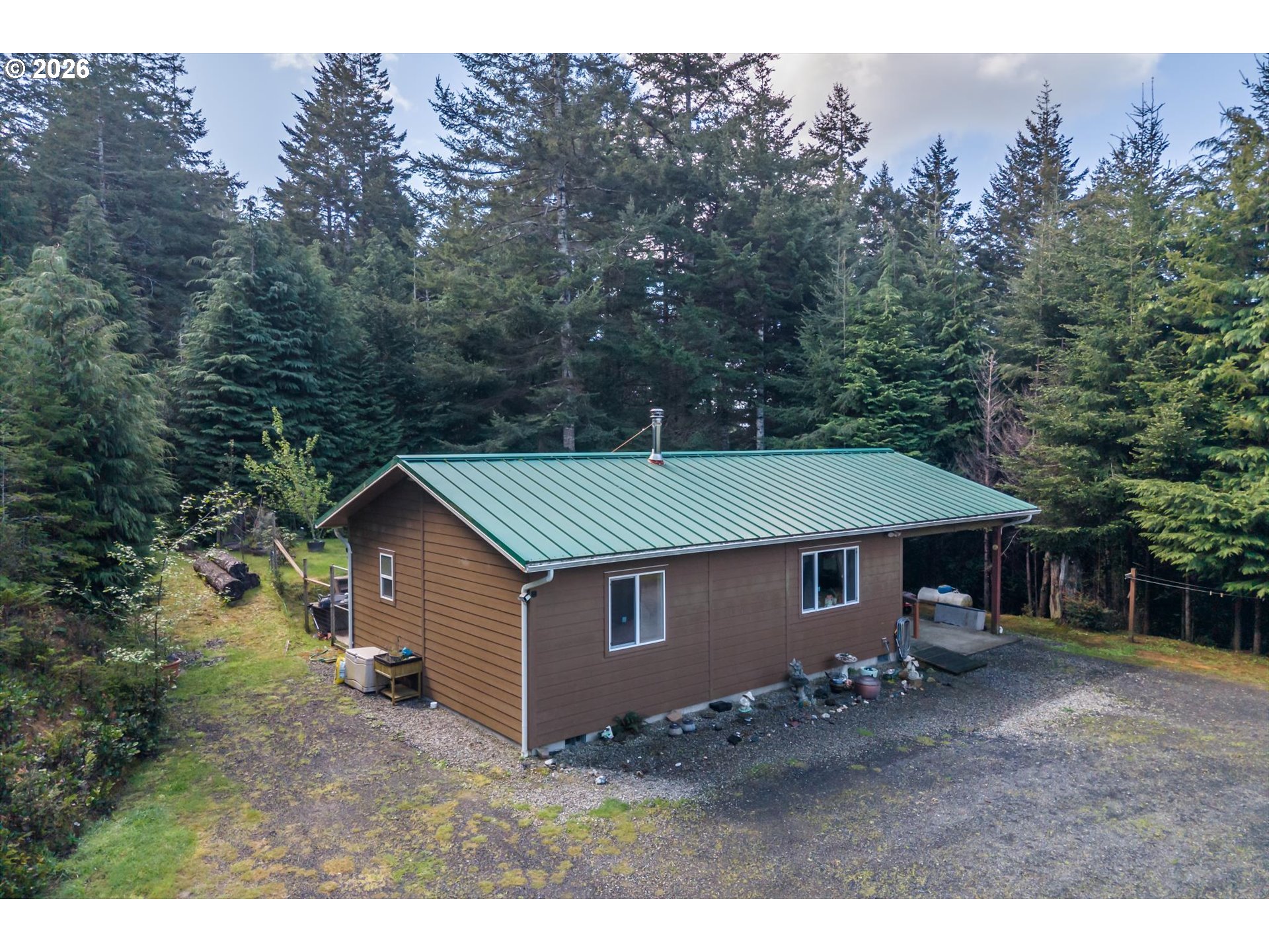Perched at the top of a Scenic hill and surrounded by Serene forest with prime timber, this custom-built Coastal retreat offers unmatched privacy and tranquility on over 11 acres. Two tax lots with ability to build additional home. A gated driveway leads you to this peaceful sanctuary, where nature and comfort blend seamlessly. The home features granite countertops, a gas range, and a certified wood stove, creating a warm and inviting living space with ample closet storage throughout. Step outside to enjoy the expansive back patio—perfect for relaxing or entertaining in a quiet, natural setting. The property is thoughtfully equipped with a variety of functional and lifestyle amenities, including a private Studio, Workshop, Storage shed, and Wood shed. A charming enclosed Gazebo with a Hot Tub offers a perfect place to unwind, while the fenced garden with raised beds is ideal for those who enjoy growing their own food. Located just a short distance from Hubbards Creek, you’ll have easy access to surfing and beach adventures, making this an ideal Coastal getaway or full-time residence for those seeking privacy, space, and connection to the outdoors.