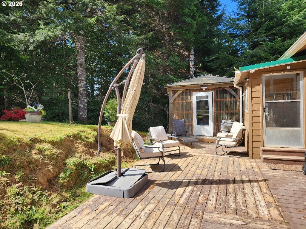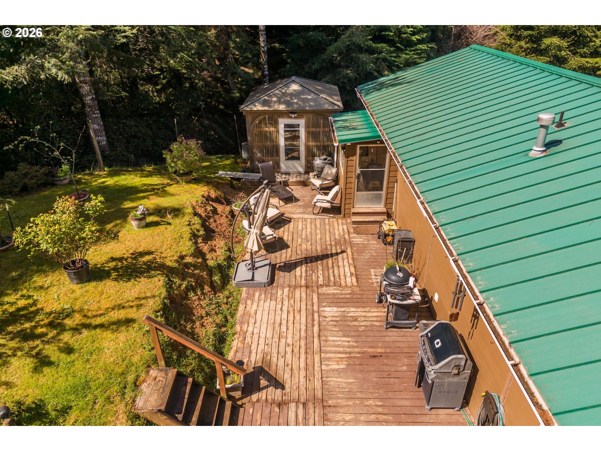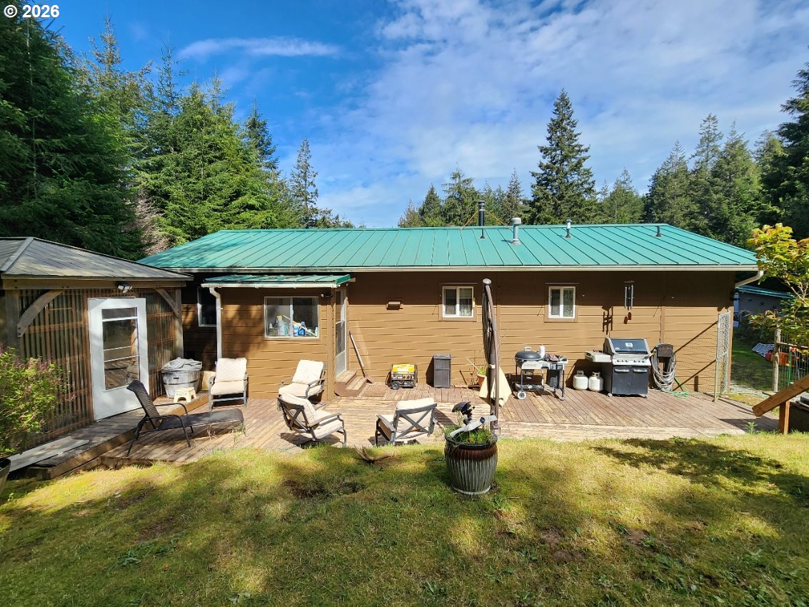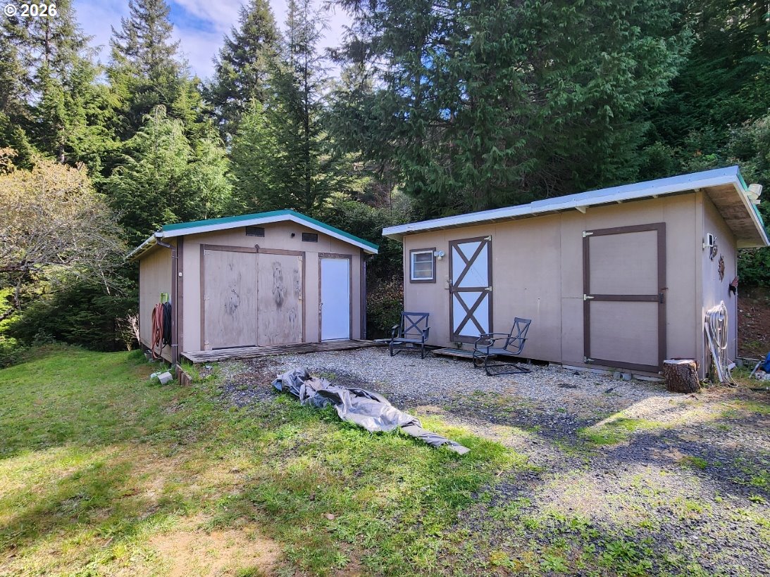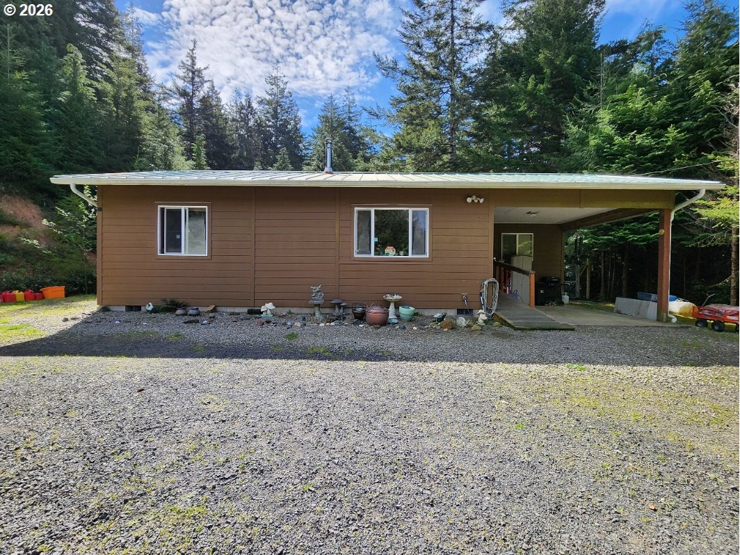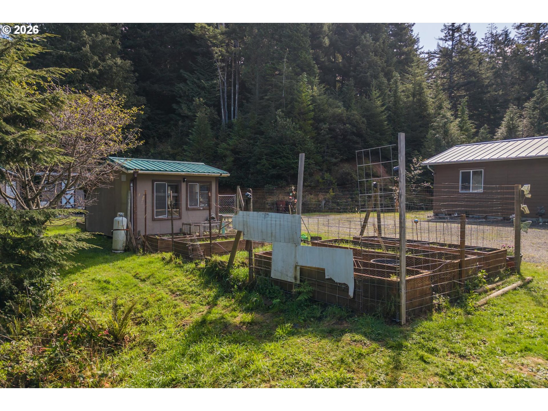 Perched at the top of a Scenic hill and surrounded by Serene forest with prime timber, this custom-built Coastal retreat offers unmatched privacy and tranquility on over 11 acres. Two tax lots with ability to build additional home. A gated driveway leads you to this peaceful sanctuary, where nature and comfort blend seamlessly. The home features granite countertops, a gas range, and a certified wood stove, creating a warm and inviting living space with ample closet storage throughout. Step outside to enjoy the expansive back patio—perfect for relaxing or entertaining in a quiet, natural setting. The property is thoughtfully equipped with a variety of functional and lifestyle amenities, including a private Studio, Workshop, Storage shed, and Wood shed. A charming enclosed Gazebo with a Hot Tub offers a perfect place to unwind, while the fenced garden with raised beds is ideal for those who enjoy growing their own food. Located just a short distance from Hubbards Creek, you’ll have easy access to surfing and beach adventures, making this an ideal Coastal getaway or full-time residence for those seeking privacy, space, and connection to the outdoors.