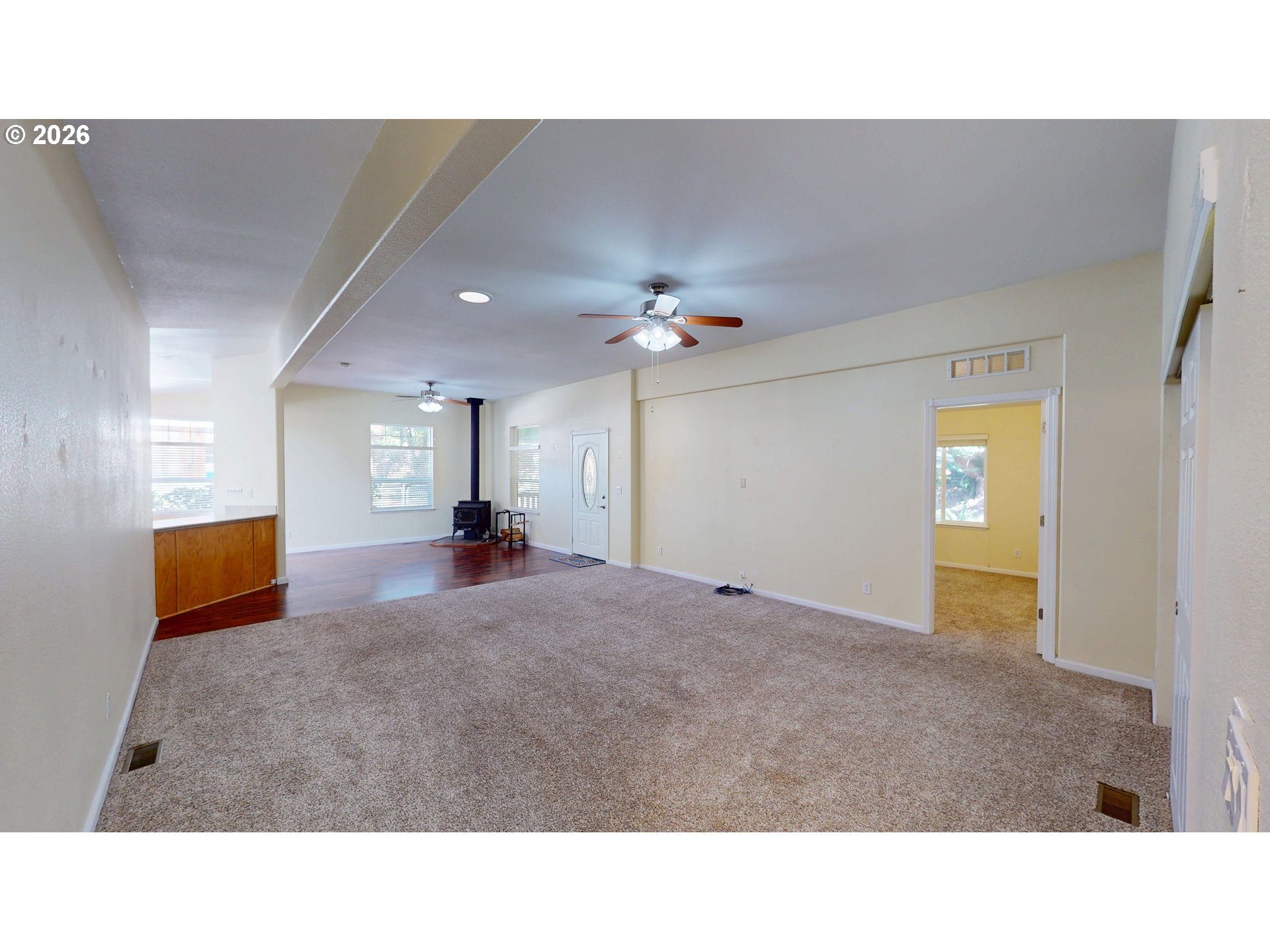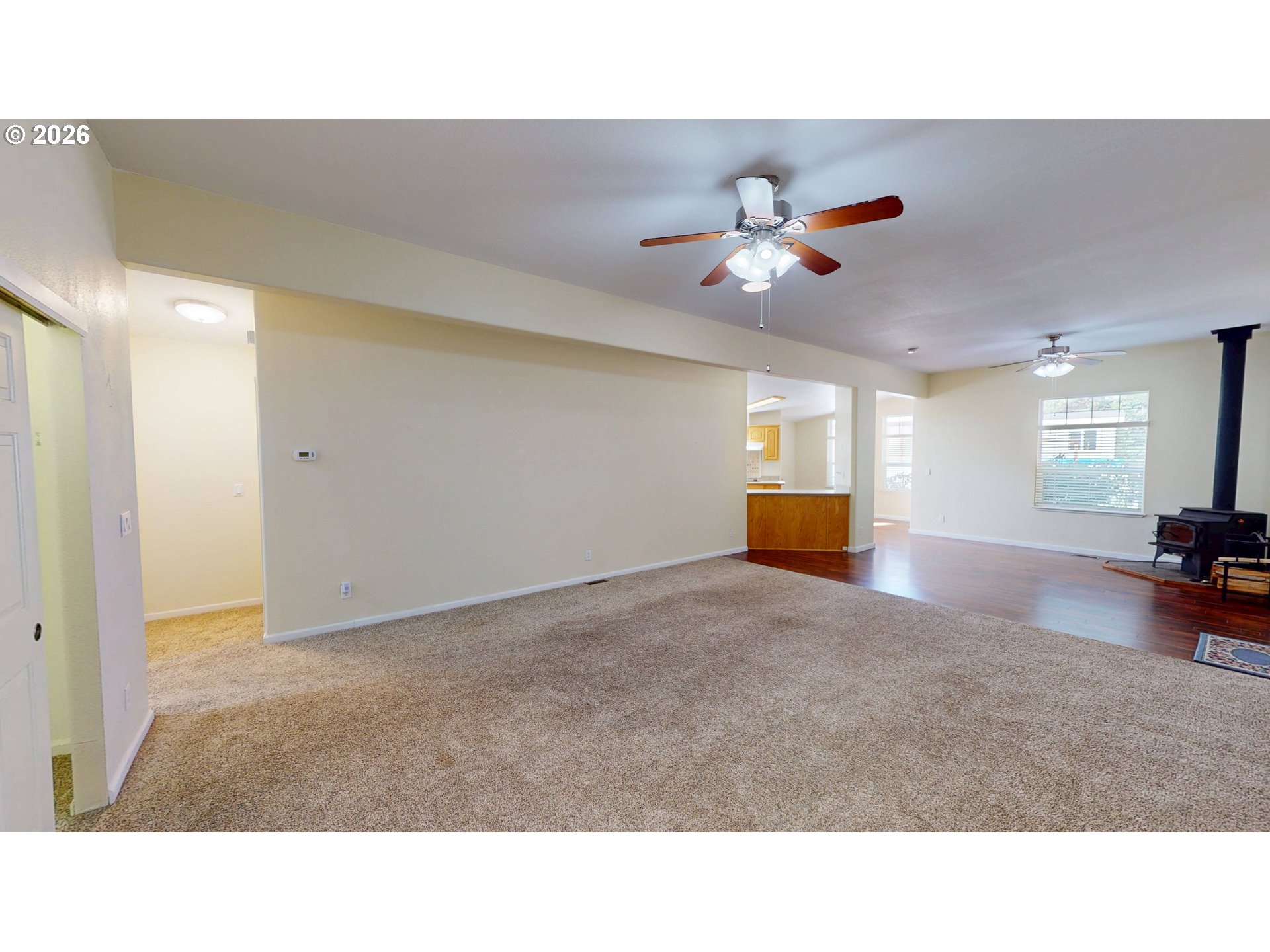 ROOM GALORE!! Discover comfortable living and abundant versatility with this TRIPLEWIDE home. Located in desirable Melody Lane Estates, this home is part of a friendly park with a quiet neighborhood environment. Enjoy the privacy of living across from an expansive forested area and having a fenced backyard / garden bordered by mature landscaping. Privacy extends to the sizable covered front porch accessed by a sidewalk with a built-in ramp. Two spacious primary bedrooms have roomy ensuites and extra-large closets. The larger primary boasts a double door and entry area while the second bedroom affords further privacy and convenience of an exterior door – perfect for company. Both ensuites have double sinks and additional natural light from solar tubes; one bathroom offers a walk-in shower while the other has a tub-shower combo. In the open kitchen you’ll find generous cabinet space, a pantry, and an eat bar as well as ample natural light. Enjoy morning coffee in the breakfast nook and meals around the table in the adjacent dining area. An expansive living room can easily accommodate comfortable seating arrangements for entertaining, and a Lopi woodstove offers extra warmth on chilly evenings. Off the living room is a third room that can be used as an office, hobby room, or third bedroom since an extensive closet is just outside the door. Further adding to the home’s comfort and convenience are ceiling fans throughout and a half bath off the laundry room. The attached two-car garage has extra space for work areas, and additional storage is available in the 8x12 shed situated at the edge of the spacious asphalt parking area. Monthly lot rent is currently $479, and homeowners pay their own utilities. Buyer must be approved by the park. Don’t miss out of this rare opportunity to own a triplewide in an attractive park near world-class fishing and beautiful Southern Oregon beaches. Call today to schedule a tour!