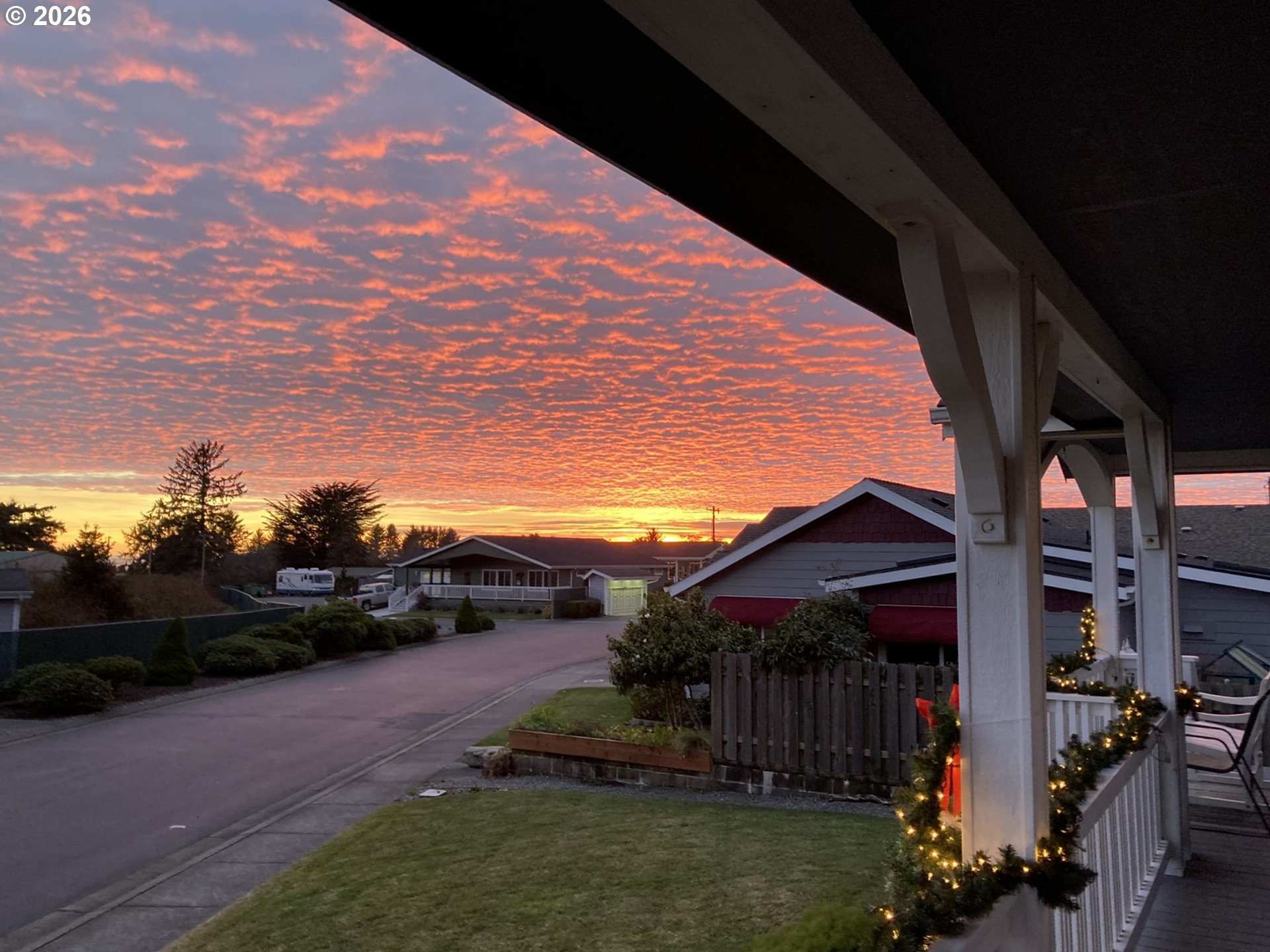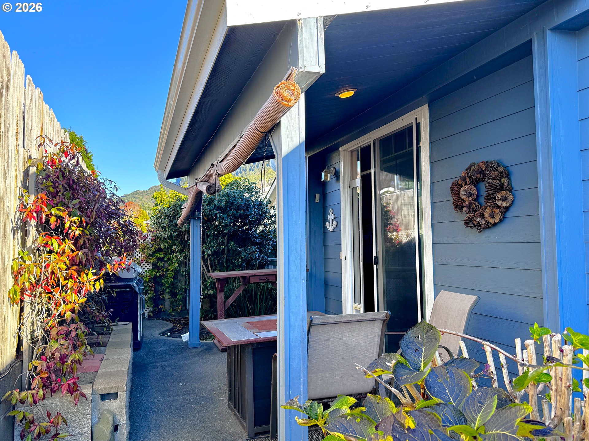 Wake Up to Sunrises, Wildlife, and Coastal Living! Lovely, well-maintained home on a spacious corner lot with unobstructed views of open fields and surrounding mountains, located within a secure gated 55+ community. Just two minutes from Sporthaven Beach and the port, this property offers easy access to local restaurants, shopping, and coastal activities while maintaining a peaceful private setting. The 1,797 sq ft manufactured home in the Emerald Coast Estates features 3 bedrooms and 2 bathrooms, including a large primary suite, and offers both a separate living room and a comfortable family room, providing flexible space for entertaining, relaxing, or hosting guests. The well-appointed kitchen includes granite countertops and stainless steel appliances, and an electric fireplace provides warmth and anbiance. A wraparound porch captures gorgeous morning sunrises and sweeping views, perfect for relaxing and enjoying the coastal atmosphere. The front yard is maintained by the park, and the backyard is designed for easy care. Pets are welcome, and a 2-car garage adds valuable storage and convenience. Community amenities include a large indoor pool, clubhouse with library and kitchen, and an outdoor garden area where residents can plant flowers or vegetables. Park services include front yard and common area maintenance, clubhouse facilities, and road upkeep. The nearby port offers a truly special lifestyle—waterfront dining, fishing, fresh crab off the dock, scenic beach walks, vessel watching, and abundant wildlife, including pelicans, otters, sea lions, eagles, osprey, and even occasional killer whale sightings. Enjoy coastal living, stunning views, and a quiet, friendly community—all just minutes from the beach.