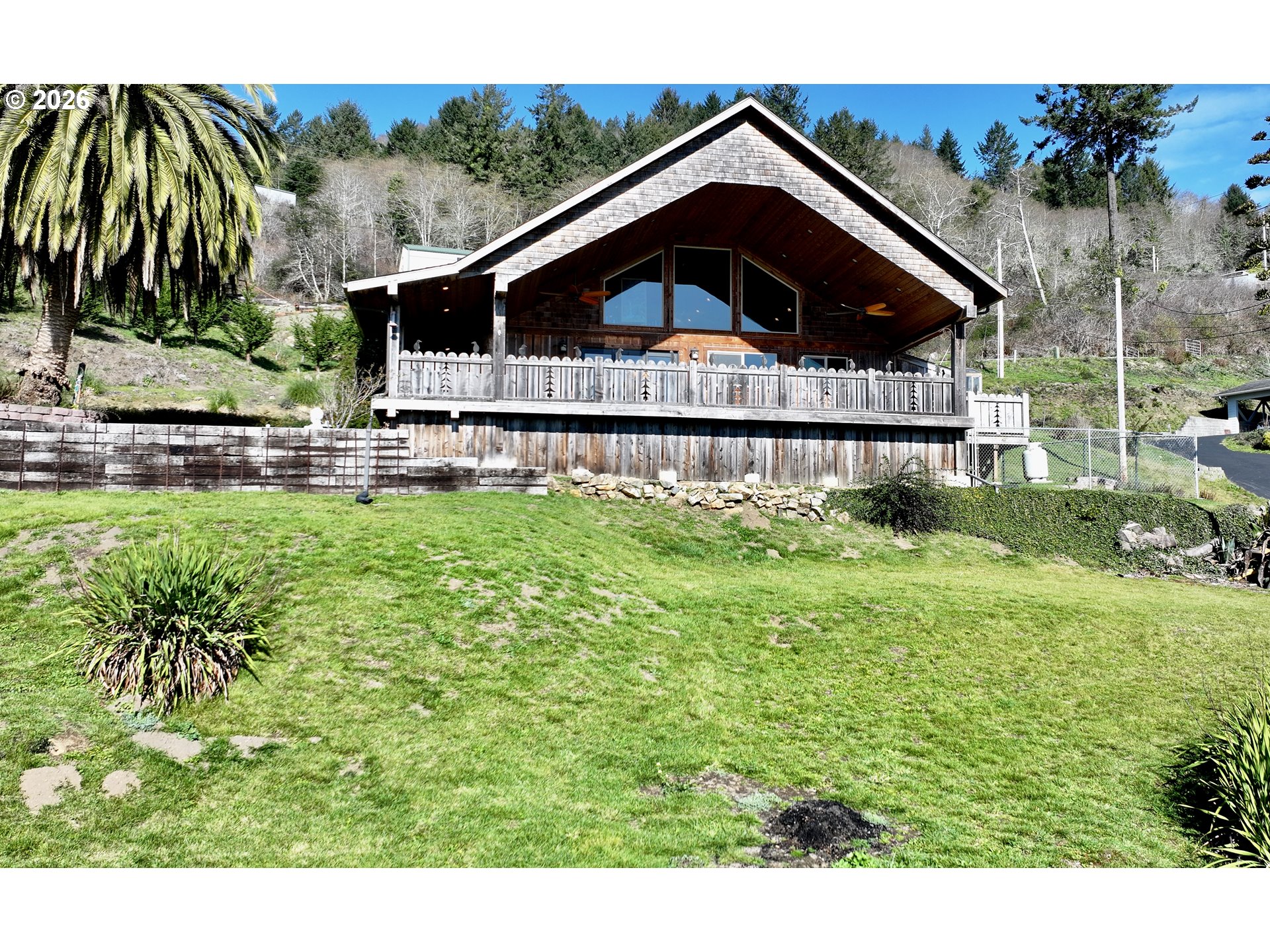 Eclectic style meets original design in this coastal retreat that stands in a league of its own. Every inch of this home reflects true craftsmanship, rich character, and undeniable coastal charm. At 1,428 square feet, the footprint is modest, but the impact is bold.Built as a true labor of love by a carefully chosen local crew, the home showcases locally milled redwood, birch, alder, hickory, and fir. The result is a timeless finish that feels grounded, warm, and authentic. The attention to detail is impossible to miss. From the crows lined up along the deck rail to the carved crows tucked into the corner near the deck, there is personality and intention in every corner.The crow is known as a symbol of intelligence, protection, and transformation. It represents watchfulness and wisdom, a fitting emblem for a home designed with purpose and built to stand strong along the coast.The main living space captures beautiful ocean views and opens seamlessly to the expansive 876 square foot covered deck. Vaulted wood ceilings rise above, adding volume and warmth. The kitchen is a true focal point. Countertops crafted from rare redwood burl create a one of a kind surface rich in texture and depth. A copper sink adds warmth and character, paired beautifully with quality stainless steel appliances. Solid birch cabinetry offers both beauty and function, along with a generous pantry and plenty of space to cook, gather, and serve. Hickory flooring runs throughout the home, bringing warmth and richness to every room. A stunning spiral staircase with solid wood treads leads to the loft. It works beautifully as a third bedroom, or office. A 17x36 extra deep garage with shop space or tandem parking depending on vehicle size. The 50 year composition roof is rated for 130 mile per hour winds, RV pad with hook-ups. This is not a cookie cutter home. It is thoughtful. It is intentional. It is built to last. Coastal living with soul, substance and privacy. Ask to see the 3D Tour.