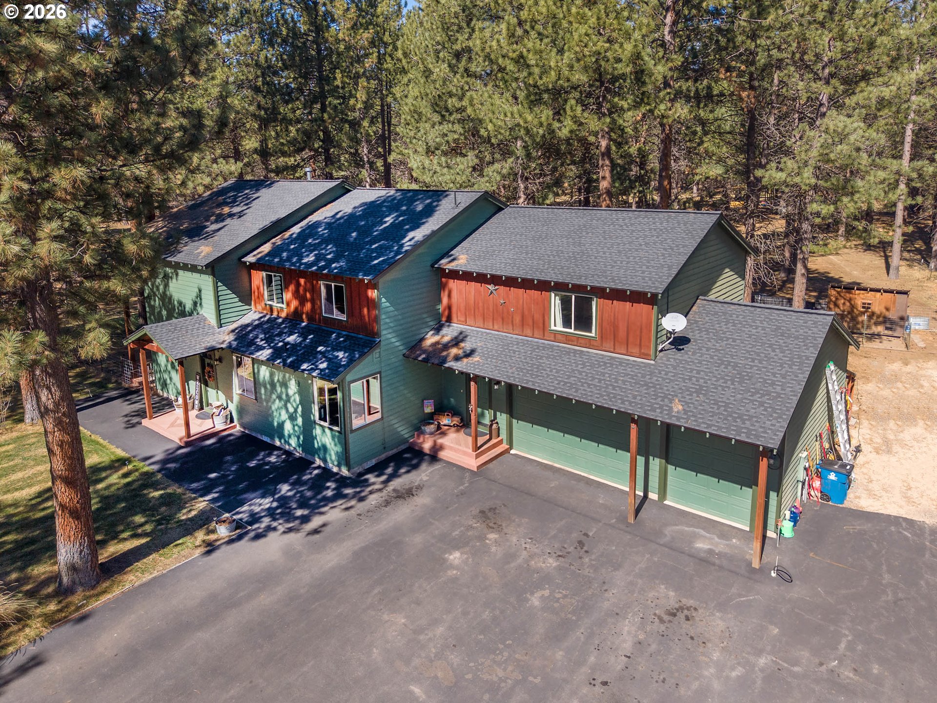 Experience life on five private, treed acres. This custom four-bedroom residence features 26-foot ceilings, exposed beams, and a stacked stone gas fireplace. Bordering BLM land, the property provides a direct gateway for trail discovery and horseback riding from your back door along w/RV parking, electric &dump. The main level offers two suites: a primary retreat with a private fireplace, walkin closet and jetted tub, with a 2nd ensuite on the main level and a 3rd ensuite upstairs. Bonus Rm could be a 5th bedroom. The kitchen is a high-performance hub with granite coutertops, gas cooktop, double ovens, and a walk-in pantry. The outdoor space includes a covered patio plumbed for a gas BBQ and firepit. Practical assets include a 2021 roof, a triple garage, 2 16x24 covered structures with a 30-amp plug and dump station. 1 domestic well for the home and 1 for irrigation for four acres, supporting a lifestyle of adventure. Call your agent today for your private showing!
