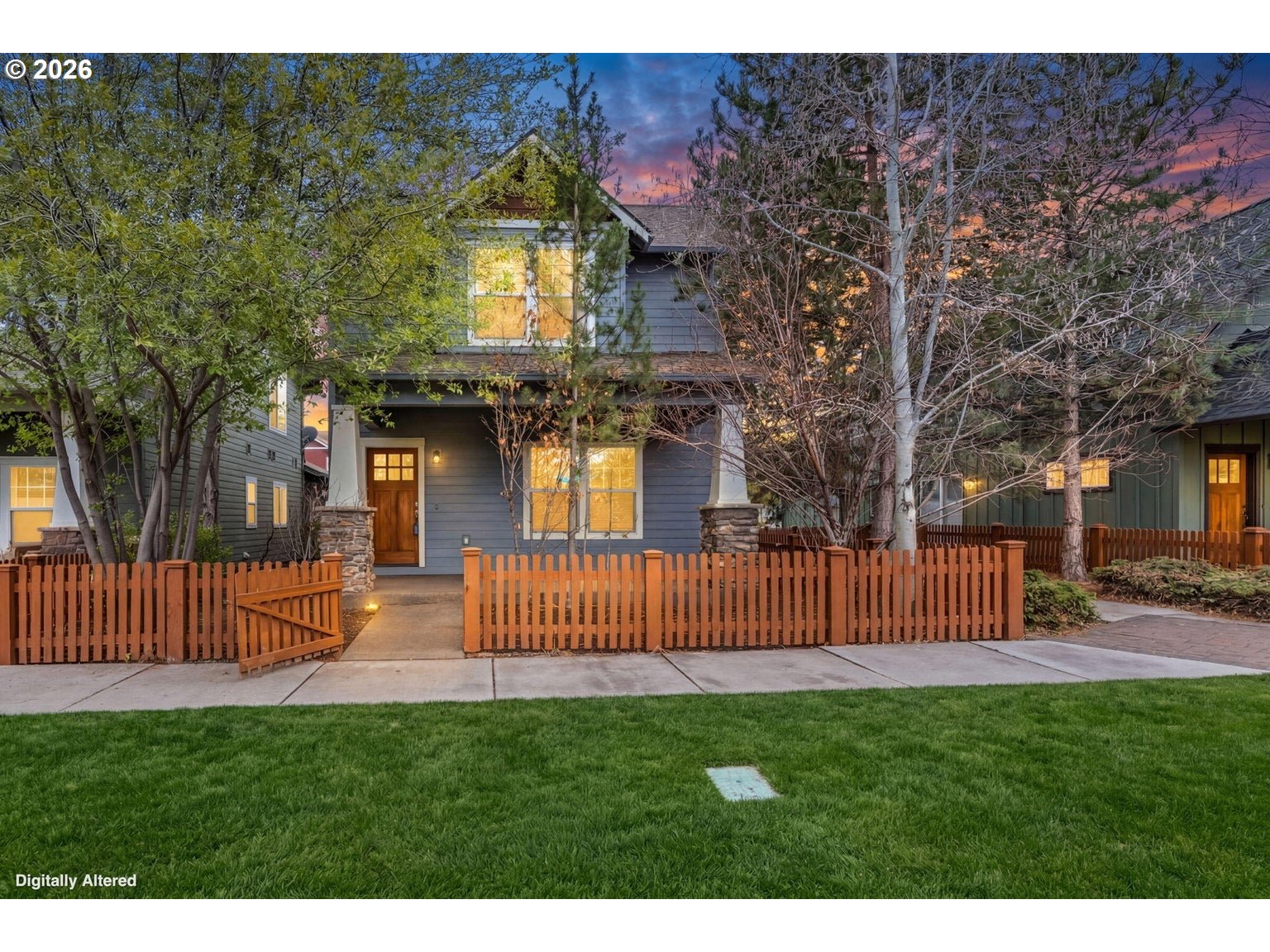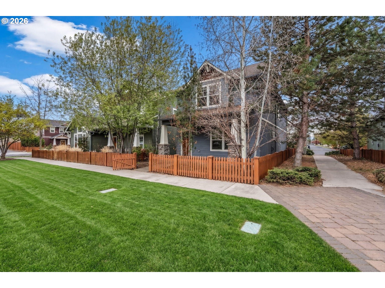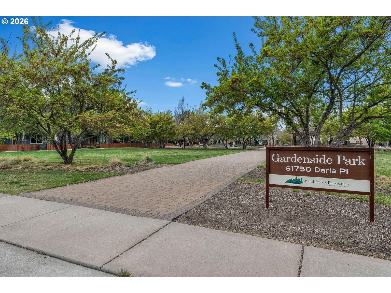 Nestled on a desirable corner lot in SE Bend's charming Gardenside subdivision, this 3 bed, 2.5 bath home offers comfort, room, & an unbeatable location. The large covered front porch leads into the tiled entryway & open main living area w/cozy gas burning fp w/built-ins above. Kitchen ftrs center island + eating area w/sliding doors to side patio w/stepping stones leading back around to the front -- perfect for entertaining. Upstairs boasts large loft area/flex space ideal for office or play. The well appointed primary bdrm ftrs soaking tub & step-in shower + dual vanities. Two addtl bdrms share full bath w/bath+shower combo. Rear alley access dbl car garage, fully fenced, low maintenance landscaping, & sprinklers. Easy access to Gardenside Park w/picnic shelter, playground & restrooms. Steps to East Bend Canal Trail & mins to Larkspur Community Ctr w/pool & fitness. Close to schools, shopping, medical services & more. SE Bend living at its best - Don't miss this one!