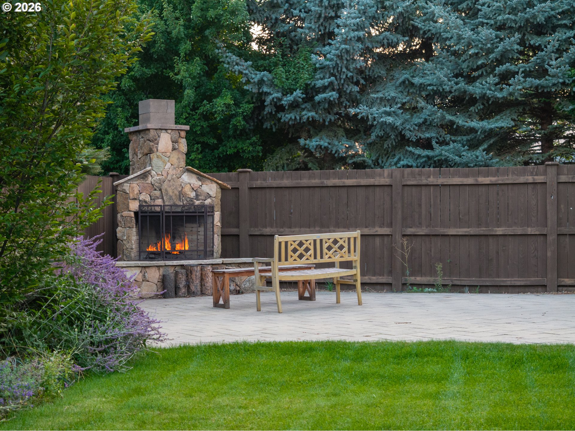 CoveredArena, Fenced, Garden, GasHookup, OutdoorFireplace, Patio, Porch, SecurityLights, Yard