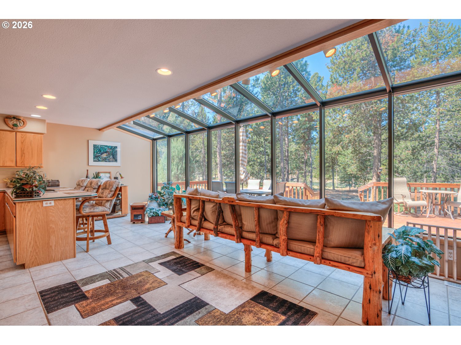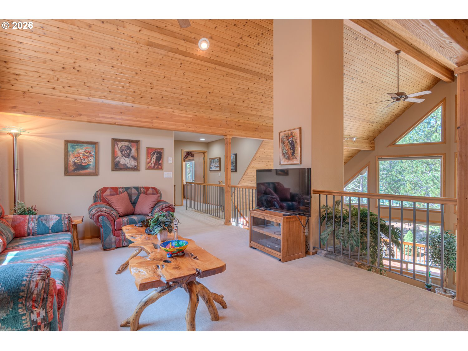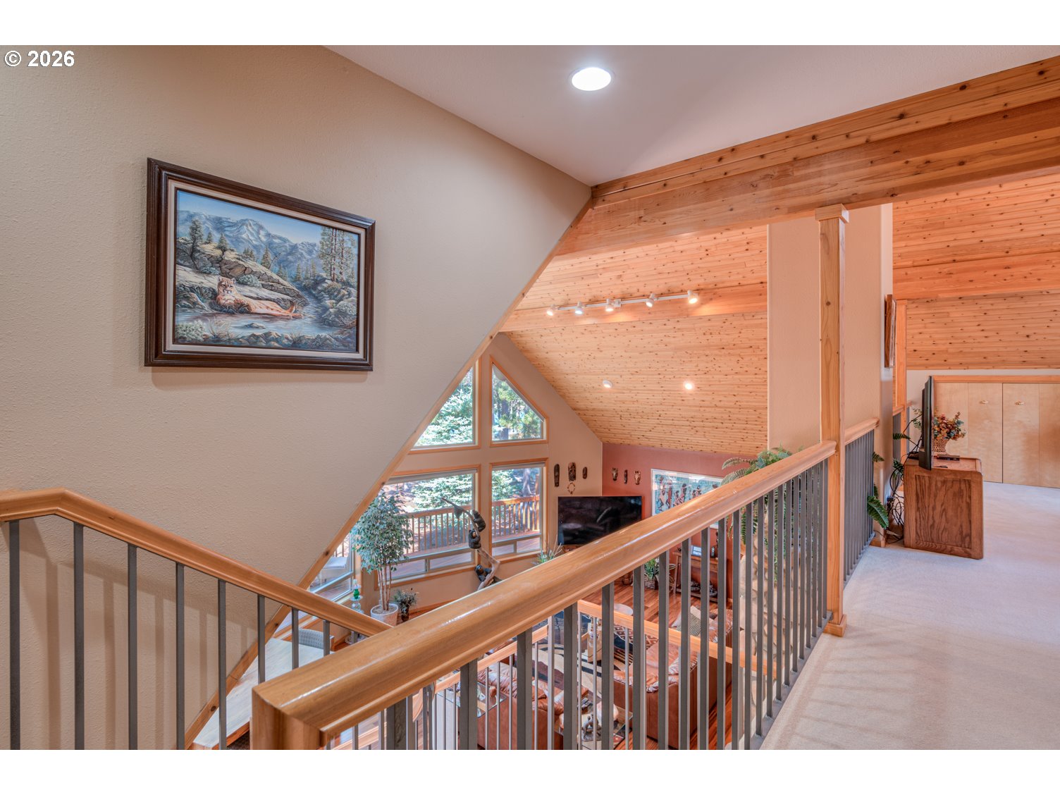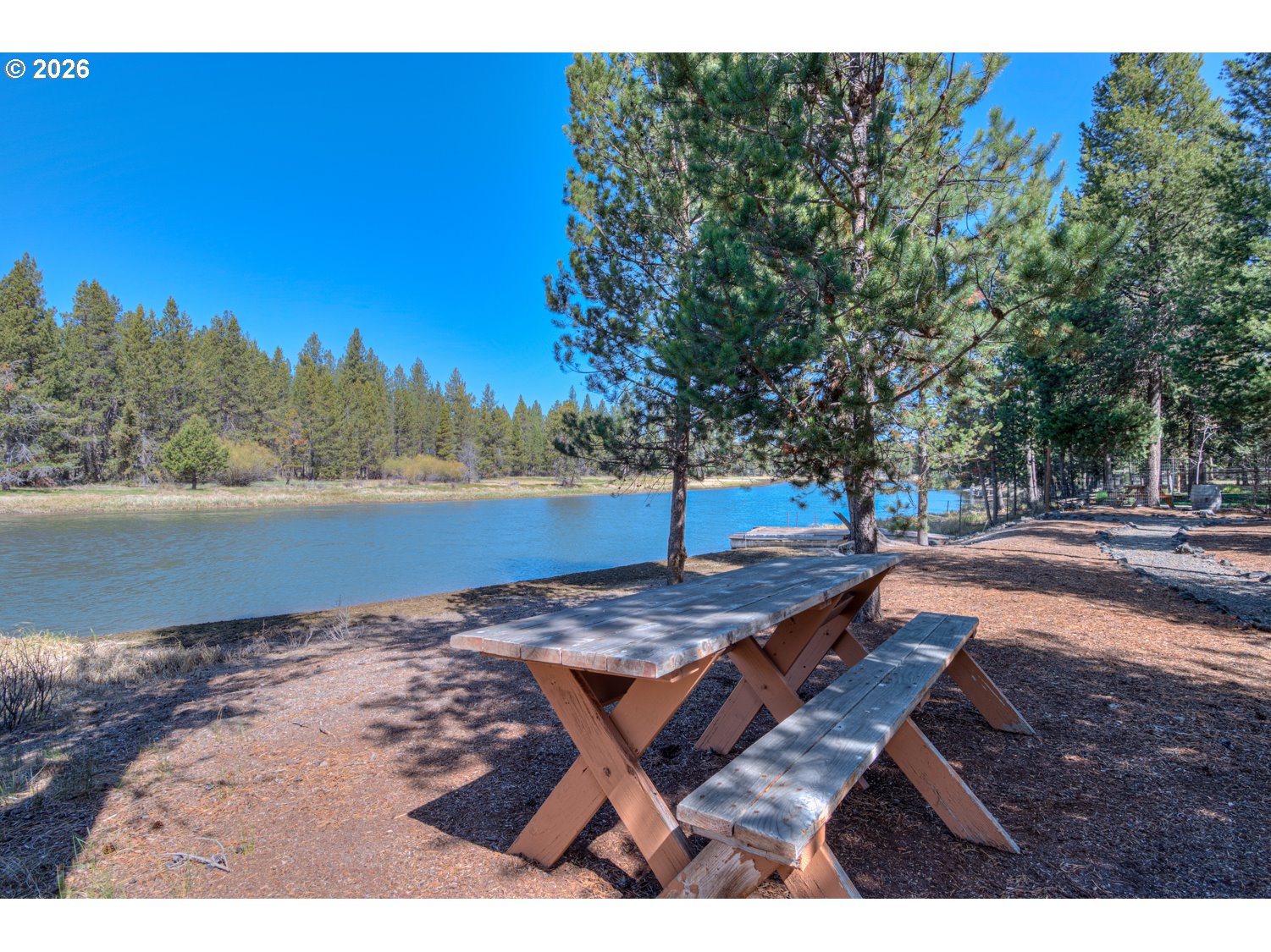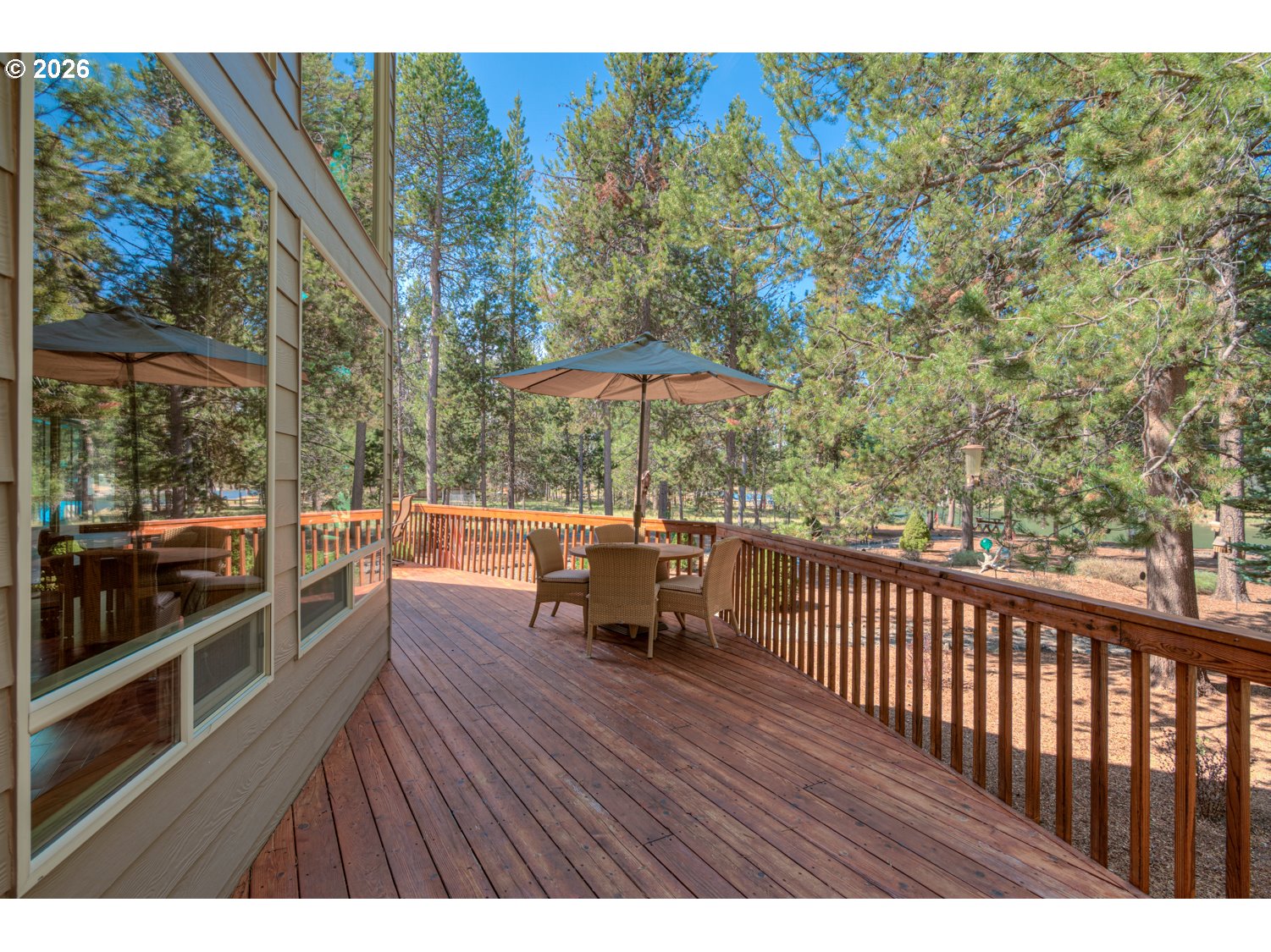 This stunning Big Deschutes riverfront home offers a seamless blend of warmth and architectural design, highlighted by a magnificent living room with Tiger Wood hardwood floors, two-story floor to ceiling windows looking out to the river, vaulted cedar ceilings, and river rock surrounding a high efficiency pellet stove. The thoughtful design ensures breathtaking, panoramic Deschutes views from the kitchen, dining area, living room, and the oversized private primary suite. This 3 bedroom, 2 bath home with over 2400 sq ft of living space offers newer stainless appliances, solid surface countertops with a large glass enclosed dining area to observe the amazing river views. Outside, the hot tub and large wrap around cedar deck provides the ultimate vantage point for the river, overlooking a large, beautifully landscaped yard that leads directly to the water's edge and private floating dock. Completing this exceptional property is an oversized three-car garage.