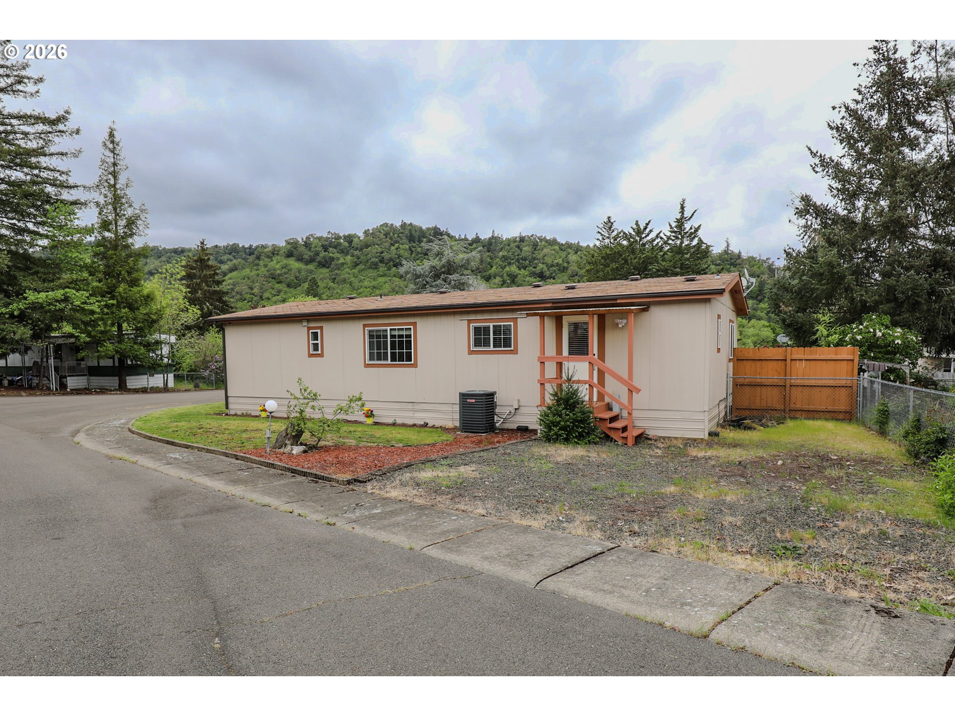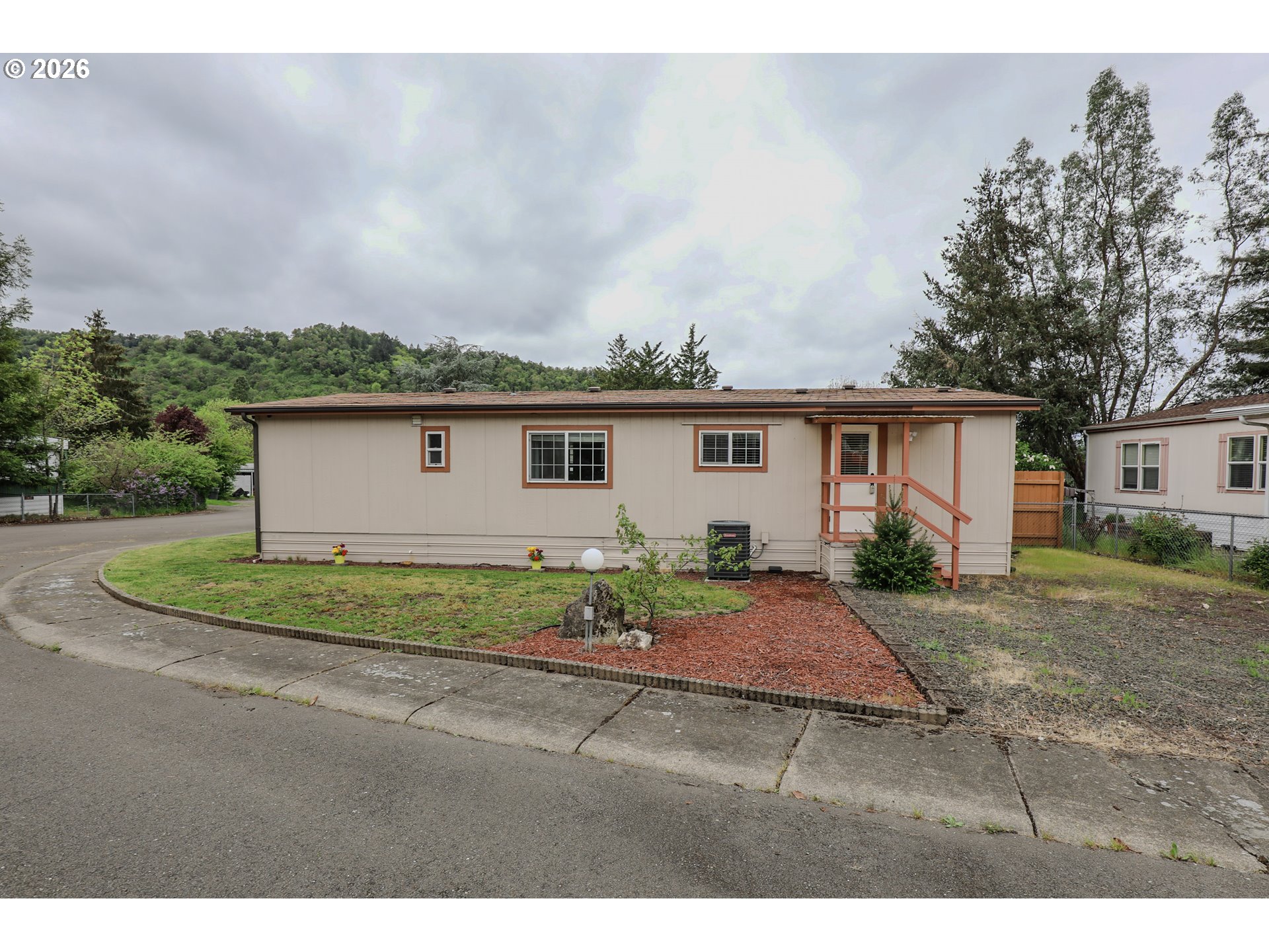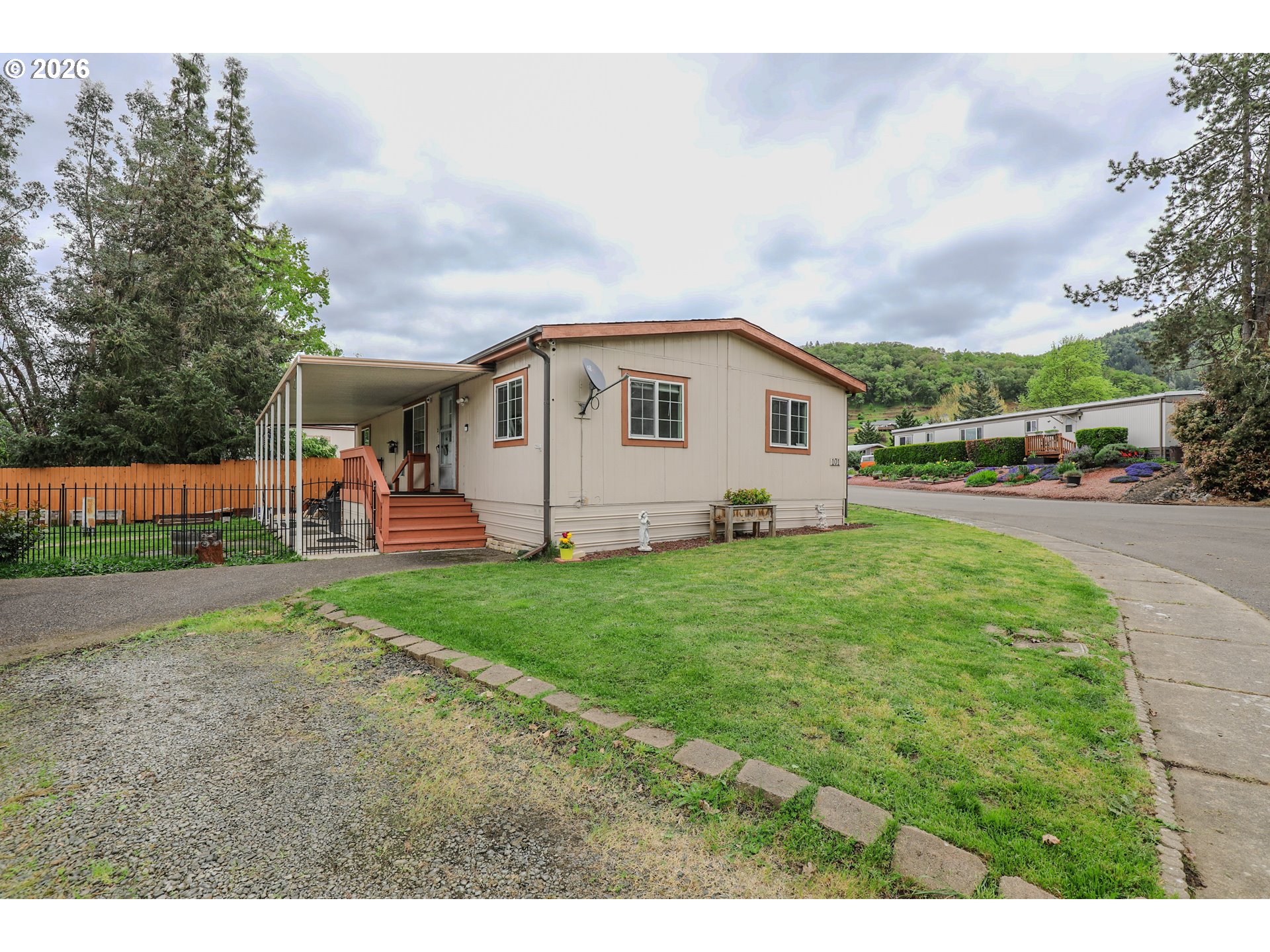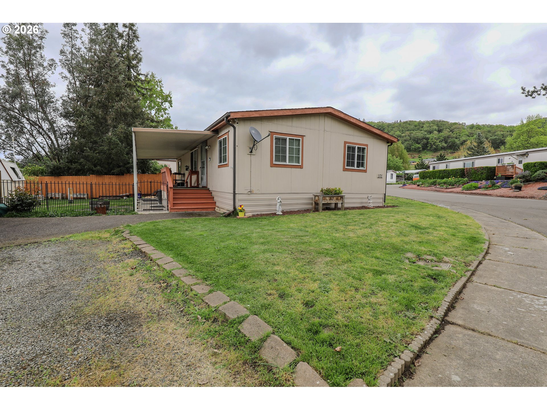 Welcome to 101 Molalla Ct. in Roseburg, located in the desirable Saddle Butte Mobile Manor community! This beautifully updated 3-bedroom, 2-bath home offers 1,152 sq ft of comfortable living with modern finishes throughout.Step inside to find stylish luxury vinyl flooring and a bright, inviting layout. The kitchen is a standout feature with gorgeous countertops, a tile backsplash, rich hickory cabinets, and stainless steel appliances—perfect for both everyday living and entertaining. The spacious living area is enhanced by an electric fireplace, creating a warm and cozy atmosphere.The primary suite offers a relaxing retreat with a soaking tub, while the additional bedrooms provide flexibility for guests, an office, or hobbies. You’ll also appreciate the laundry room with ample storage and the convenience of newer vinyl windows and an updated HVAC system for year-round comfort.Outside, enjoy a fully fenced yard with raised garden beds, a covered patio ideal for outdoor gatherings, and a corner lot that adds extra space and privacy. A storage shed with power provides great functionality for projects or additional storage needs.This well-maintained home combines comfort, style, and practicality—don’t miss your opportunity to make it yours!