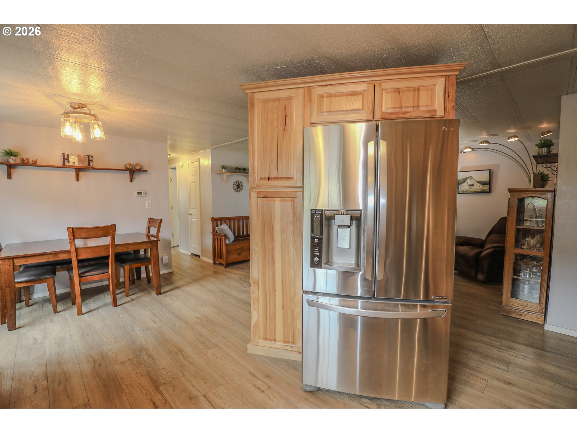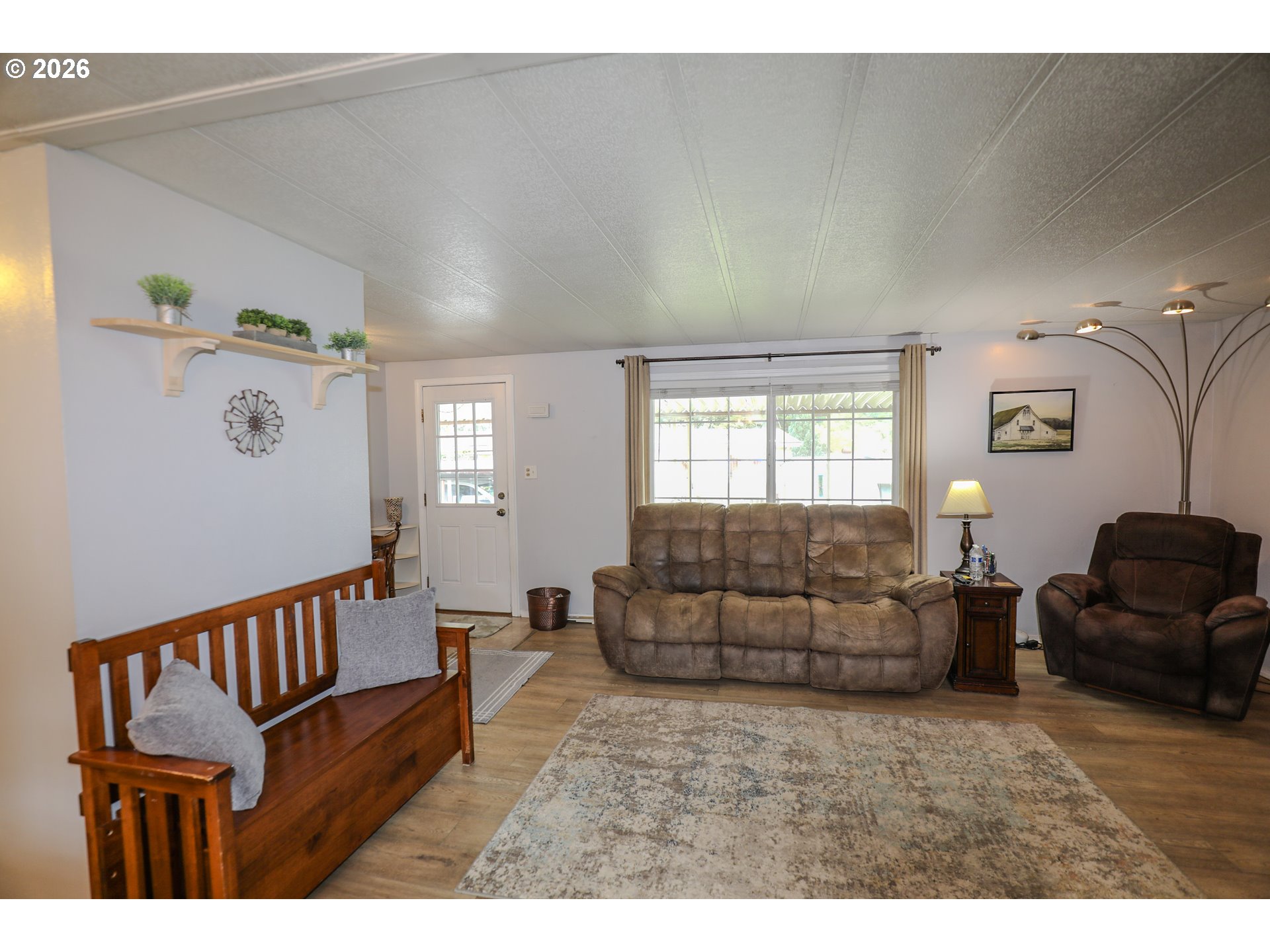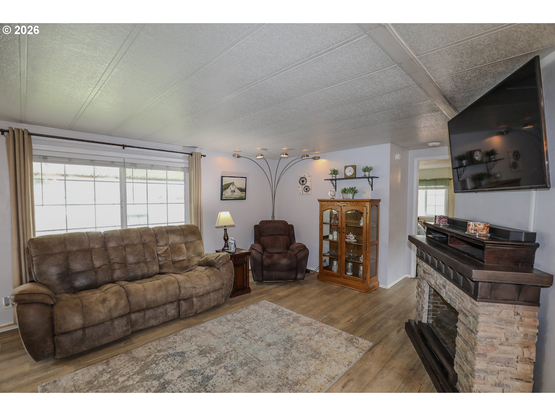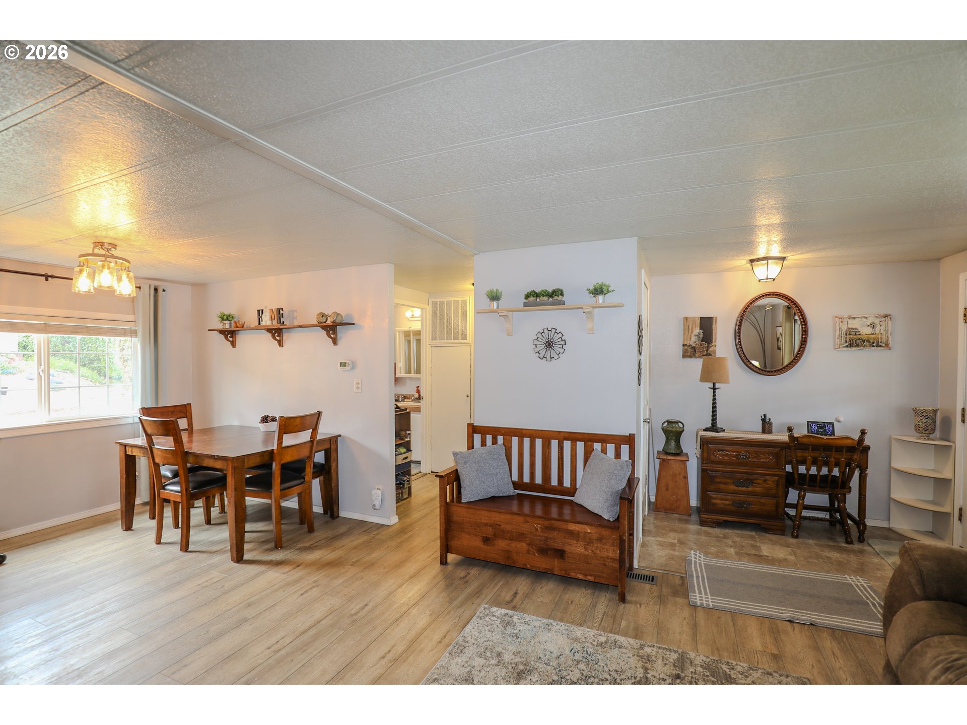 Welcome to 101 Molalla Ct. in Roseburg, located in the desirable Saddle Butte Mobile Manor community! This beautifully updated 3-bedroom, 2-bath home offers 1,152 sq ft of comfortable living with modern finishes throughout.Step inside to find stylish luxury vinyl flooring and a bright, inviting layout. The kitchen is a standout feature with gorgeous countertops, a tile backsplash, rich hickory cabinets, and stainless steel appliances—perfect for both everyday living and entertaining. The spacious living area is enhanced by an electric fireplace, creating a warm and cozy atmosphere.The primary suite offers a relaxing retreat with a soaking tub, while the additional bedrooms provide flexibility for guests, an office, or hobbies. You’ll also appreciate the laundry room with ample storage and the convenience of newer vinyl windows and an updated HVAC system for year-round comfort.Outside, enjoy a fully fenced yard with raised garden beds, a covered patio ideal for outdoor gatherings, and a corner lot that adds extra space and privacy. A storage shed with power provides great functionality for projects or additional storage needs.This well-maintained home combines comfort, style, and practicality—don’t miss your opportunity to make it yours!