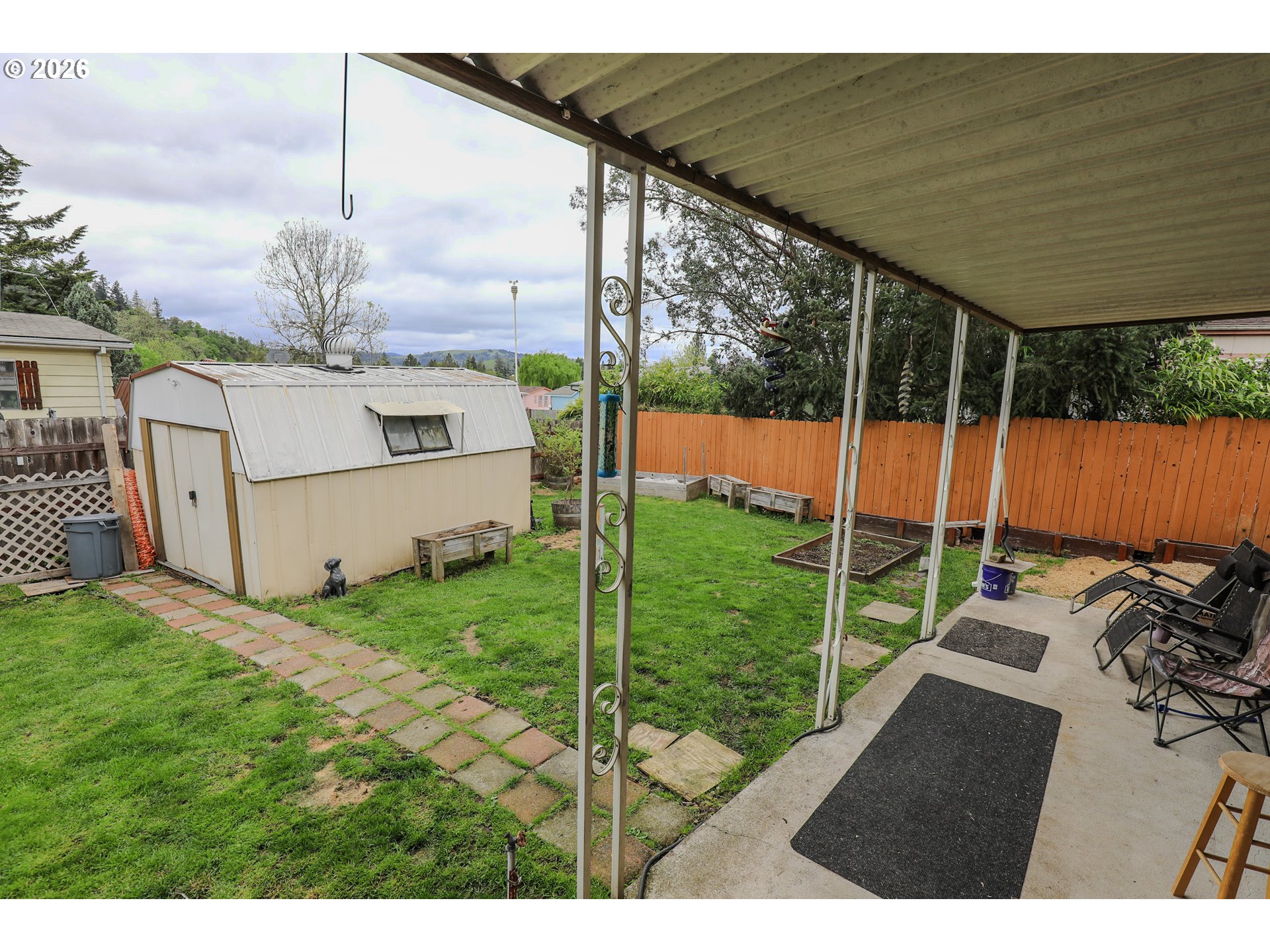 CoveredDeck, Fenced, RaisedBeds, ToolShed, Yard