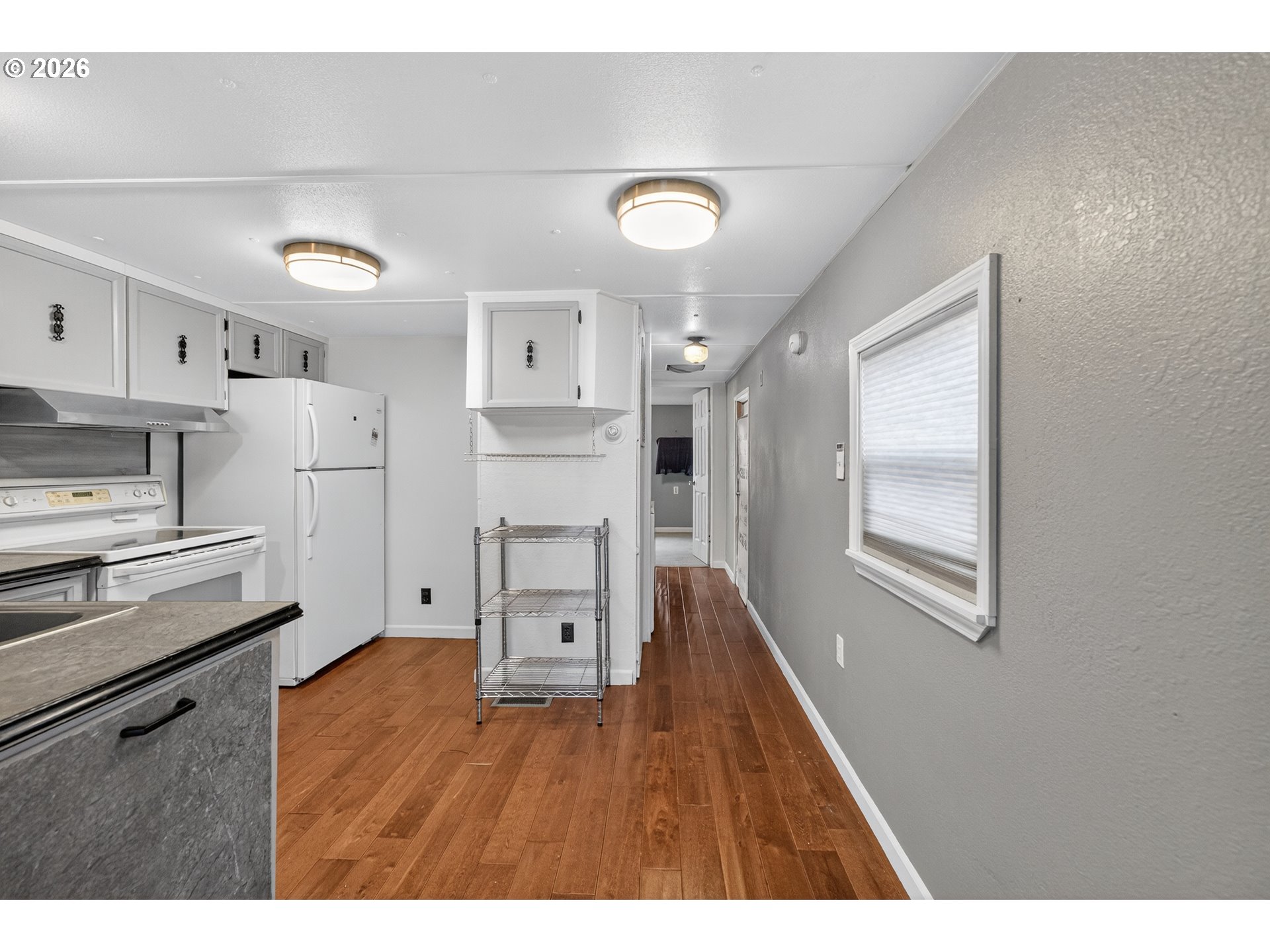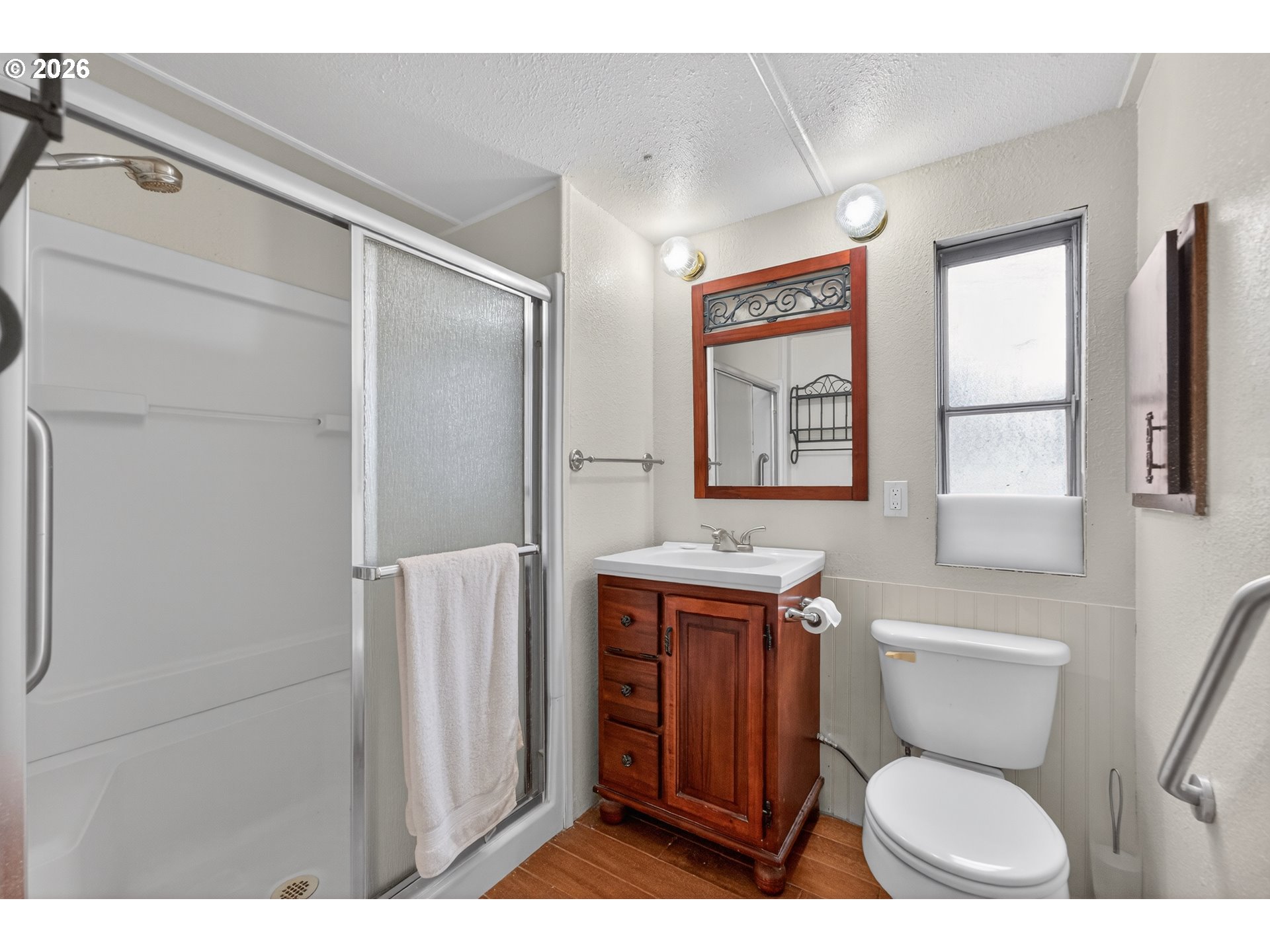 Tucked into a peaceful 55+ community, this charming 1-bedroom, 1-bath single-wide offers comfort, convenience, and a touch of nature right outside your door. Thoughtfully updated with beautiful real hardwood flooring, newer windows, and a refreshed bathroom featuring an easy-access walk-in shower, this home is move-in ready and designed for simple living. Start your mornings or unwind in the evenings on the covered patio, where you can enjoy tranquil views overlooking Newton Creek—a perfect backdrop for relaxing with a cup of coffee or hosting a quiet get-together. Located in the heart of Roseburg, you’ll love being just minutes from shopping, medical facilities, and the scenic rivers and outdoor recreation that make Douglas County so special. Whether you enjoy fishing, hiking, or simply exploring the natural beauty of the area, it’s all within easy reach. As an added bonus, the space rent is an affordable $500/month, making this an excellent opportunity for low-maintenance living in a welcoming community. Sweet, simple, and perfectly situated—this home is ready to welcome you!