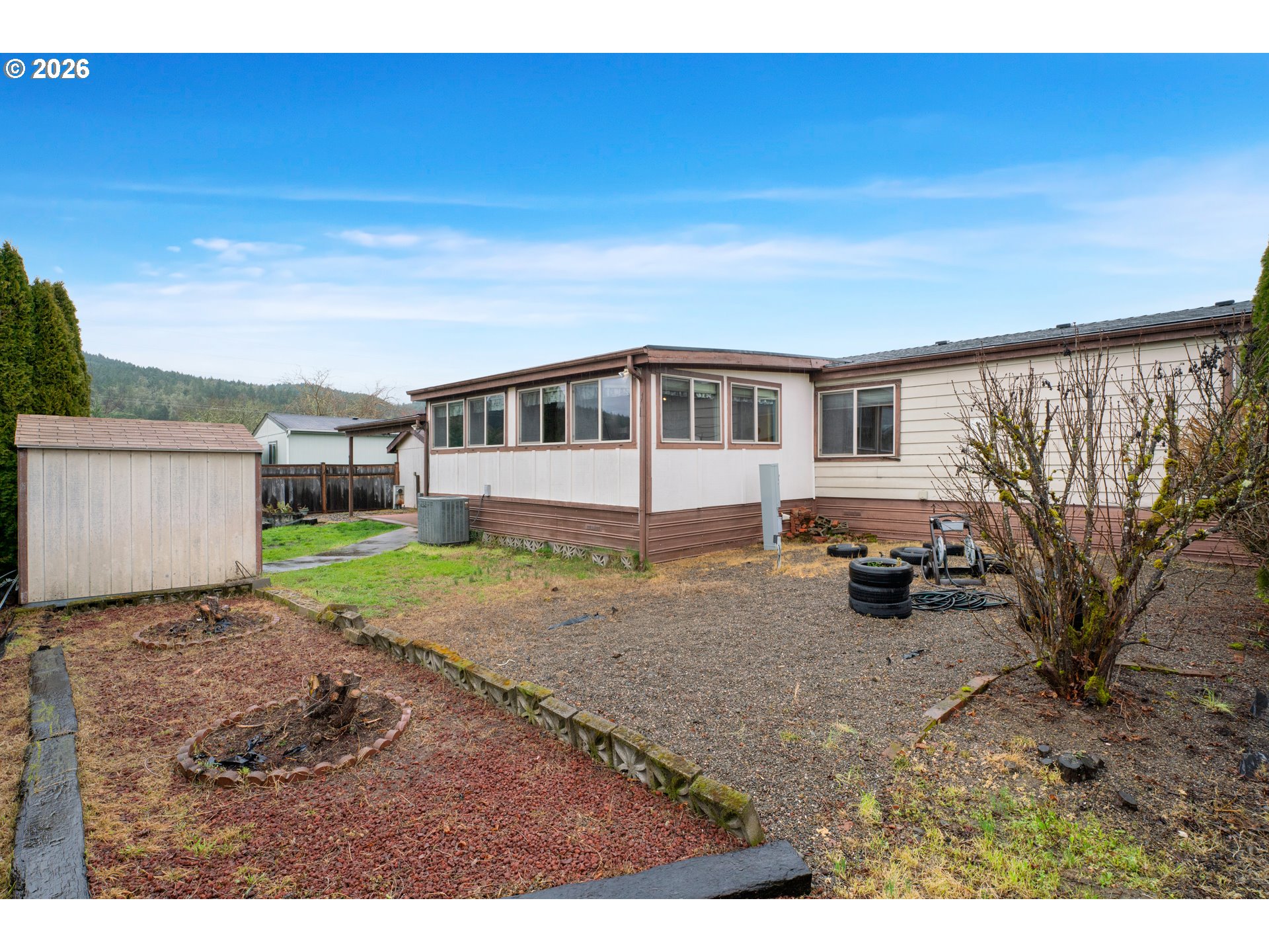 Welcome home to Sutherlin's charming 55+ community in Pineview Mobile Home Estates.This inviting 3-bedroom, 2-bath home offers a comfortable split-bedroom layout, giving you privacy when you want it and space when you need it. The kitchen has been updated with a newer stainless steel refrigerator and dishwasher, and the washer and dryer are included. Newer DaBella roof with transferrable warranty along with transferrable lifetime warranty on Leafguard gutters! Settle in without the long to-do list.The primary suite features an updated bath with a walk-in tub designed for comfort and peace of mind. On chilly evenings, enjoy the warmth of your wood-burning fireplace, and year-round enjoyment of the enclosed sunroom—perfect for morning coffee, hobbies, or simply relaxing.Situated on a rare double lot, the fully fenced yard offers room for gardening, pets, or hosting family visits. Add in the community pool and recreation center, and you have the perfect blend of comfort, convenience, and connection.If you’ve been looking for a place to slow down, spread out, and truly feel at home—this might be the one. Rent for double lot is $950/month. Water, sewer, trash, and public safety fee included in lot rent.