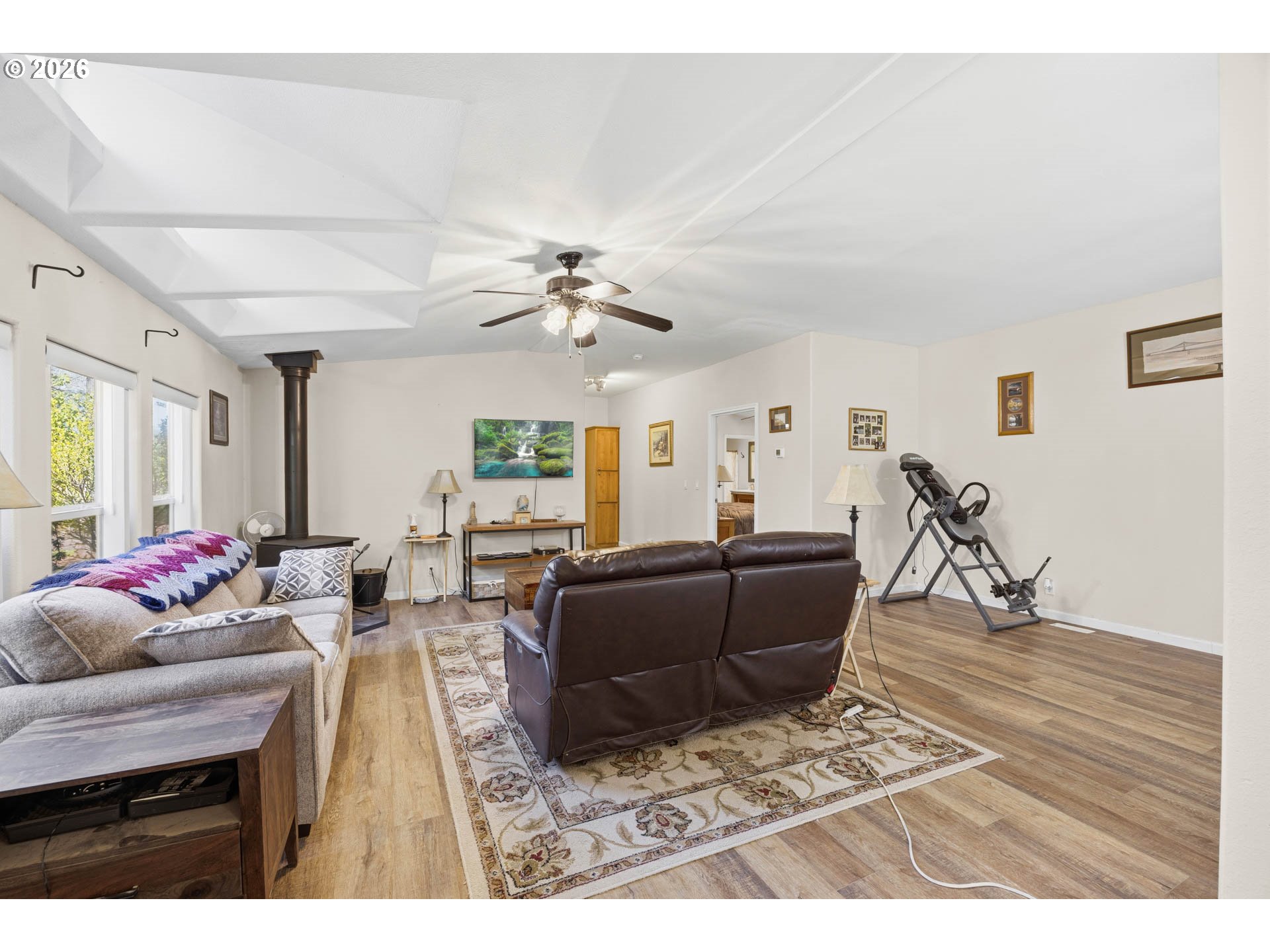 Beautiful park-like setting in the heart of Melrose. Level lot with remodeled 2004 "Palm Harbor" home. This top-of-the-line model includes vaulted ceilings, kitchen skylights, newer heat pump and wood stove, plus a covered front porch and covered rear deck off of the kitchen that's ready for outdoor relaxation or entertaining rain or shine. Detached finished shop and bonus space with air conditioned extra private room. Large machine shed, separate well-built dog kennels, deluxe chicken coop, fenced pasture, mature fruit trees (apple, cherry, pear, plum), garden area, and ample parking. A lovely and peaceful place to call home!
