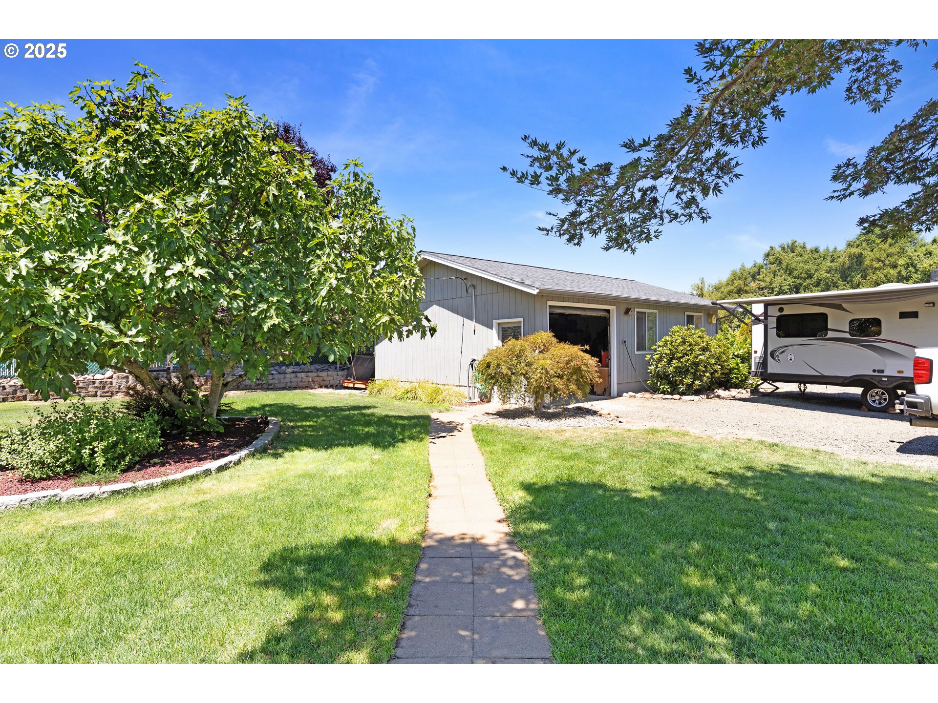 This beautiful one-level home in the Garden Valley area sits on 2.19 acres of level, usable land, with North Umpqua River frontage. There are deer-fenced concrete raised garden beds, fruit trees of all kinds... multiple varieties of apple trees, an Asian pear, a few plum trees, a peach tree, and a large fig tree. There's a lot of extra graveled parking behind the house, including RV parking with an electric hook-up. With a 32x24 shop with an overhead door and additional storage for equipment and firewood. Off the back of the house is a covered deck and a built-in covered hot tub. The home has too many upgrades to list, including hardwood flooring in the living room and hall, refinished kitchen cabinets, granite countertops, and new windows in the living room for natural light. All the doors, including the closet doors, have been replaced with solid wood doors and trim. The heat pump and furnace have been replaced, along with the electrical panel. The seller has updated all the irrigation lines to the fruit trees and grounds surrounding them. All of the overgrown bushes were removed to allow for access to the river.