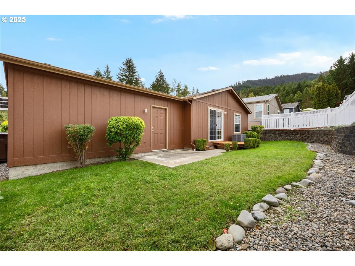 NEW, NEW, NEW! New- roof, deck, garage door, LVP flooring throughout, blinds, interior paint, all kitchen appliances and HVAC! Welcome to this charming 3-bedroom, 2-bathroom home located in the peaceful Knoll Terrace community in Canyonville, Oregon. Set against a backdrop of beautiful mountain views. This home offers comfort, space and a number of thoughtful upgrades. Inside, you’ll find a spacious living room filled with natural light, flowing into a bright and functional kitchen equipped with all-new stainless steel appliances. The entire house features new LVP flooring, interior paint and blinds. New HVAC, Roof and insulated garage door. The primary suite offers a relaxing retreat with a large walk-in closet, double sinks, walk-in shower and a garden tub perfect for long soaks. Two additional bedrooms provide flexibility for guests, an office, or hobbies. The 3rd bedroom opens directly to a brand-new deck, ideal for enjoying the fresh air and surrounding scenery.The garage is insulated and temperature-controlled, with a tile floor and a new insulated garage door making it perfect for storage, projects or additional living space. Outside, the nicely maintained yard includes a timed sprinkler system. Seller is having the house professional cleaned to be completed before closing. As an added bonus, the seller is offering a credit for six months of park space rent with a full-price offer. This move-in ready home is ready for you to make your own! Short notice showing appointment is alright.