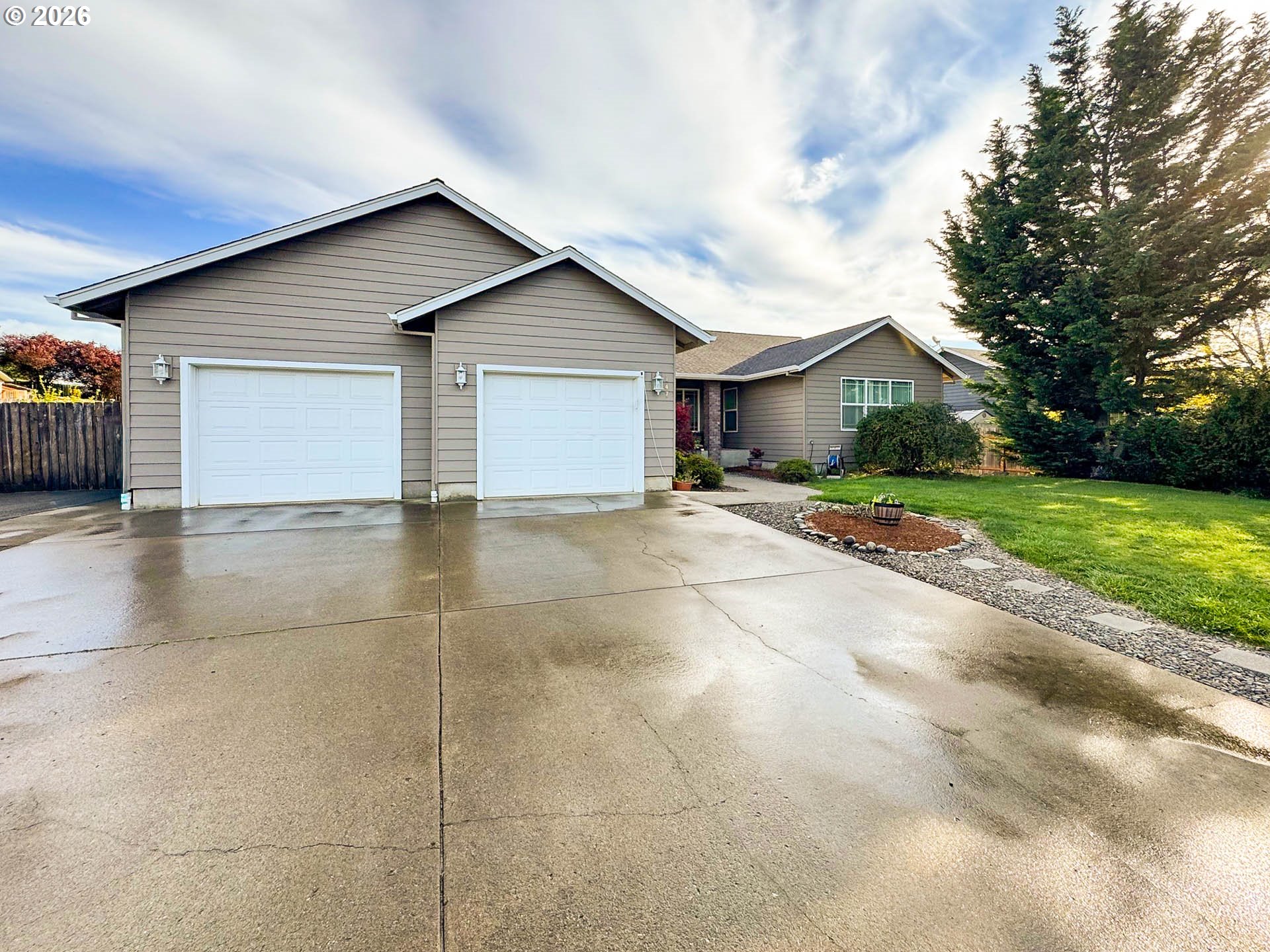 Come see this beautiful 0.61 acre property located on a quiet country cul-de-sac in a neighborhood of other custom homes all on large lots. You will enjoy what this one level home has to offer including a welcoming front porch, an open split floor plan, a living room with cathedral ceiling, and forced air gas heat and central AC. The roomy kitchen features plenty of storage with a pantry cupboard, a center island with new sink and faucet, and all kitchen appliances included. The dining area offers a sliding door to the large covered wood deck that's a seamless blend for indoor, outdoor entertaining! The large primary suite features an ensuite with large vanity and walk-in shower. Located on the opposite side of the home features two nice-sized guest bedrooms, one with an attached shared bathroom. Outside is a park-like retreat with an extra-large fully fenced backyard, a peaceful waterfall and pond feature, a large exceptionally nice storage shed with attached greenhouse, raised garden beds, and gated RV parking. The golf enthusiast will appreciate the two putting greens and the property's close proximity to Roseburg County Club and Bar Run - Roseburg's two premier golf courses. Recent upgrades include a newer roof and fresh exterior paint. All of this is located just minutes from Roseburg and all its amenities, yet outside the city limits for low county taxes! You won't want to miss this exceptional property. Call for an appointment today!