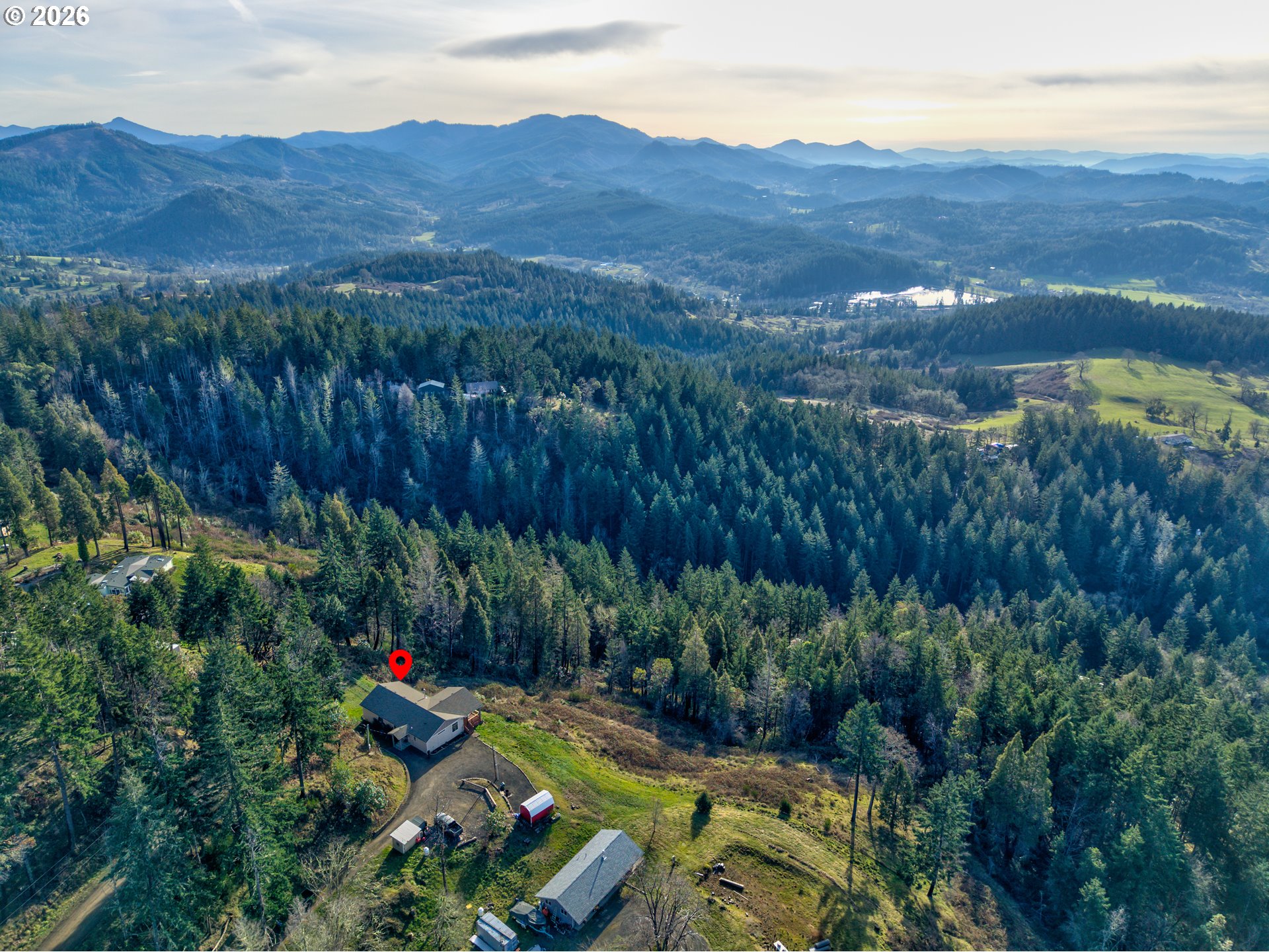 Beautifully updated single-level home with expansive views of the mountains and valley, set on 5+ acres. Enjoy all four seasons from the covered deck overlooking the valley, whether relaxing in the hot tub or taking in the serenity. This 3 bed, 2 bath home offers a spacious, open layout flooded with natural light. The large kitchen features an island with eat bar, ample cabinetry, pantry accented with reclaimed wood from the property, and generous additional counter space. The dining room opens directly to the covered deck through French doors, creating an easy flow for indoor-outdoor living. The living room includes a woodstove and large windows framing mountain views. Bedrooms offer a mix of finishes, including carpet and madrone flooring. The primary suite provides plenty of space, a walk-in closet, and a large walk-in tile shower. All appliances and hot tub included. A peaceful setting with room to breathe. Schedule your showing today.