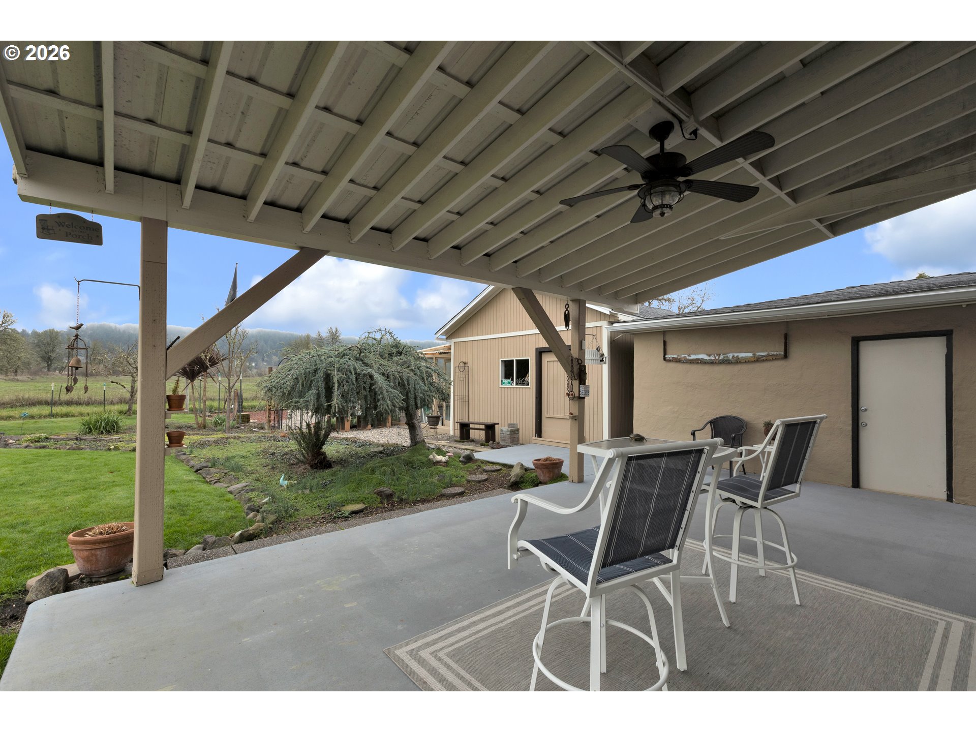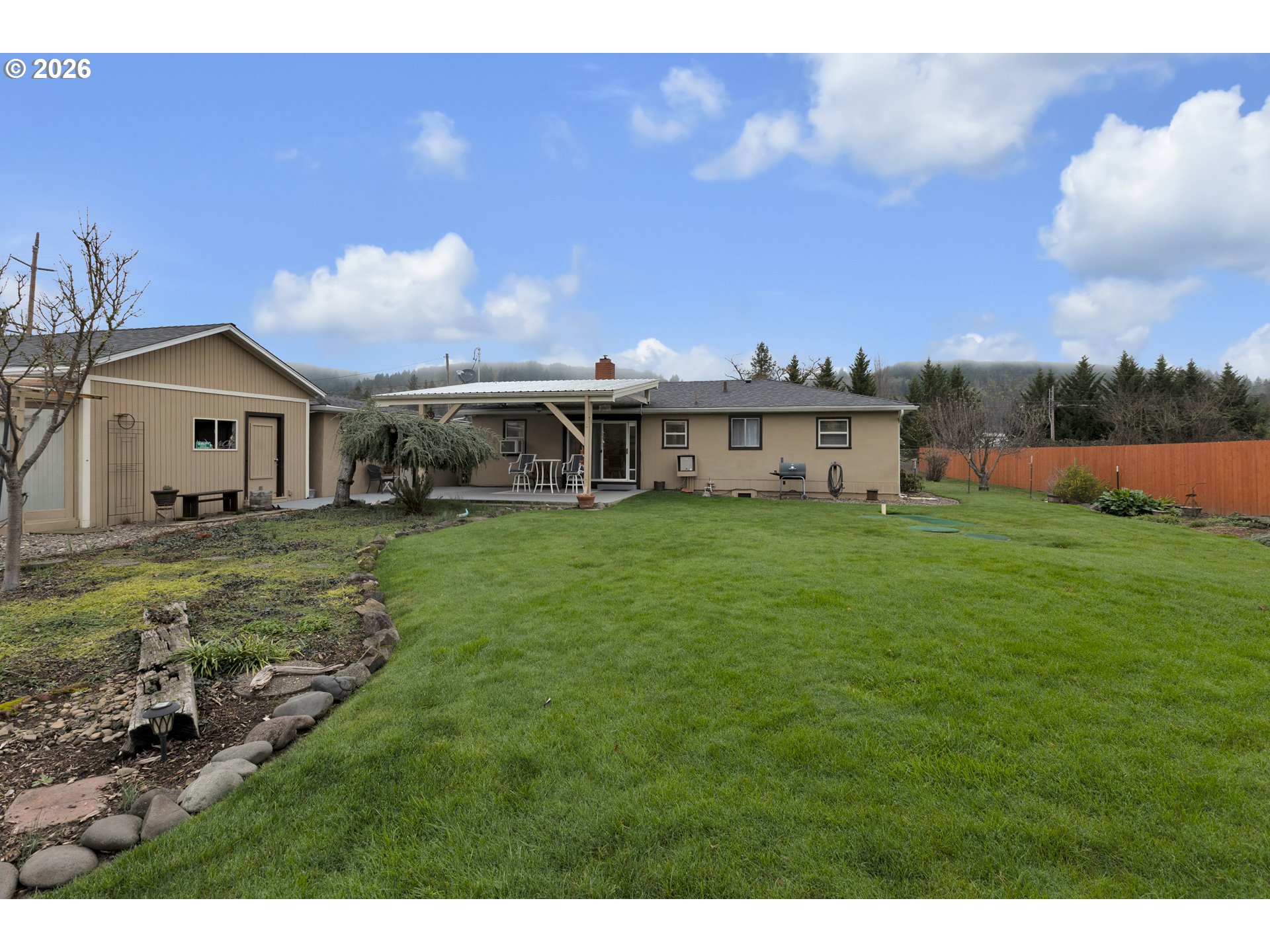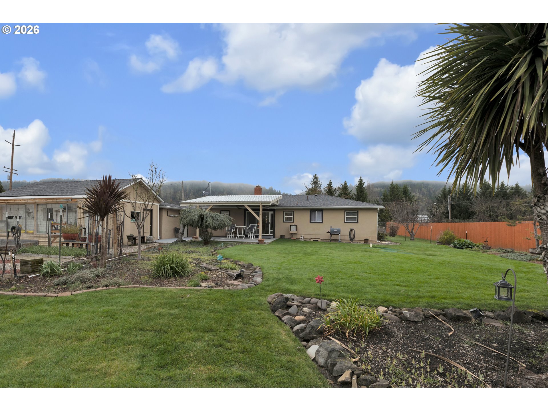 Welcome to your own slice of country living without sacrificing the convenience of town. Located on Nonpareil at the edge of Sutherlin, this charming property offers the perfect balance of space, function, and lifestyle. Set on a beautifully maintained, fully fenced yard, the home provides endless opportunities for homesteading, hobbies, and outdoor living, all while enjoying beautiful views and a quiet, peaceful environment. Whether you envision fresh eggs, a productive garden, or space to build and create, this property is ready to support it. Inside, the home is warm and inviting, highlighted by a pellet stove installed in 2022 that provides cozy, efficient heat through the winter months. Major updates have already been completed for peace of mind, including a new roof and gutters in 2019, a water backflow valve in 2021, an updated electrical panel in 2023, new cedar fencing in 2023, and a brand-new water heater in 2025. The exterior is where this property truly stands out. There is a greenhouse and a designated space for a garden, an area ready for a chicken coop, two shop buildings ideal for storage, projects, or hobbies, and even an R/C car track for recreation. A covered patio offers the perfect setting for entertaining or quiet evenings at home. The property also features a well solely for irrigation, an Orenco septic system, abundant storage, and a yard that is both functional and enjoyable. Adding even more value, the home includes a washer and dryer, refrigerator and microwave, couches and TV stand, yard equipment and tools, and a patio set—making the transition into your new home easy and convenient.This is more than just a house; it is a lifestyle. A rare opportunity to enjoy mini-farm living, room to grow, and space to dream, all just minutes from town.