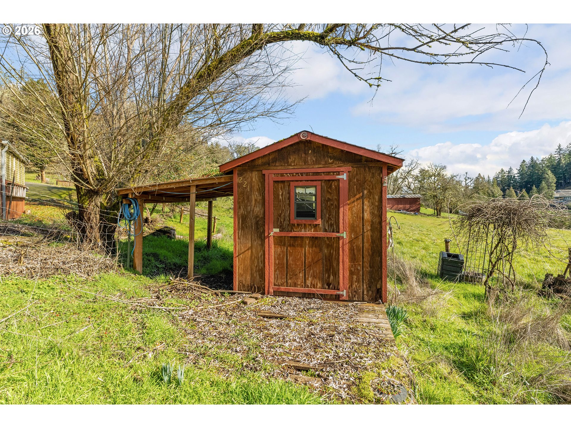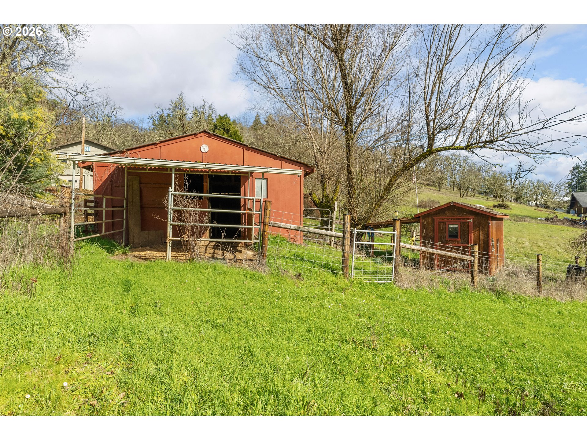 WOW! Set on 3.8 usable acres in desirable Garden Valley wine country, this 3,100-square-foot home offers the space, flexibility, and setting that's hard to find! Unbeatable location just minutes from Roseburg Country Club, Bar Run Golf Resort, and the Umpqua Valley’s favorite wineries, while only a short drive to town. A paved driveway leads to the oversized garage w/ plenty of parking and turnaround space for guests, trailers, and daily convenience. Positioned to capture the surrounding valley views, the home features both front and rear decks on the main level, creating multiple outdoor spaces that make the most of the setting. Inside, the main level features a living room w/ a wood-burning fireplace and large windows taking advantage of the views. A dedicated dining area and a large vaulted family room that can be used as a formal dining area provide flexibility and natural light. The kitchen offers generous counter space and storage, designed for everyday function without wasted space. A half bath completes the main floor. Upstairs, you’ll find 4 bedrooms plus an office, along w/ a full bathroom w/ plenty of room for remote work, guests, or growing households. Downstairs adds even more versatility with an additional family room featuring new carpet, a full bath, a wood stove, and direct access to the covered patio and backyard. The layout supports multi-generational living w/ the option of a fifth bedroom downstairs. Outside, the property is ready to be put to use! A fenced pasture area for livestock, and the powered 3-stall barn make this a great setup for horses or hobby farming. Trees provide shade and privacy, while open ground gives you room to expand, garden, or simply enjoy the space. A separate shed offers the perfect “she shed,” workshop, or hobby space. Country living close to town, golf courses, and surrounded by the best of Umpqua Valley wine country. A rare combination of acreage, square footage, and flexibility in a desirable location!
