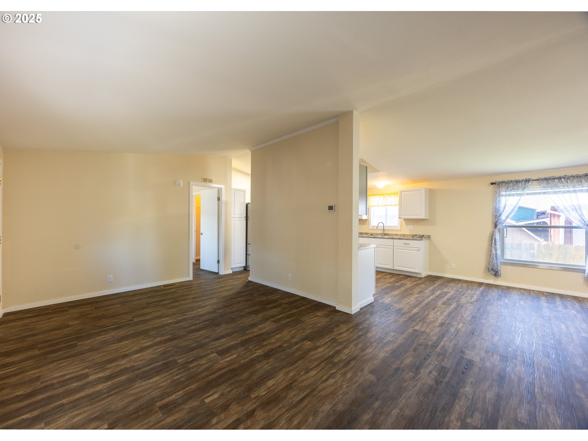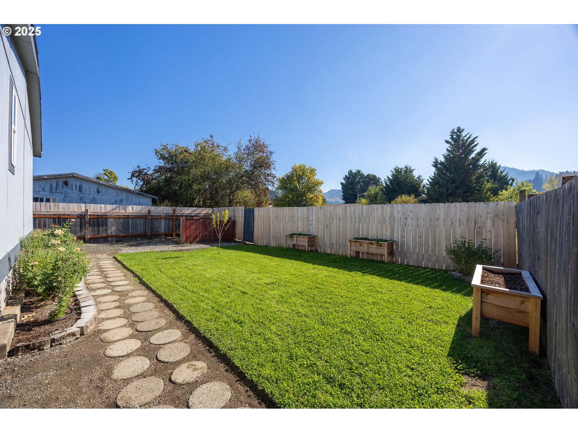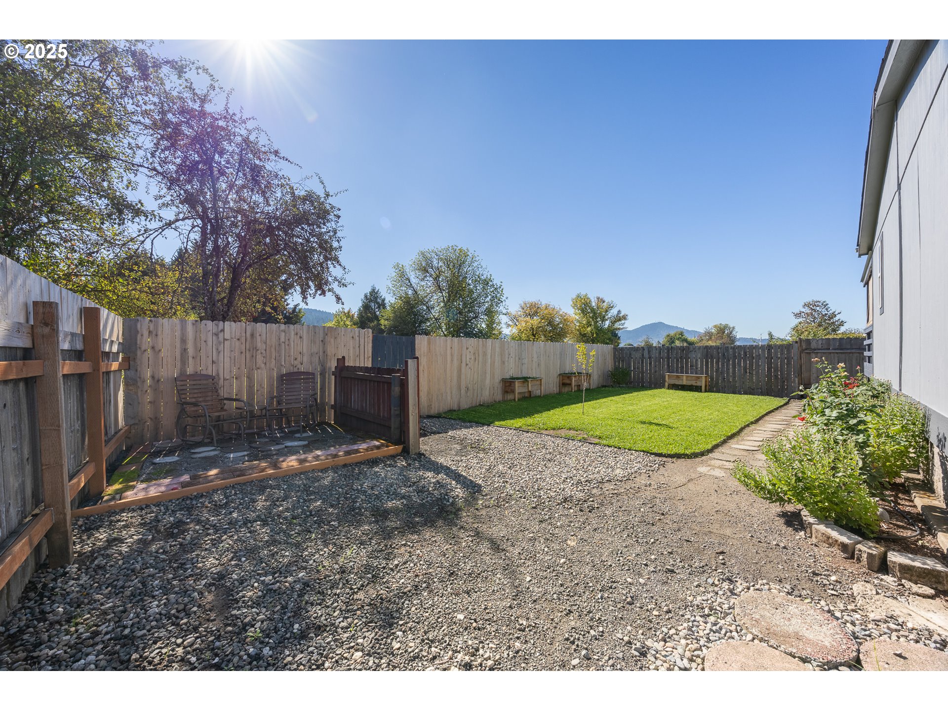 Welcome to this beautifully maintained 3-bedroom, 2-bath home nestled in a quiet Sutherlin neighborhood. This move-in-ready gem features a bright, open floor plan with vaulted ceilings and fresh interior paint throughout, creating a spacious and airy feel. The heart of the home is the remodeled kitchen, thoughtfully designed with modern finishes, ample cabinet space, and a seamless flow into the living and dining areas—perfect for entertaining or relaxing with family. Retreat to the generous primary suite, complete with a walk-in closet and a private en-suite bath featuring dual sinks and a luxurious walk-in shower. Two additional bedrooms and a full guest bath offer plenty of space for family, guests, or a home office. Step outside to a large, fully fenced yard with gated access to scenic walking trails just beyond—ideal for nature lovers, pets, or play. A spacious 2-car garage adds even more convenience and storage. Don’t miss your chance to own this well-cared-for home in a fantastic location. Schedule your showing today!