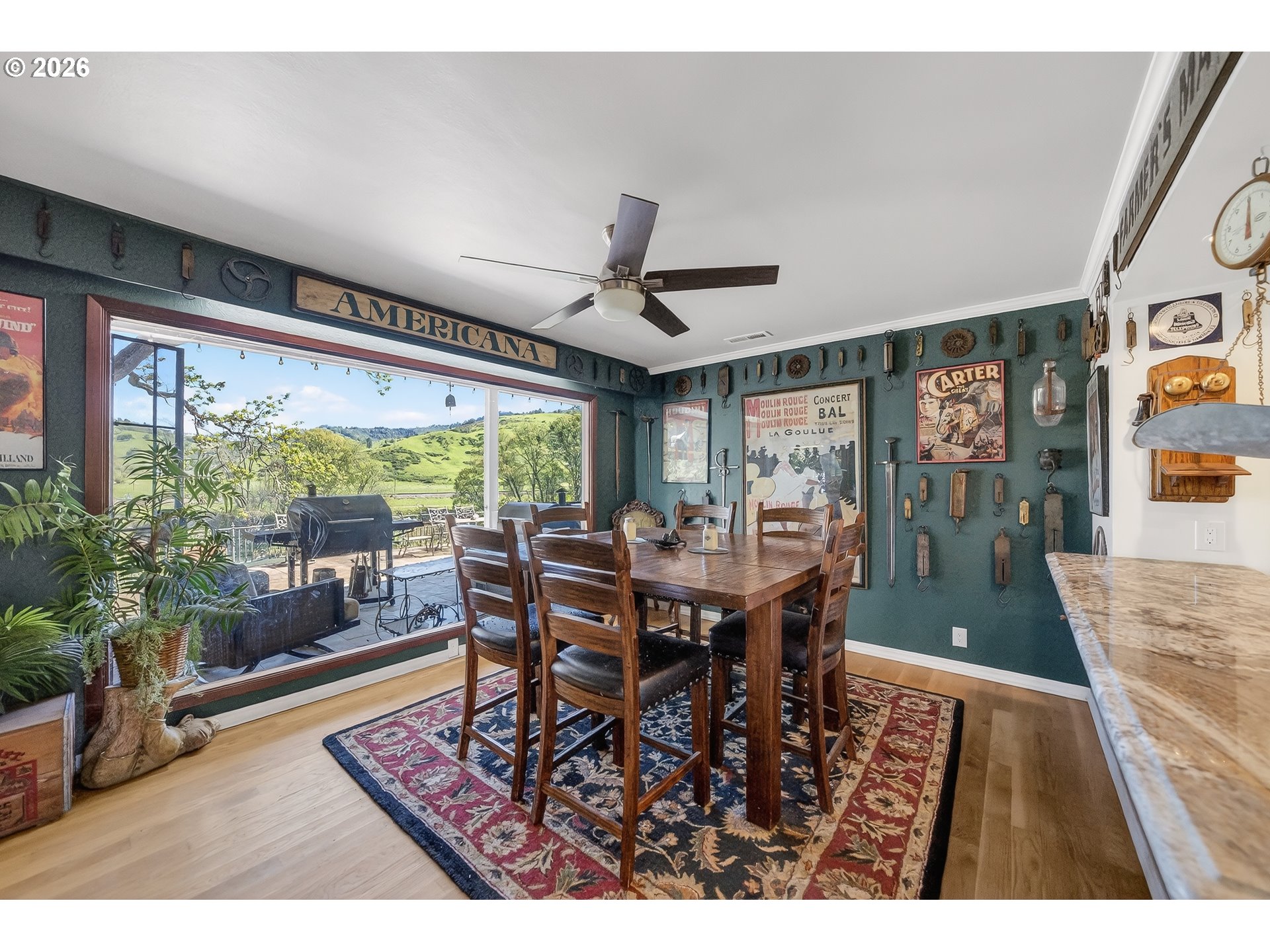 This is the dream home. Sitting on 3.07 acres right on the South Umpqua River, it truly has more than you could ever ask for.Built in 1952, this mid-century modern home is full of character at every turn. The kitchen has been beautifully updated with an island, under-cabinet lighting, stainless steel appliances, and double ovens—perfect for hosting. You’ve got a formal dining space with a pass-through and extra pantry storage.There’s a cozy den with a wood-burning fireplace and multiple access points leading out to the patio overlooking the river—perfect for relaxing or entertaining. The main living room features another fireplace and huge windows that take in incredible views of the valley and the flowing South Umpqua.The primary suite has been thoughtfully renovated with a walk-in shower and walk-in closet, and the home also offers a spacious laundry room with tons of storage. And don’t miss the original green tiled bathroom—such a fun, timeless detail you won’t want to miss.Outside, you’ve got a circular asphalt driveway, a breezeway/carport leading to a two-car garage, a storage building, and a massive 50x50 shop with multiple 18 ft overhead doors, plus an office and storage loft space.This property truly has it all.