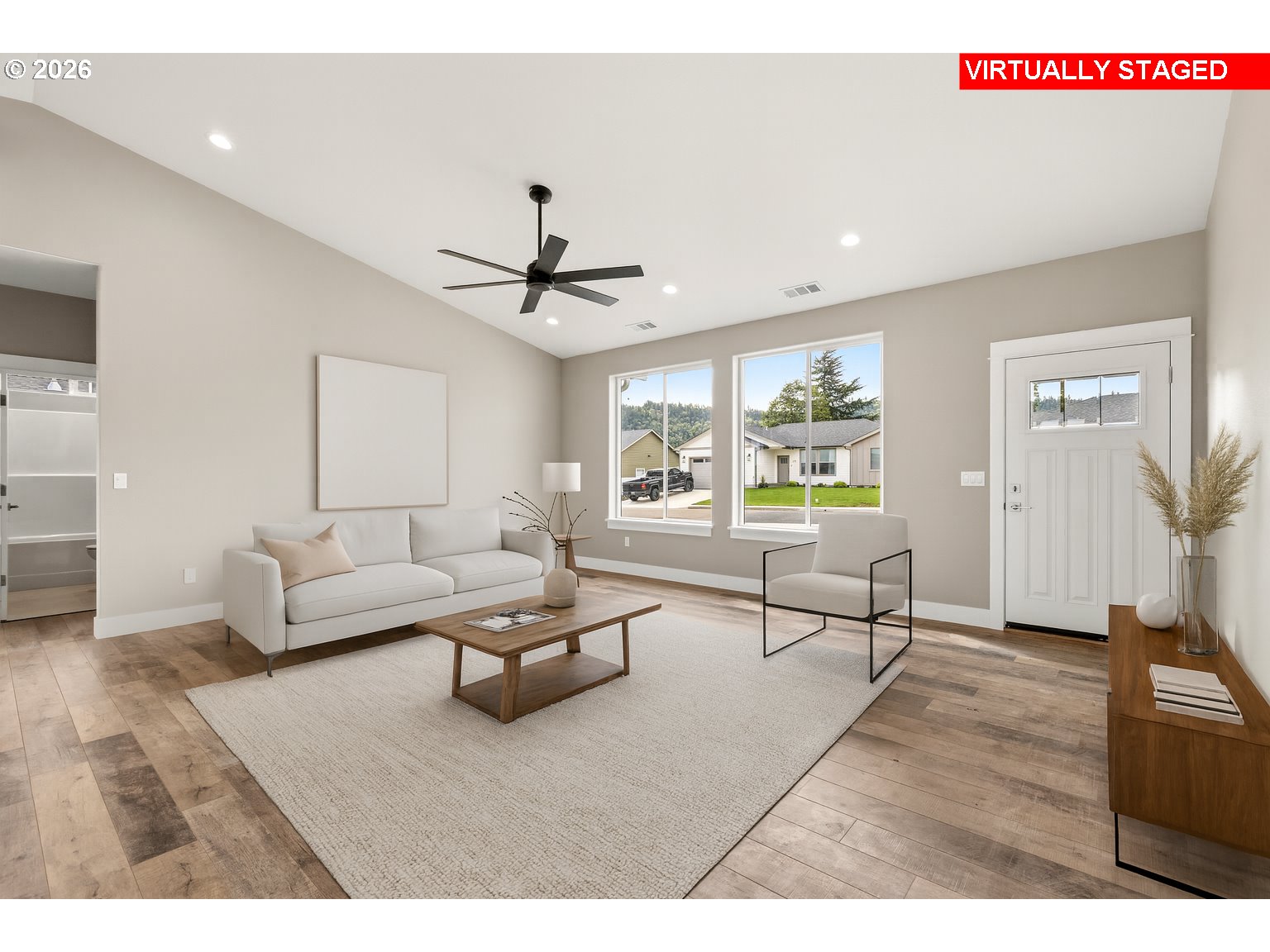 There’s something special about stepping into a home that’s never been lived in—where everything is fresh, thoughtfully designed, and ready for your story to begin. Welcome to 260 Logan St, a brand-new one-level home that blends modern comfort with effortless living. From the moment you walk in, you’ll appreciate the clean, cohesive feel of luxury vinyl plank flooring throughout—no carpet—paired with tile in the bathrooms for durability and style. The open-concept design creates a natural flow between spaces, anchored by a stunning kitchen featuring quartz countertops, a stainless steel slide-in range, and a generous eating bar perfect for morning coffee, casual meals, or gathering with friends. The spacious great room with vaulted ceilings invites natural light and connection, making it just as ideal for quiet evenings at home as it is for entertaining. Just beyond, the covered patio extends your living space outdoors—imagine summer barbecues, crisp fall evenings, and year-round enjoyment in a space designed for relaxation. The backyard has been graded and is ready for your vision—garden beds, play space, or a private retreat—the possibilities are yours to create. Front yard landscaping will be completed (if not already), offering welcoming curb appeal from day one. Each bedroom is comfortably sized, while the private primary suite offers a peaceful escape with a well-appointed bathroom and a spacious walk-in closet. With brand-new construction, quality finishes, and the ease of single-level living, this home is more than just a place to live—it’s a place to settle in, unwind, and truly feel at home.