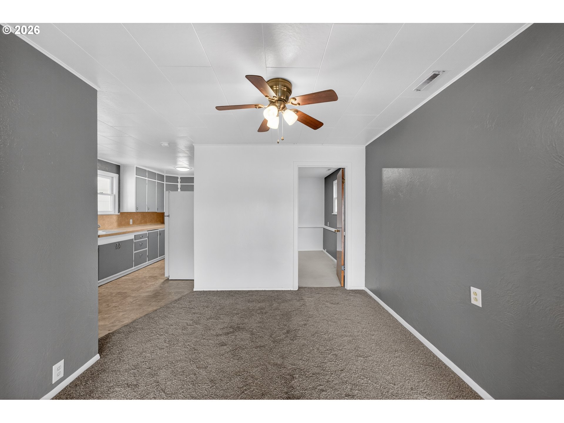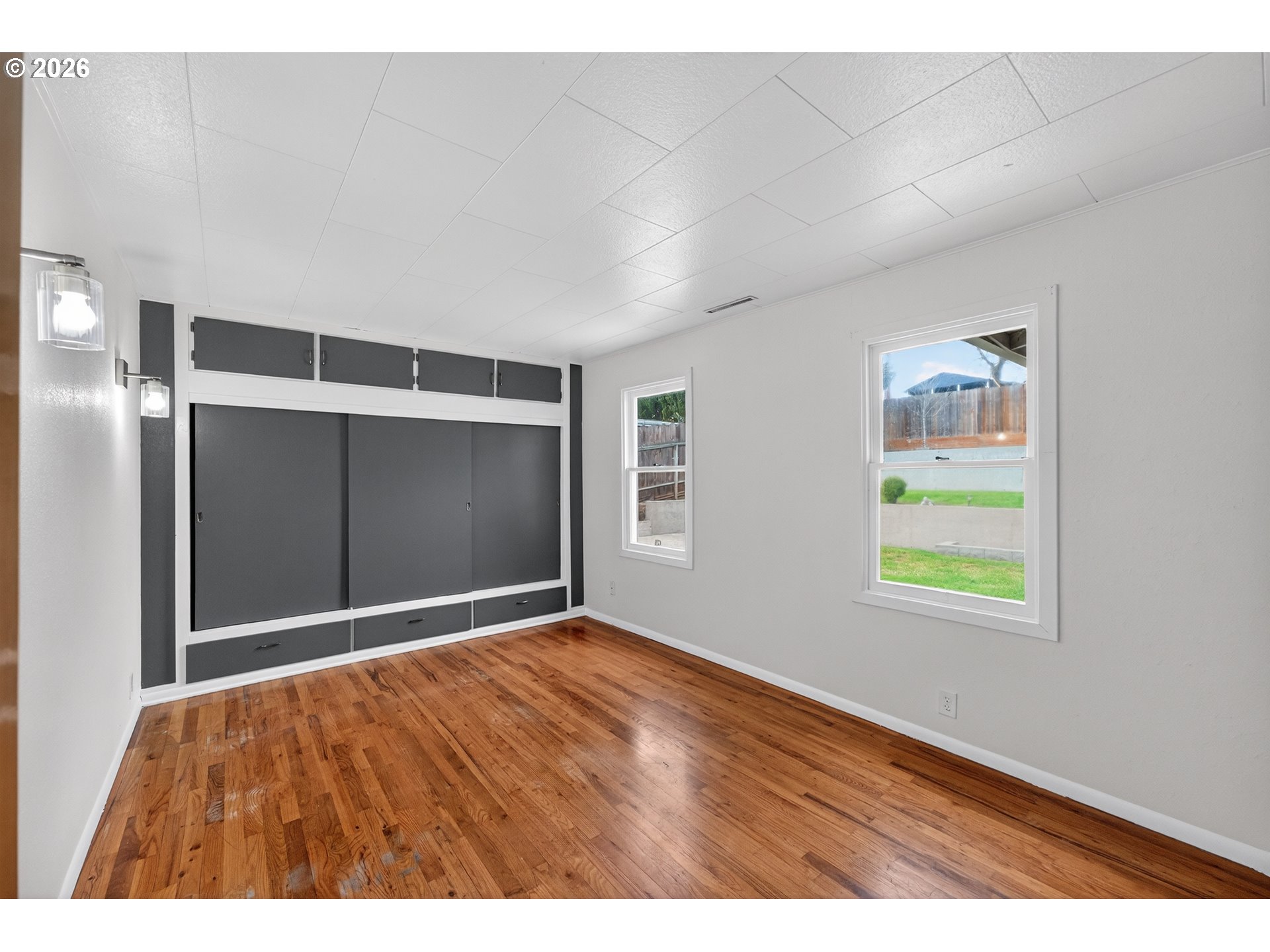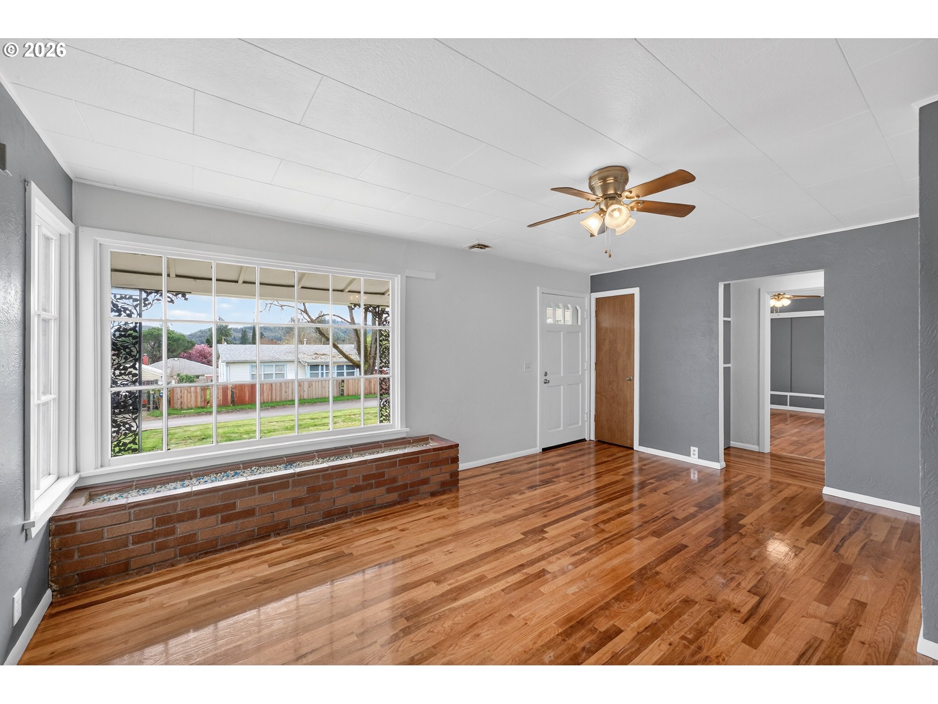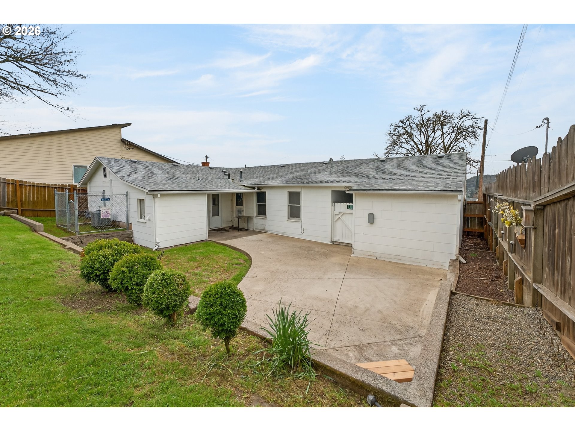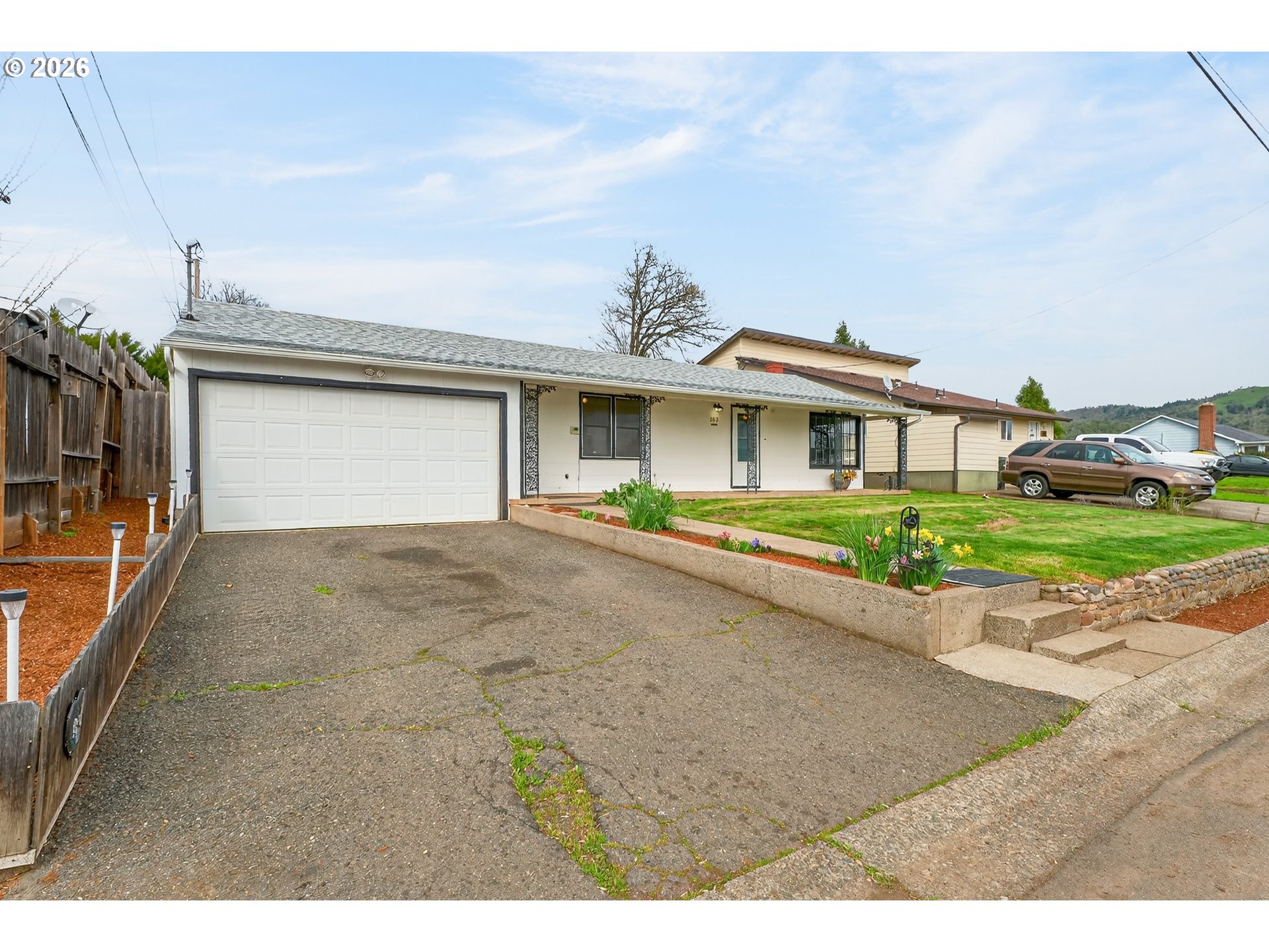 Right in the center of Roseburg, this front-porch friendly home offers easygoing style and a location that makes daily life simple. A welcoming yard and covered front porch create the perfect place to relax and watch the neighborhood go by.Inside, the smartly sized layout feels bright and fresh with crisp white walls, cool interior tones, and natural light pouring through large picture windows in the living room. Warm wood floors add contrast and carry through the living room and both bedrooms, each with built-in storage for practical everyday living. Fresh interior paint and a newer roof add peace of mind.The attached garage includes extra space for workshop storage, while the backyard is ready for gathering or gardening with a large concrete patio, cement garden beds, and a terraced yard with room to unwind, all fully fenced. Just off the kitchen, a covered outdoor utility space houses the laundry and a utility sink to keep the mess out of the main living area.Simple, bright, and well-located—this home blends personality with practical living.