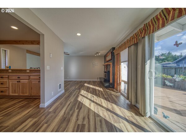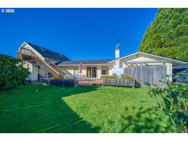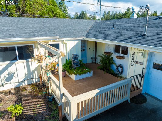 Lovely, well cared for, move in ready, single story family home. Located just two blocks from Reedsport Golf Course. This cozy yet expansive home offers something for everyone. Front deck invites you into this warm and inviting home. Newer remodeled kitchen with beautiful cabinetry and stainless appliances. Primary bedroom has it own mini split with ac. Family room boasts granite surrounded pellet stove. Lovely bathroom with walk in tile shower. Family room boasts granite surrounded pellet stove. Walk onto the back deck and take in the southern sun and beauty of the yard filled with plants and flowers, use the potting shed to plant your own beauty. A huge shop with 220V-electric and concrete floors, to start your own hobbies and or store your boats and toys. Shop has a large 200sf loft for storage. Shop also includes a complete bath with walk in shower. Home has brand new roof 2025. Comfy and finished Bonus room above shop for an extra get away space. This home has two water heaters one for home an one for shop. Just minutes to Pacific Ocean, beaches and dunes. Call you favorite realtor today for showing.