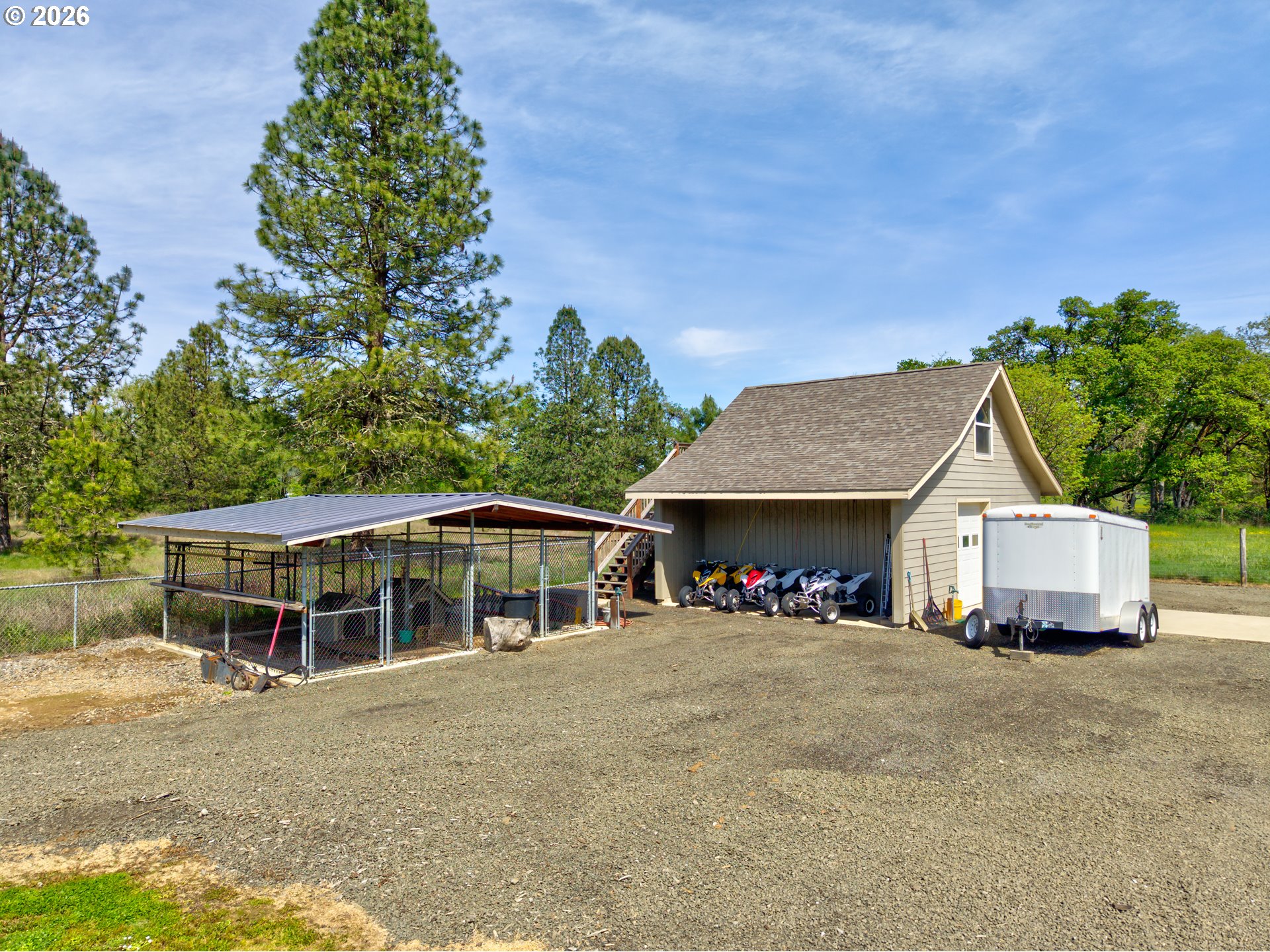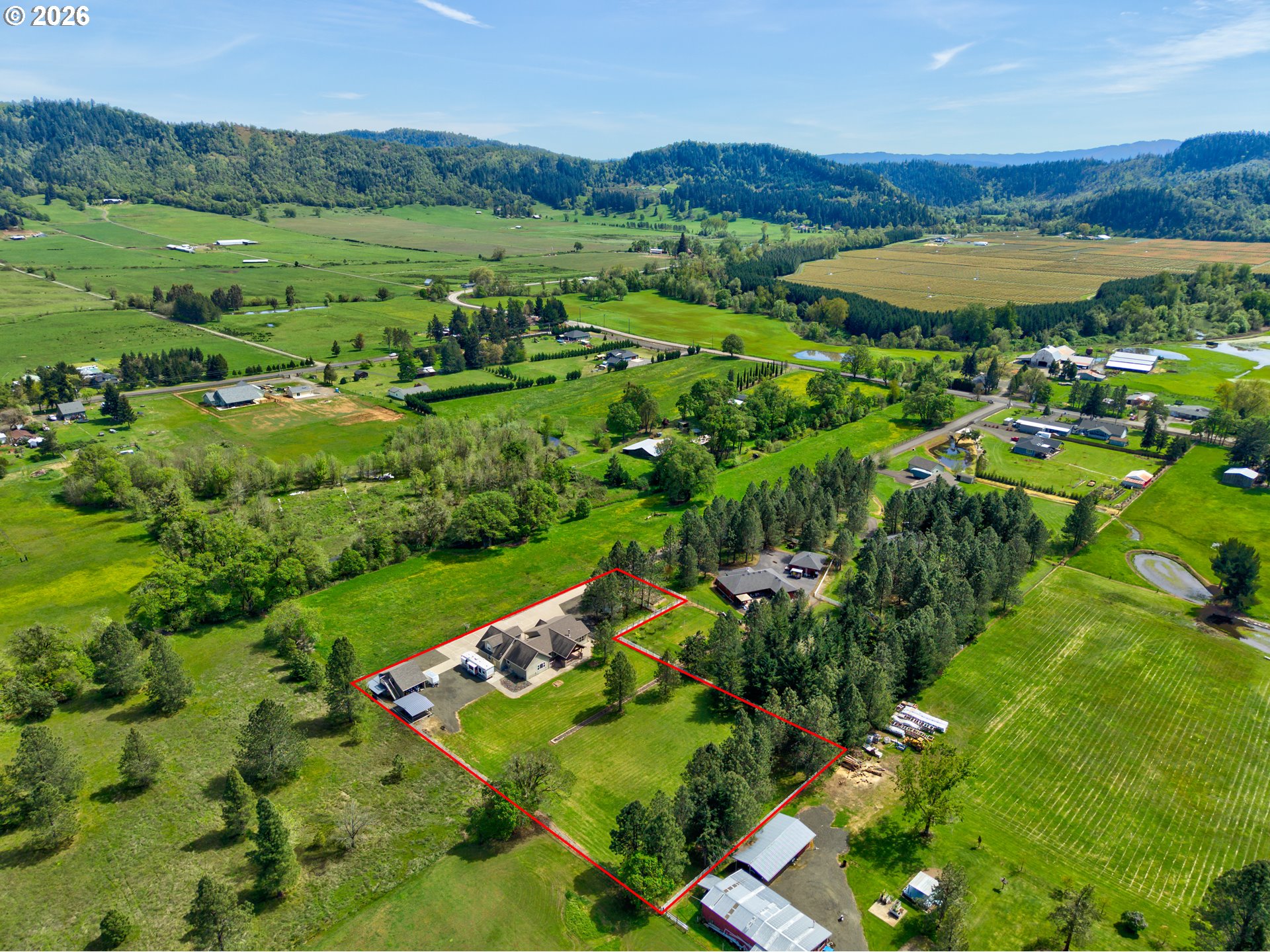 Interior photos to be added within 24 hours. Beautiful country setting custom home located in Lookingglass Valley! Spacious, open floor plan with gourmet kitchen and cozy fireplace ideal for entertaining. Stainless steel appliances, dual oven, granite countertops, hickory cabinets, pantry, eat bar, solid hickory flooring and carpet throughout. 2 New heat pumps and hot water heaters, laundry room. Primary bedroom has walk-in California style closet, walk-in shower, Jacuzzi jet tub with tile flooring, granite countertops with dual sinks. 2,200 S/F ground floor, 600 S/F upstairs family room. Electrostatic air filter system throughout the house, country living views, vaulted ceilings. Driveway 6" thick cement. 30'x30' Oversized garage with half bath, dual panel 400 amp service, hardi-plank. 20'x20' Shop with dual lean-tos for firewood storage, 4" slab flooring, 7'x8' roll-up bay. Unfinished room located above the shop. Hot/cold spigot outside garage. Dog kennels with covered metal roof. Tool shed and fenced garden area, horseshoe pit, hot tub hookup, full RV hookup with septic, power and water. This property is absolutely amazing. No rubber boots needed; engineered curtain drain system eliminates the potential for standing water. This property is completely clean with surrounding cement exterior. Easy maintenance landscaping with private gate entrance. Fiber optics/DFN to the house. Regulation size basketball court.