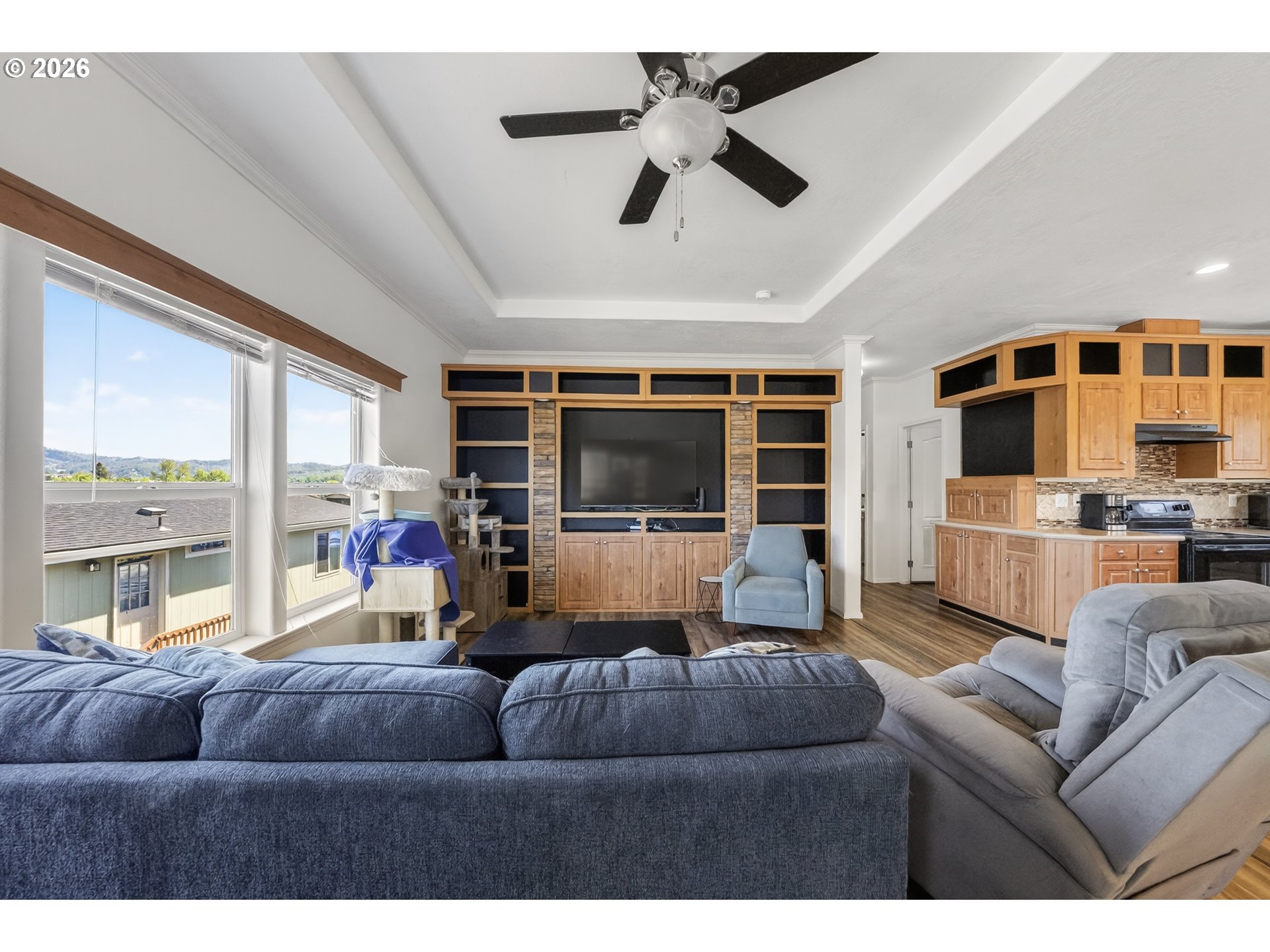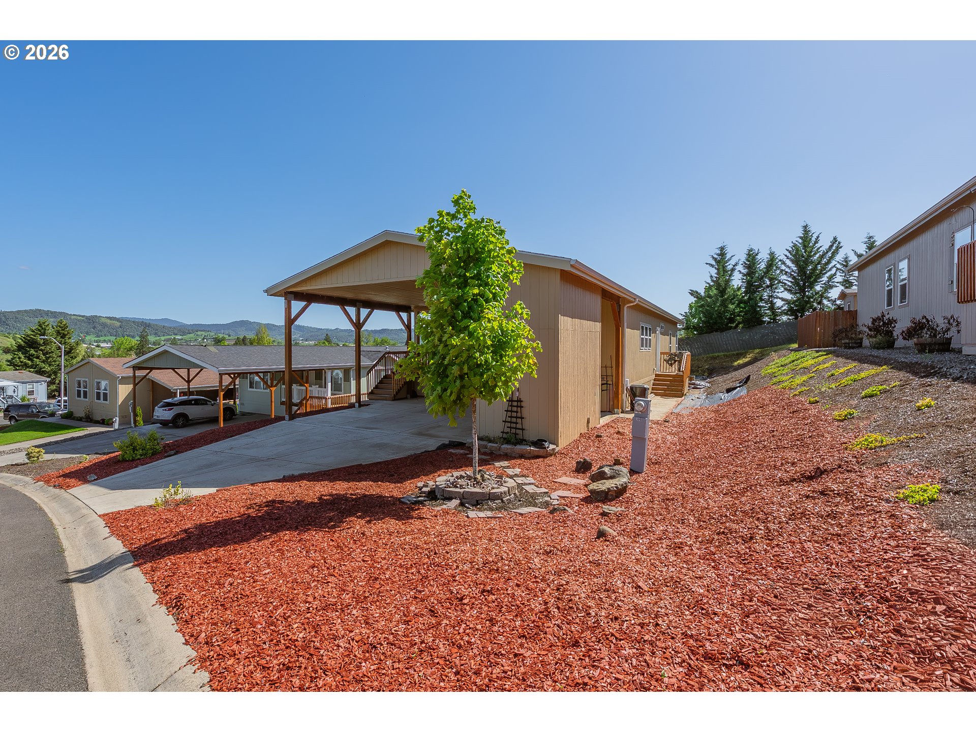 Gorgeous manufactured home in River Place in Green, Oregon! Conveniently located near shopping, freeway access, and your favorite local coffee spots—everything you need is just minutes away. Plus, you’re only minutes from Wildlife Safari, one of the area’s most popular attractions.This 3 bed, 2 bath home features an open-concept layout with an abundance of storage and cabinet space throughout. The large dining area is filled with natural light and includes pantry-style storage cabinets for added convenience. All three bedrooms are spacious, including a primary suite with a walk-in shower, double sinks, and a large walk-in closet. The secondary bathroom offers a tub/shower combo.Outside, enjoy an extra-wide carport with a storage shed, low-maintenance yard space, and a private backyard ready for you to customize to fit your lifestyle.